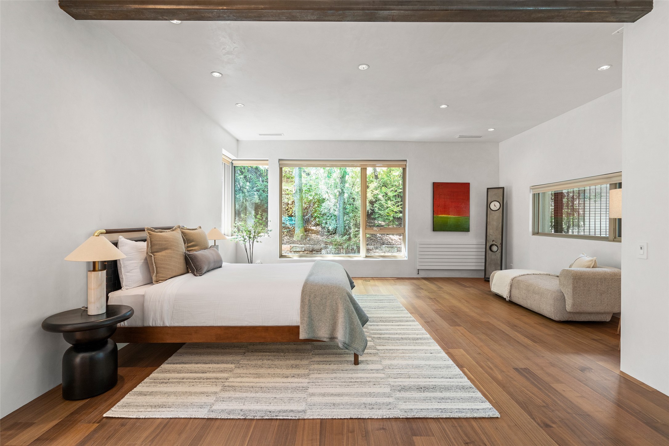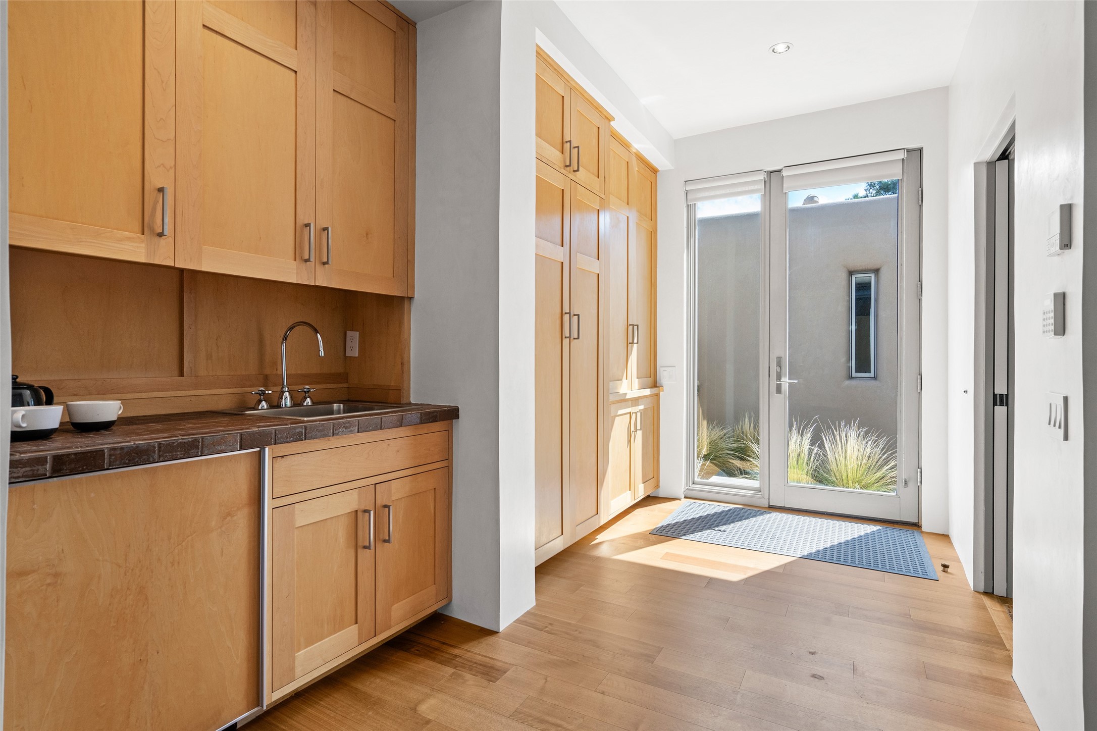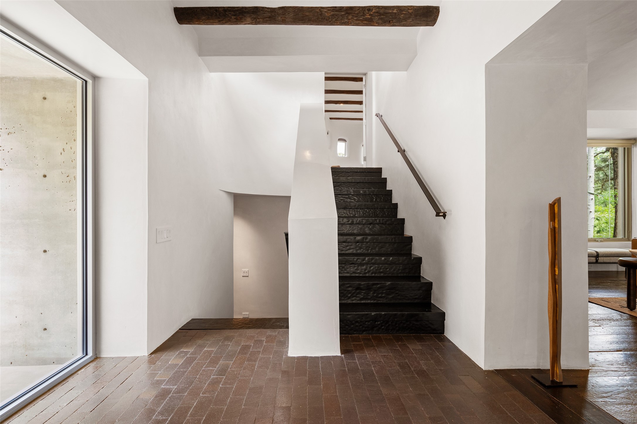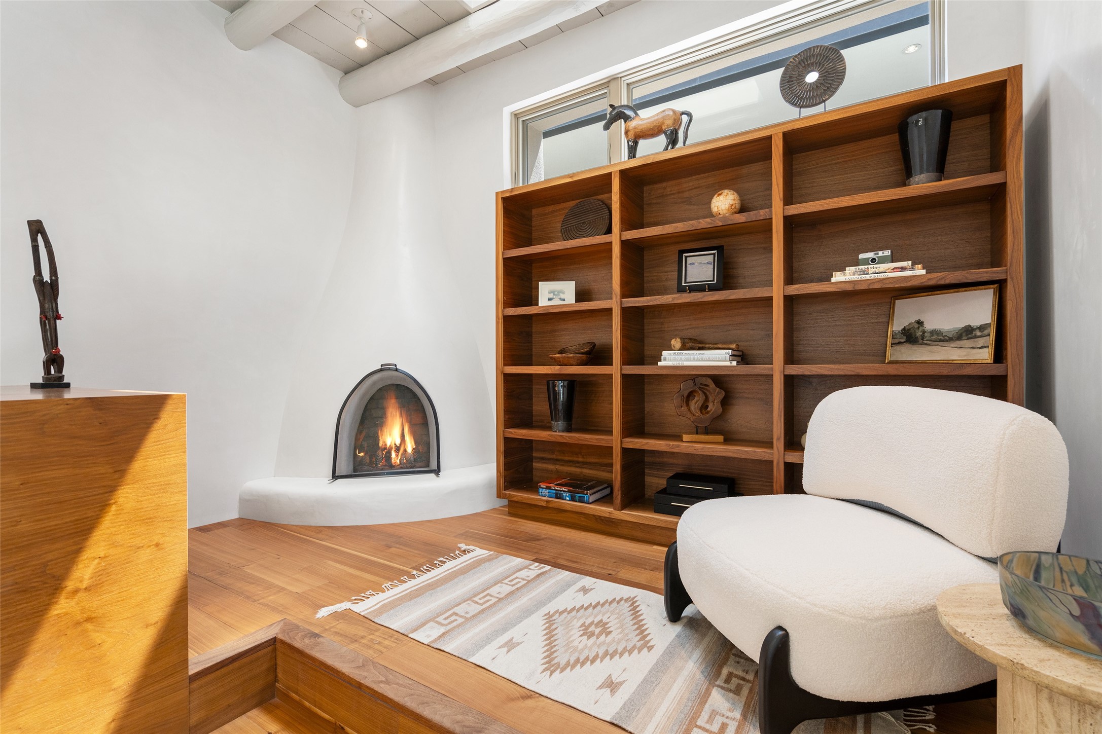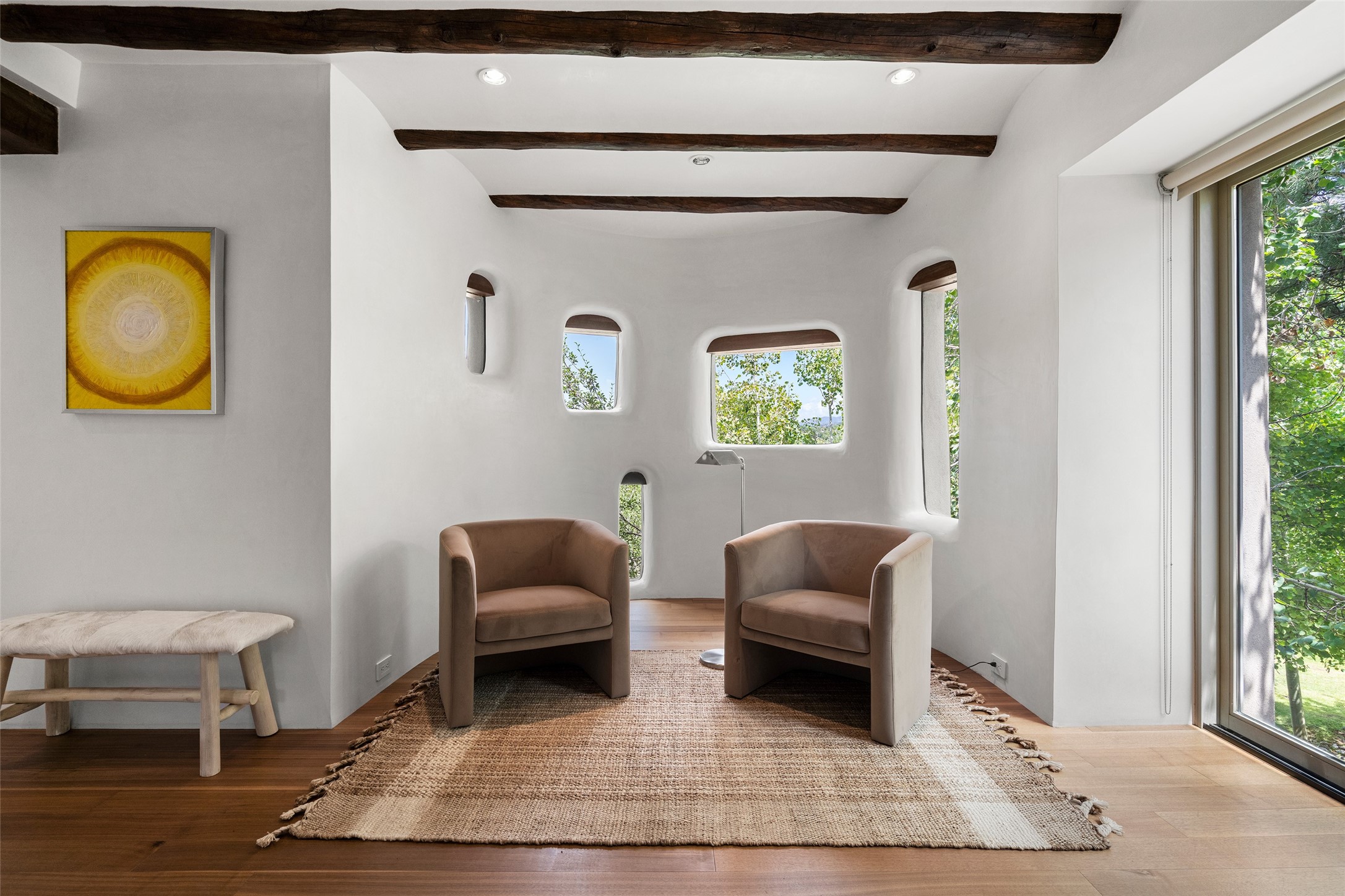 Set along one of Santa Fe's most iconic and sought-after streets, 535 Camino del Monte Sol is a masterful blend of historic authenticity and contemporary refinement. Nestled on a quiet, tree-lined lane just steps from the world-renowned Canyon Road, this exceptional residence offers a rare opportunity to experience the essence of Santa Fe's artistic and architectural heritage.Originally designed and occupied by renowned architect Bill Lumpkins and constructed in classic double adobe, the home has been thoughtfully reimagined by acclaimed designer Trey Jordan. The result is a warm, sophisticated sanctuary that honors its Southwest roots while embracing modern luxury. Passive solar design and timeless craftsmanship create an effortless harmony between beauty and functionality.Privately sited on 1.56 acres behind a gated entrance with a heated driveway and ample parking, the property feels like a hidden retreat. Lush gardens and fruit trees surround the home, blurring the lines between indoors and out, offering multiple tranquil spaces for relaxation and entertaining featuring a swimming pond and in-ground hot tub. A charming studio/casita adds versatility for guests, creative pursuits, or a private office.The gourmet kitchen is a chef's dream, featuring high-end Wolf and Miele appliances, custom cabinetry, and a thoughtful layout perfect for both everyday living and elegant entertaining. The spacious primary suite is a serene haven, complete with views of the Sangre de Cristo Mountains.This property is a premier Eastside sanctuary for those who desire it all -- elegance, comfort, and a coveted Santa Fe address. 535 Camino del Monte Sol is not just a home - it is a legacy.