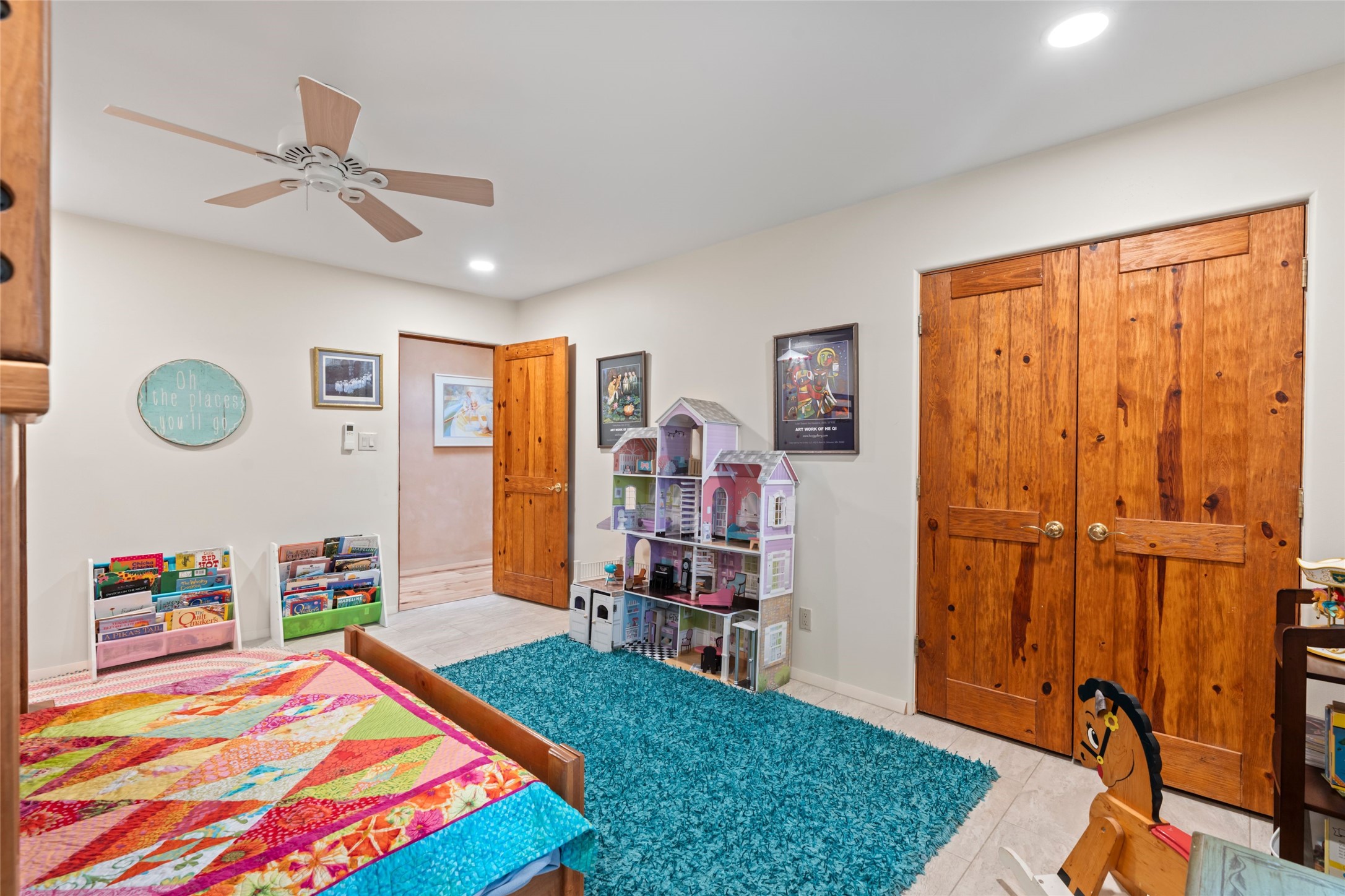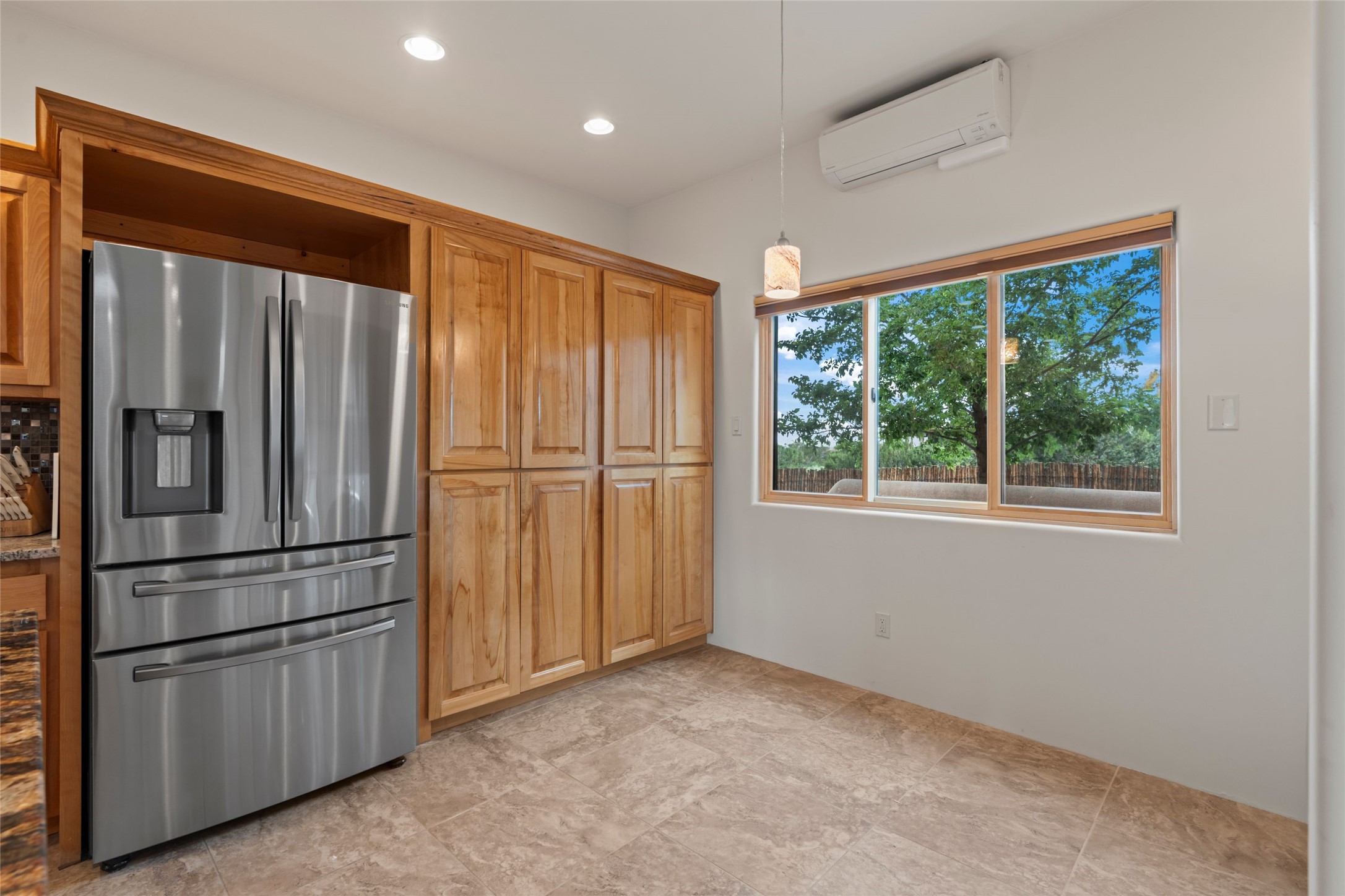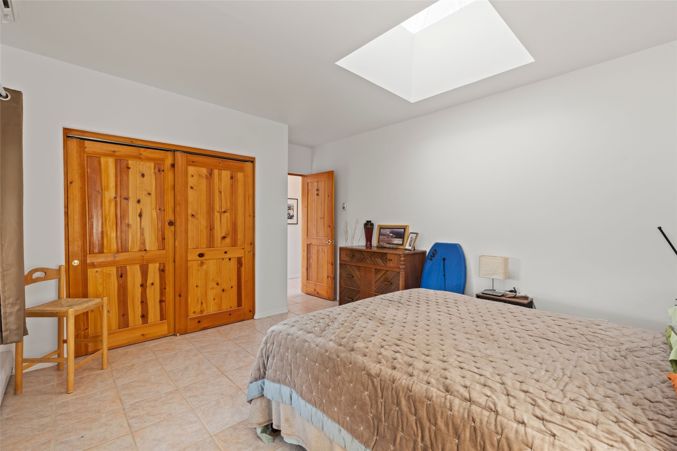 A true Santa Fe masterpiece, this luxurious estate seamlessly blends art, architecture, and nature on a serene 2.46-acre lot with breathtaking views of the Sangre de Cristo mountains. Designed for comfort, sustainability, and inspired living, this extraordinary property offers every amenity for the discerning homeowner.Notable features include double and single-car garages plus a large RV garage, ideal for car enthusiasts, adventure seekers or workshop. The 62-panel solar system and five 2,500-gallon interconnected buried cisterns support an eco-conscious lifestyle, while the extensive drip irrigation system nourishes a lush 1,000 sq. ft. irrigated vegetable garden, orchard (peach, apple, and plum trees), a berry patch bursting with blueberries, blackberries, and raspberries.Enjoy miles of hiking, biking, and horseback riding trails just across the street, or relax in your private oasis with green space bordering the eastern edge of the property, a tranquil water feature with Koi pond, and multiple covered outdoor entertaining spaces, including a plumbed gas fire pit and a fully insulated hot tub.Inside, comfort and luxury abound with radiant floor heating throughout, mini-split systems for cooling, and a security system with cameras. The heart of the home is the spectacular Great Hall, anchored by a gas fireplace, and offering soaring ceilings and an atmosphere of timeless elegance and opening to outdoor spaces. Additional highlights include a top-of-the-line chef's kitchen, butler's pantry, and a quilting/art studio.The estate also includes a charming 2-bedroom guest house and a spacious 2-bedroom studio, also with Sangre de Cristo mountains views. Perfect for guests, extended family, or creative workspaces.There is ample parking for guests and extra vehicles, this estate is ideal for entertaining or enjoying peaceful privacy and solitude. A rare opportunity to own a truly magical home that celebrates the best of indoor-outdoor living in Santa Fe.