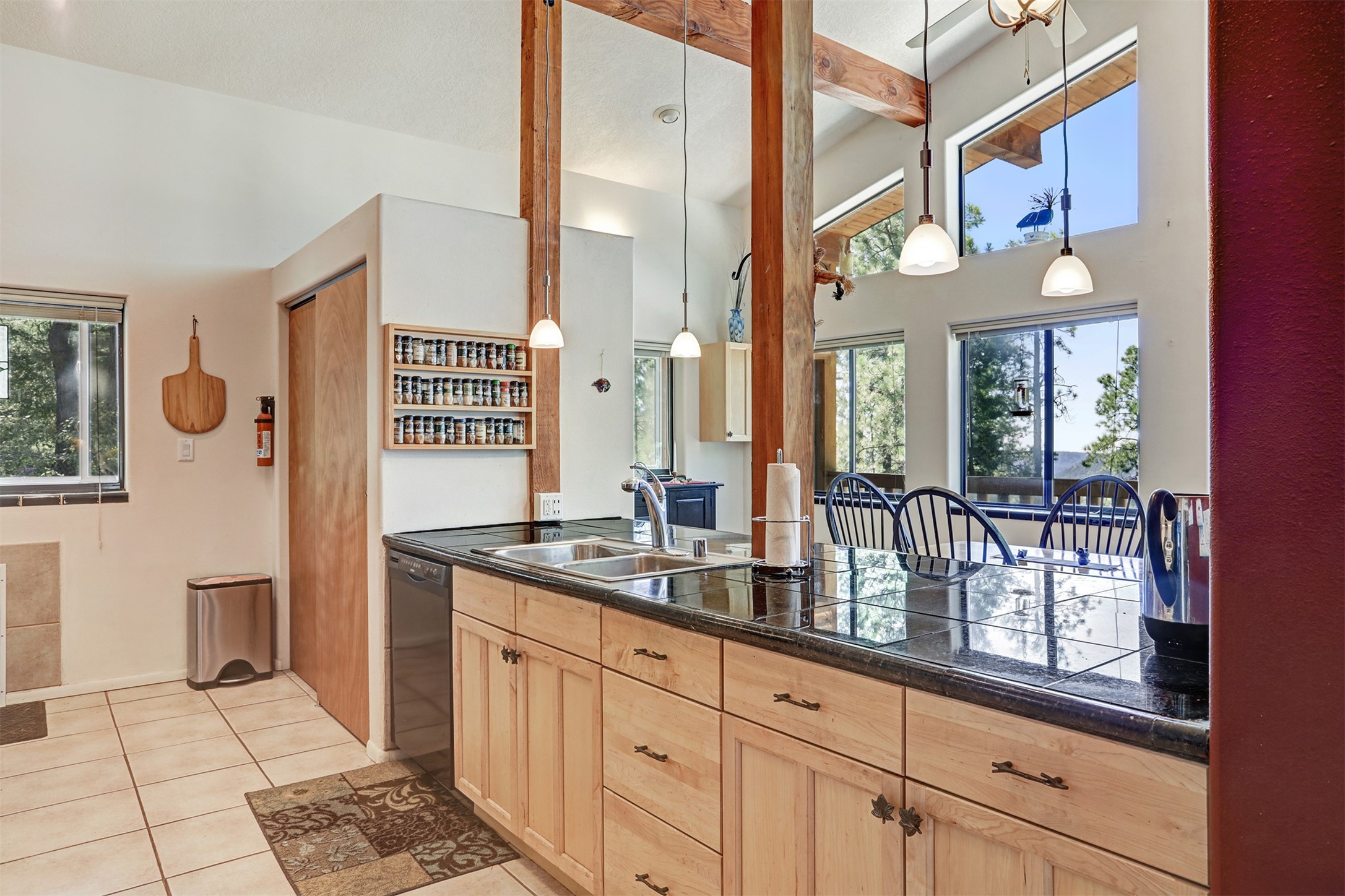 Beautiful Mountain Home in desirable Thompson Ridge Estates. Views of San Antonio Canyon and La Cueva from the kitchen, sunroom, and deck! This log sided home has it all, including the furnishings! 2-3 bedrooms, work shop space and a 2 car garage! Modern features and rustic charm. Get away from the city for the weekend, or for good! 45 minutes to the lab in Los Alamos or an hour or so to Bernalillo. Dog door and fencing for the fur babies Enjoy all that the Jemez has to offer including biking, hiking, skiing, and fishing. Cozy up to the wood stove in winter, and no need for AC in summer. Year round access and only an hour and a half from Albuquerque! If you are looking for views, comfort, and an escape from the city, this is it!