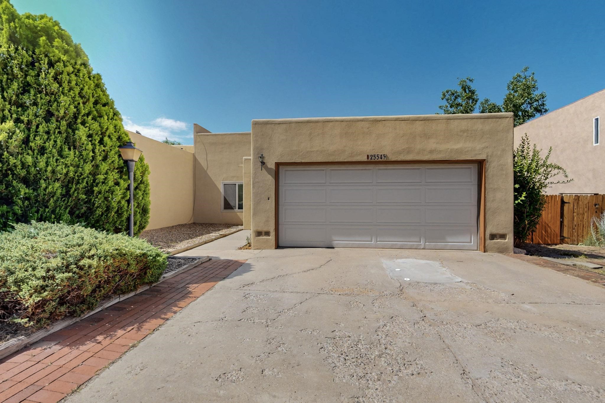 This beautifully, well-maintained single-level two-bedroom home is located near schools, shopping, a park, and a train stop. High ceilings with clearstory windows bring in much natural light, and the woodburning fireplace welcomes you with a great first impression. Two custom patios create a large entertainment area with great sunset views and a peaceful arroyo. There are cherry & pear trees as well as grape vines in the low maintenance backyard.