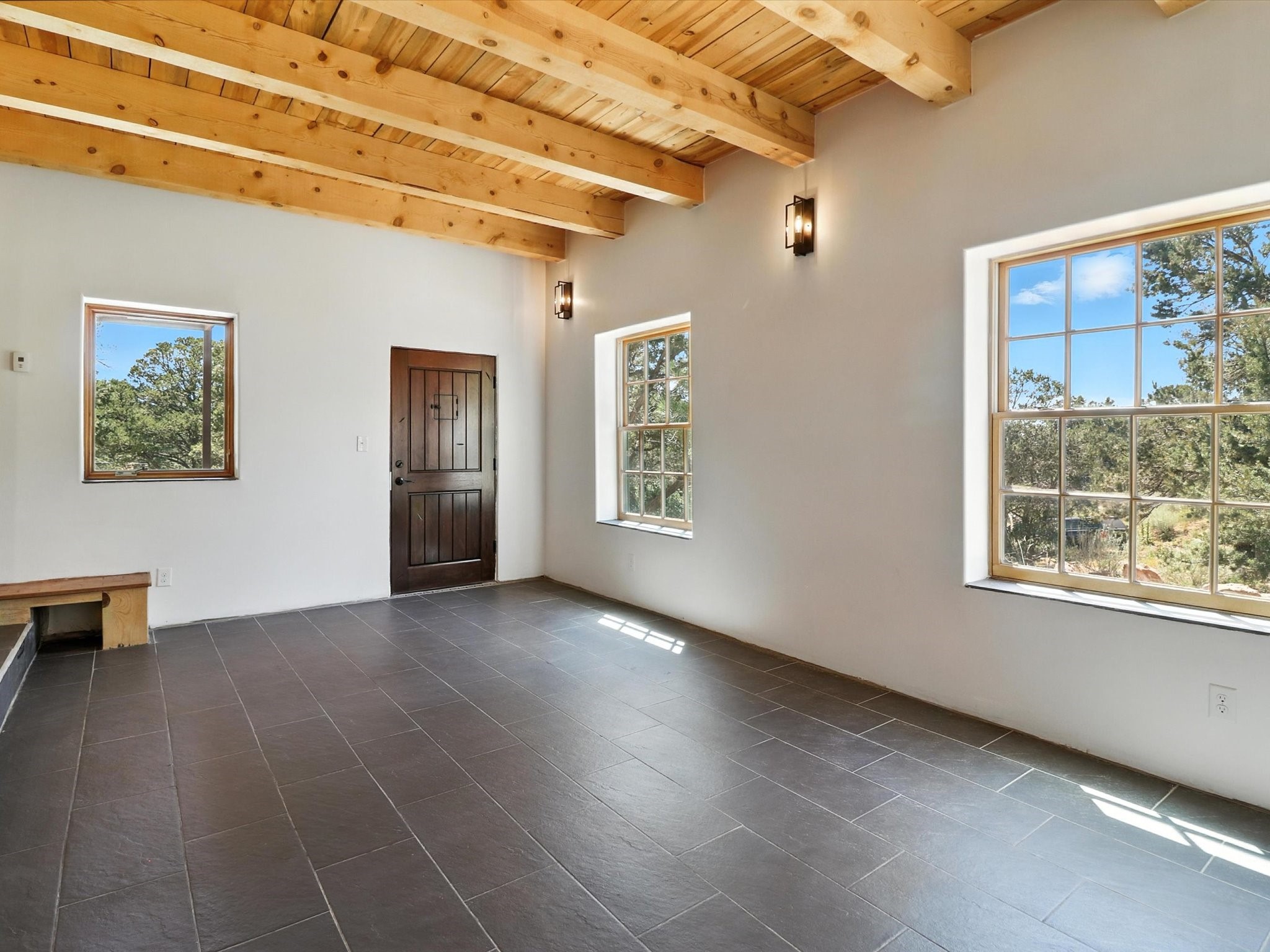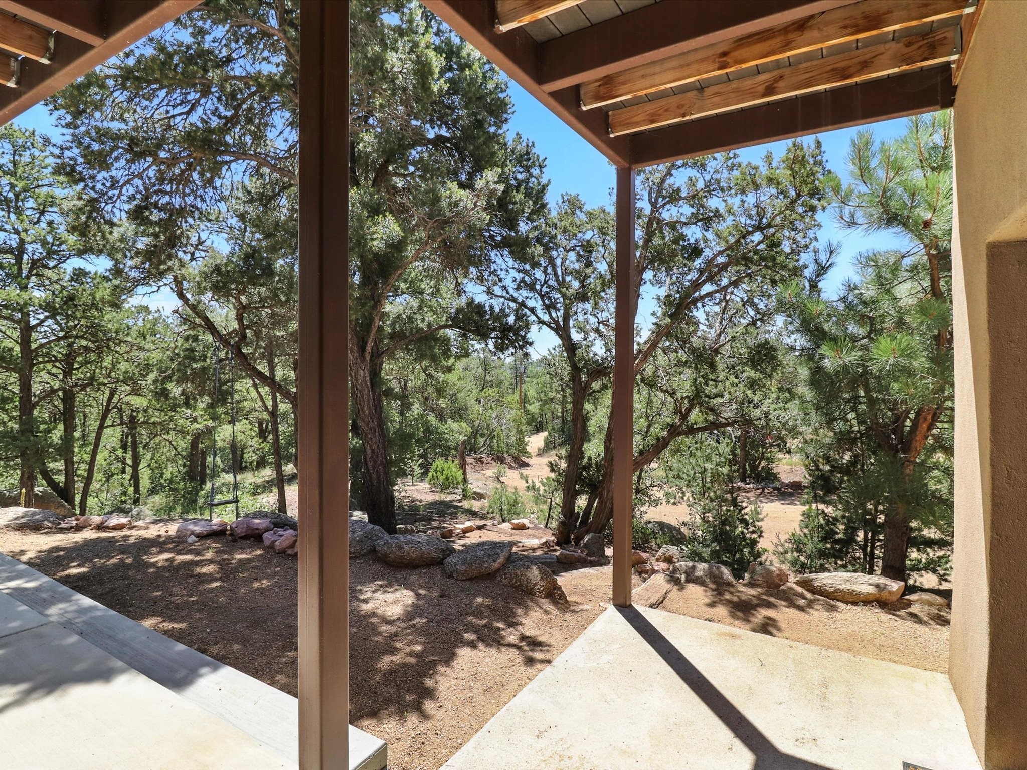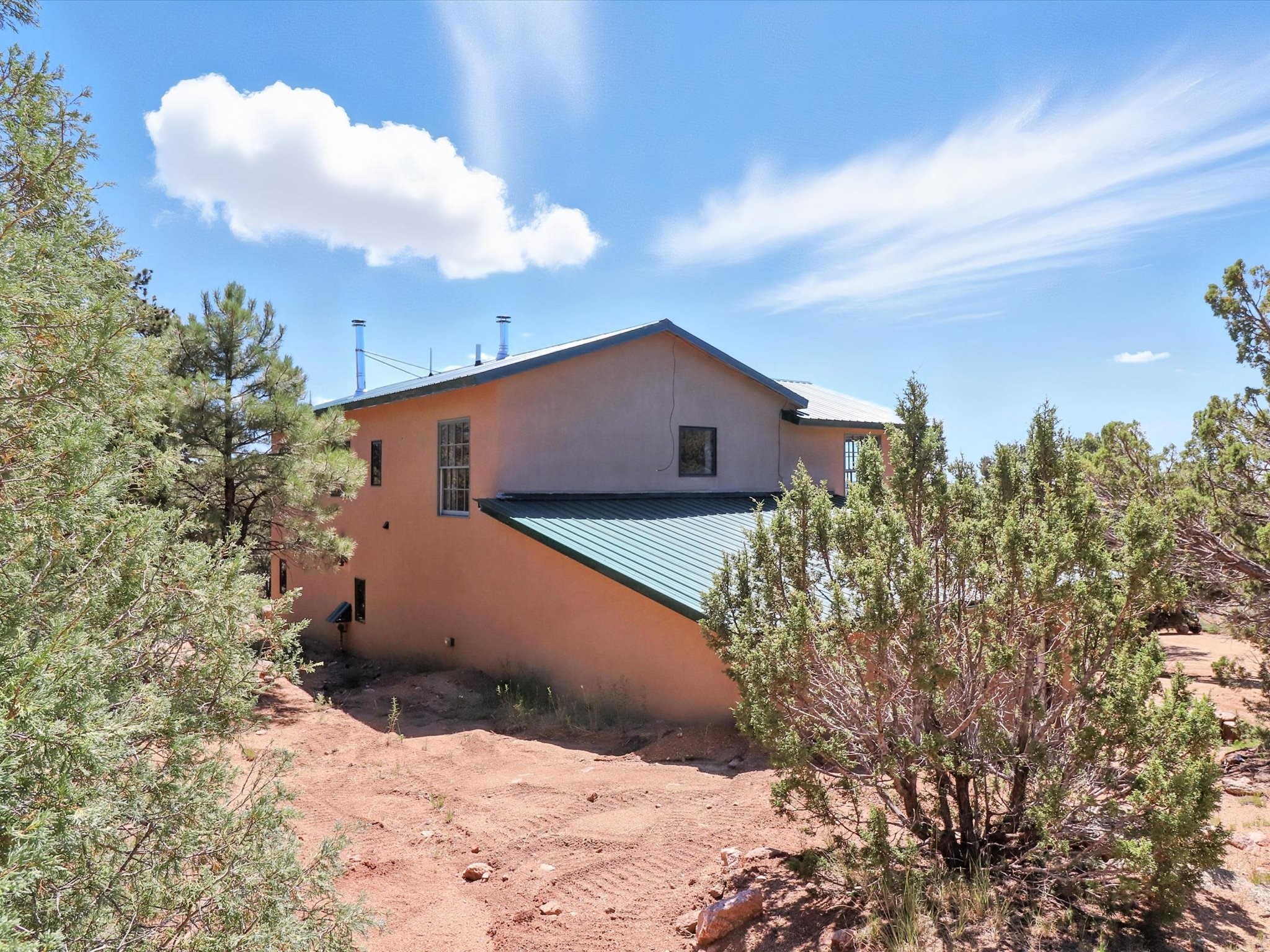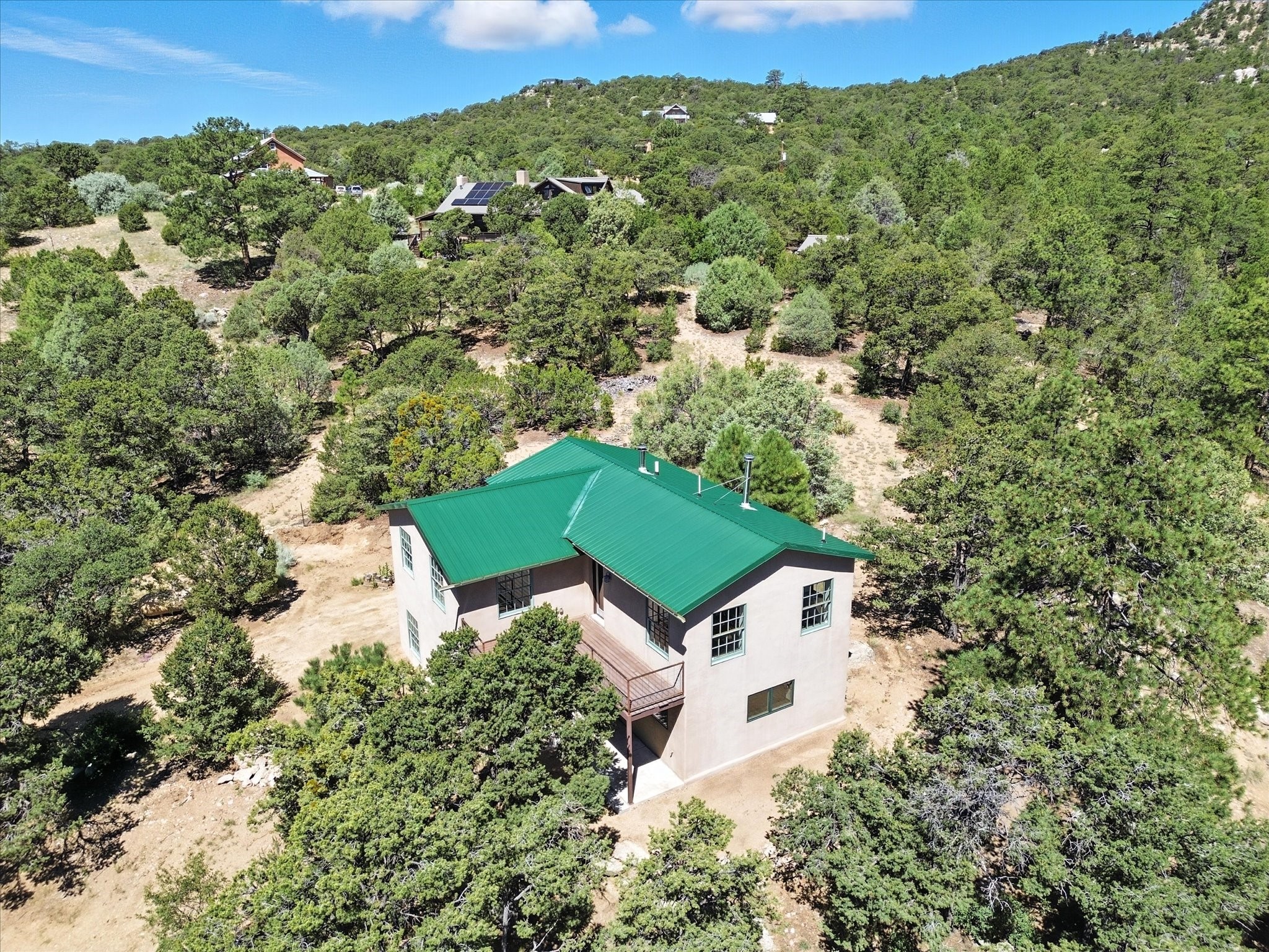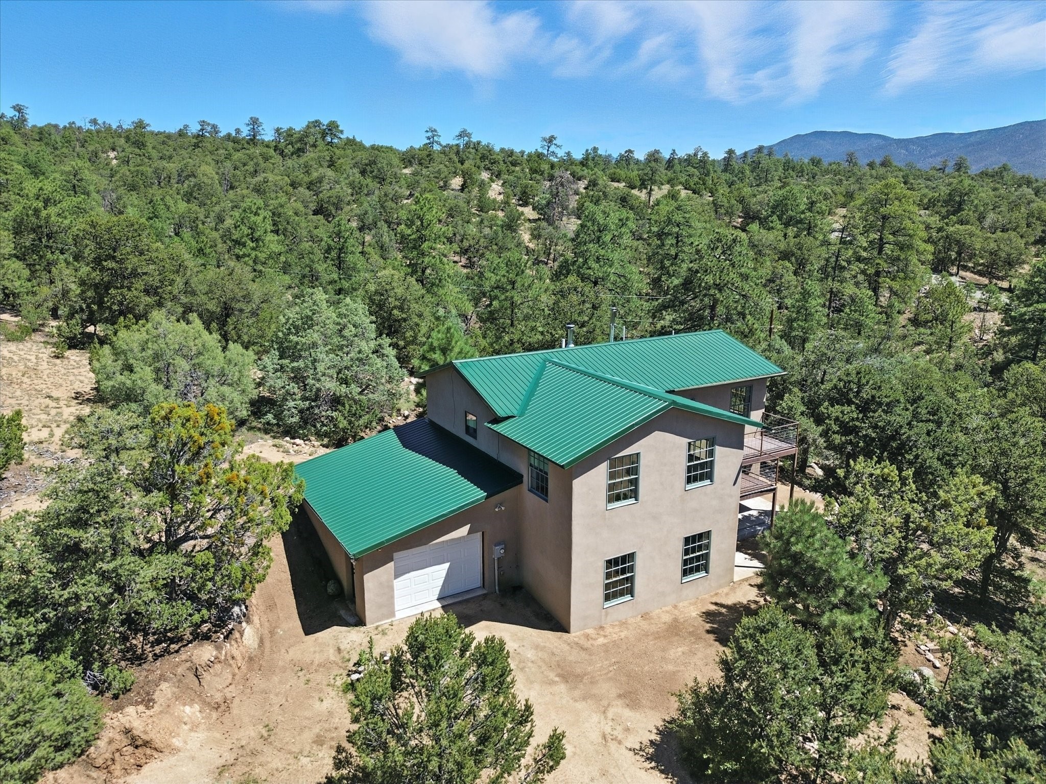 Modern Mountain Retreat Just off of Old Santa Fe Trail. A serene sanctuary nestled into the mountainside and surrounded with pines. This beautiful home offers breathtaking views of the green valley, the Shaggy Peaks and Pecos Mountains beyond--an ideal setting for those seeking peace, space, and connection with nature.With 3 spacious bedrooms and 2 full bathrooms, this home has a spacious living area perfect for relaxing, entertaining, and creating. The open-concept layout seamlessly blends the dining and kitchen spaces; all bathed in natural light from large windows that frame the stunning landscape. The kitchen is crafted for both functionality and style, making it the true heart of the home.Enjoy the comfort of a stone-tiled en-suite bath with a soaking tub and a cozy fireplace, a spacious walk-in closet, and private access to a balcony where morning coffee comes with inspiring Forest views.Each bedroom is graced with large windows that invite sunlight and forest views, while a separate laundry room upstairs adds everyday convenience. The attached garage adds to the practicality of this quiet haven, blending comfort and utility.Set in a peaceful, rural-feeling location, yet with easy access to town, 25 Calle Marisol offers the best of both worlds--tranquility and convenience. If you're seeking a lifestyle surrounded by nature, with room to breathe and views to inspire, this is your perfect place to call home.