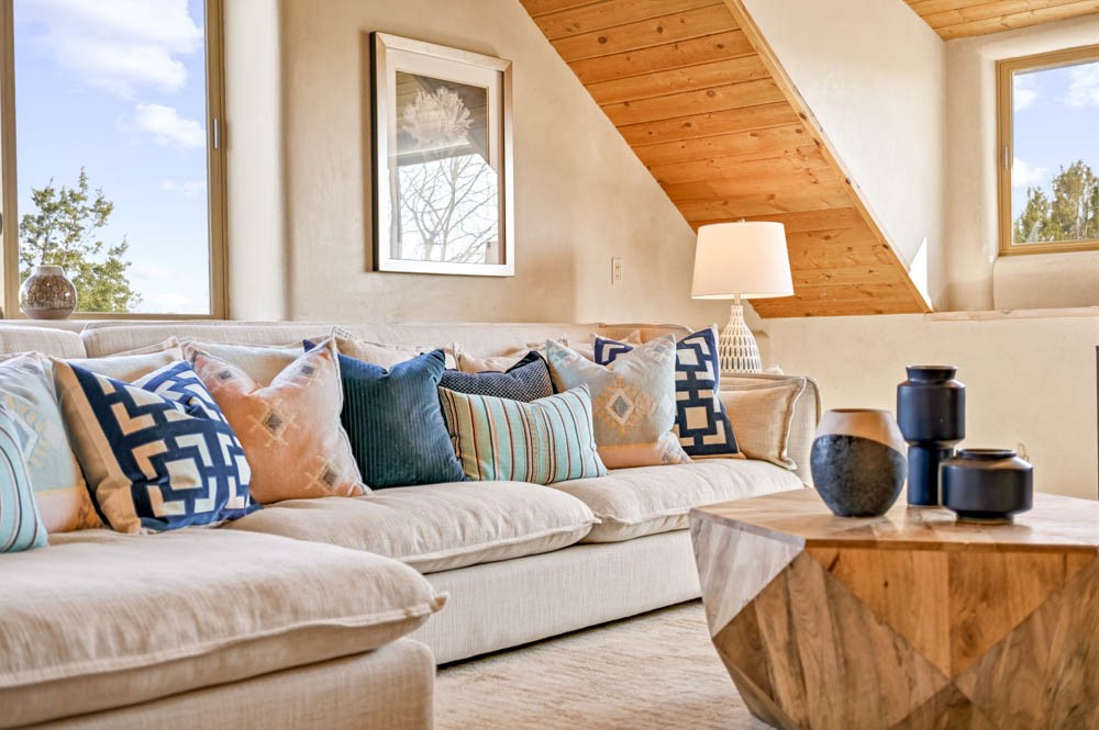 Nestled in the sought-after Art Barns area of Lamy, just a scenic 20-minute drive from Santa Fe, this distinctive 2-bedroom, 2-bath home offers a rare blend of privacy, character, and sweeping mountain views on 5.86 acres. Spanning 2,563 square feet, the residence features beautiful Saltillo tile flooring, comfortable in-floor radiant heating, and a flexible loft space ideal for a home office or family room. A pitched roof and classic Southwestern styling complement the surrounding landscape, while recent 2025 updates--including a new boiler, stucco repairs on the home, and brand-new stucco on the detached oversized 2-car garage--provide peace of mind. With expansive outdoor space, stunning vistas, and easy access to Eldorado's shopping and Santa Fe's amenities, this property is an exceptional opportunity to enjoy serene high-desert living at its finest.