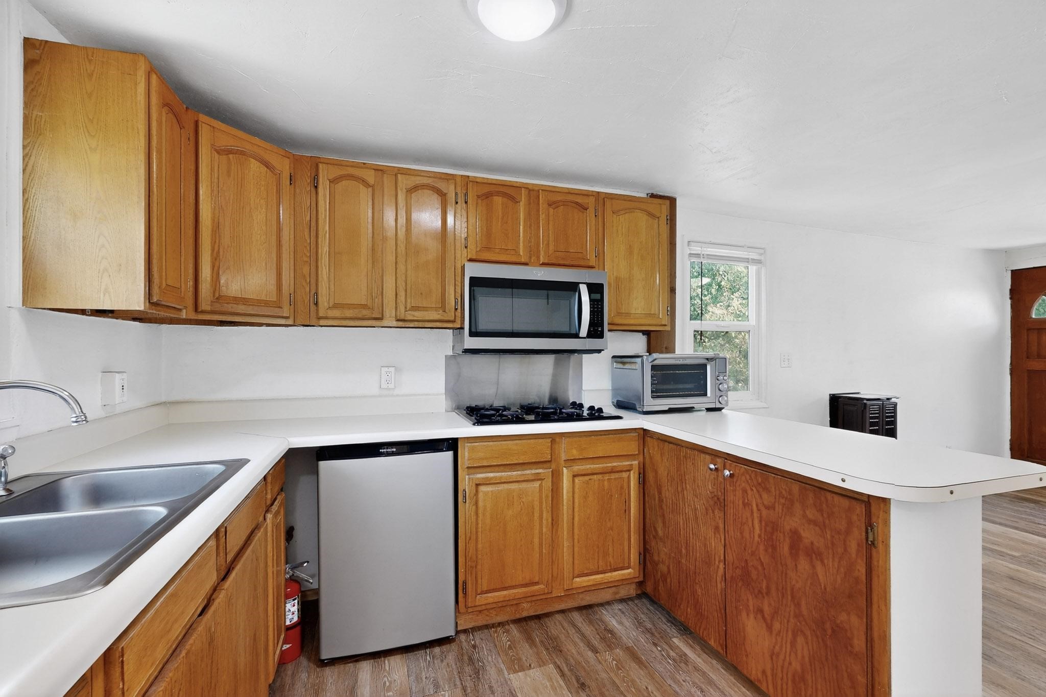 Unique and charming property at the end of Paseo De La Conquistadora on just under a 1/2 acre corner lot. Potentially an ideal ADU (accessory dwelling unit). The property lends itself to multigenerational living with the elderly parents, an offspring and a caregiver living in close proximity but with separate living spaces for privacy. Nestled under mature tree cover this property has three residential dwellings. The site built house is composed of two units. One is a one bedroom with three quarter bath and has its own walled courtyard with flagstone pavers. The smaller unit is an efficiency with a three quarter bath. There is a manufactured home with two bedrooms, two office areas and two baths. It features oak and tile floors and has a nice ambience accented by a kiva fireplace. It also has a 684 square porch running the length of the building. There is a wonderful nicely landscaped side yard that is fenced and very private. The lot has numerous fruit trees, lilacs and tall pines and sits up high above the Santa Fe river and there is a nice view of the Sangres. The Santa Fe river trail is just below the lot. The property has secure access via a remote controlled gate.
