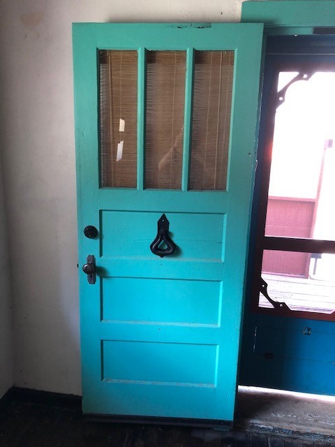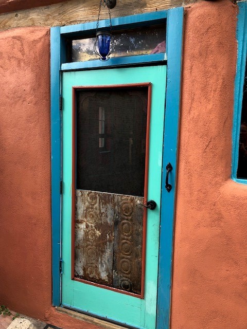 This one-of-a-kind adobe house has a fascinating history. It was built as a "bounty house" after the Civil War: soldiers could have a piece of land for free if they built a certain minimum size house on it. The bounty house is the living room of this house - a large room with wood floor and high ceiling made of vigas and latillas. With a red enamel gas stove at the far end, a built-in bookcase near the front door, and Mexican light fixtures, it is a charming entry to the house. The rest of the house was built onto this structure later and includes a bathroom with walk-in tub, a laundry area, and a large homey kitchen downstairs. The kitchen has a large 5-burner gas stove and large matching refrigerator and freezer. A spiral staircase leads upstairs to the bedroom, which has bathroom facilities in it (sink, toilet, and claw-foot tub), and a walk-in closet. The lot is 0.29 acres, green and lush and graced with large old trees. There is a large storage shed with slab floor and a couple of patios off the house. The whole property is walled or fenced, and there is an electric gate. Truly a special property.