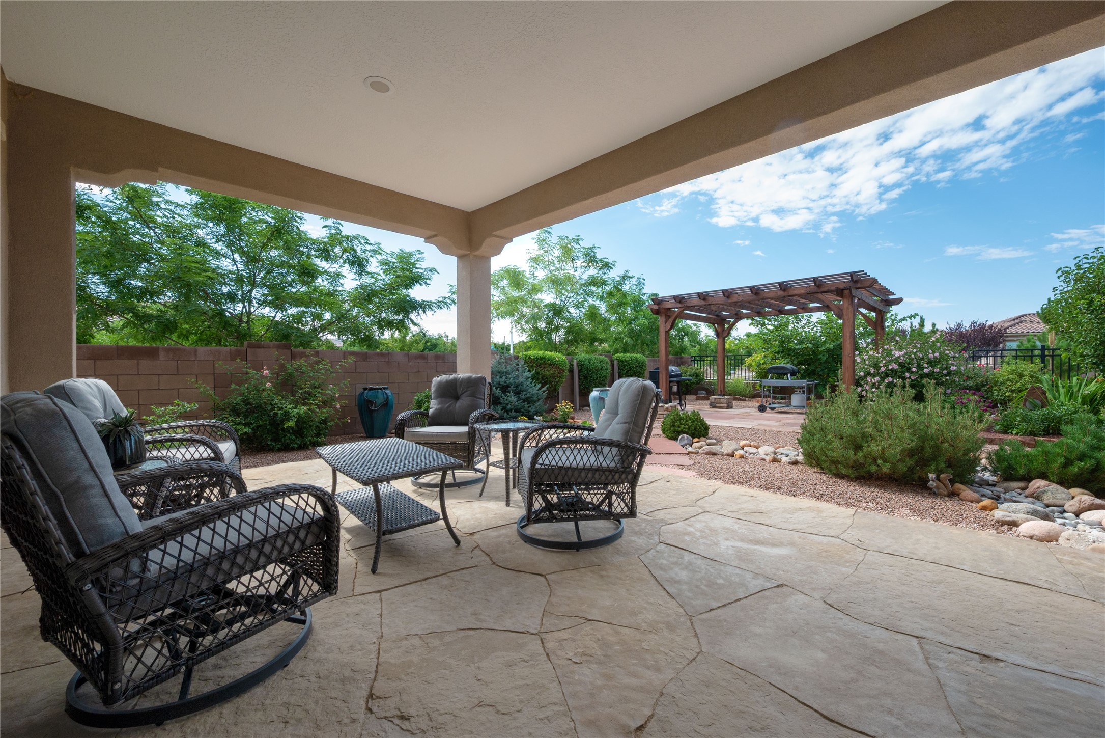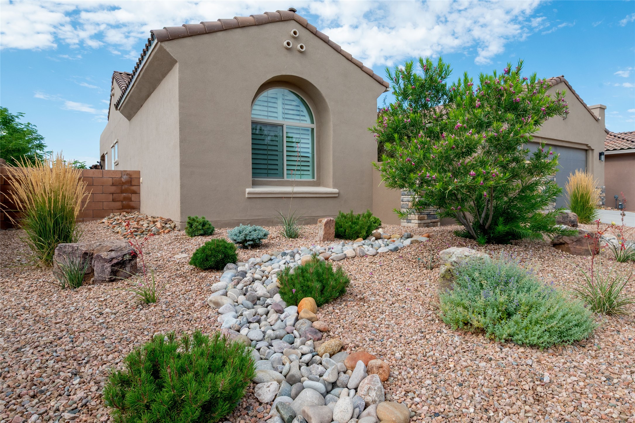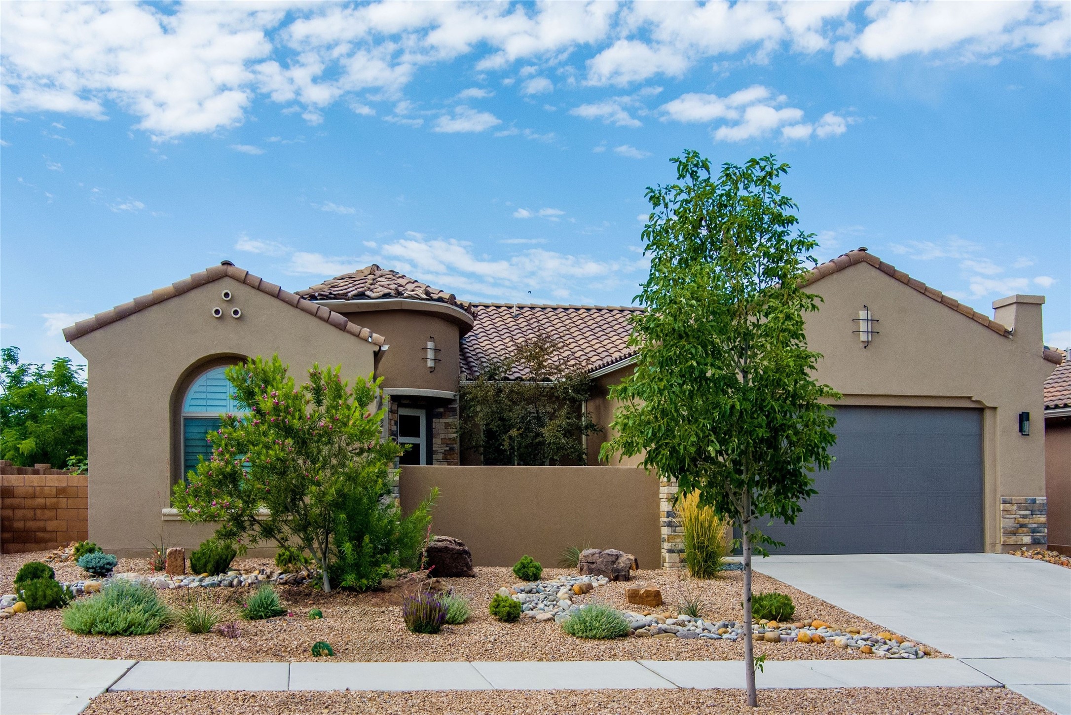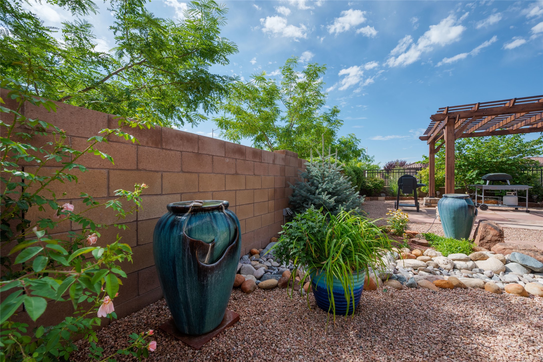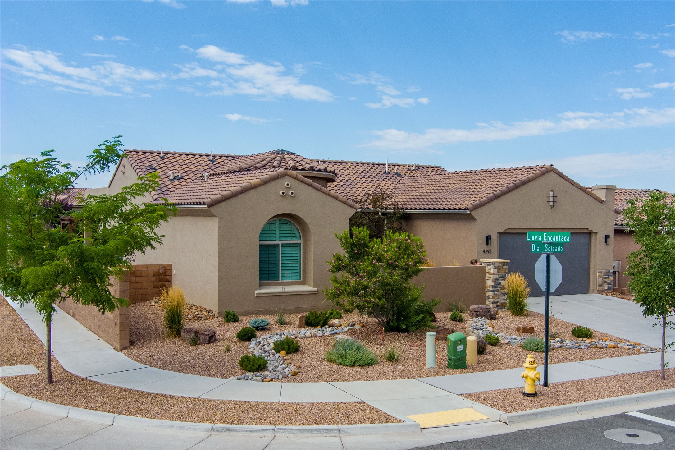 Discover the perfect blend of comfort, style, and convenience in this beautifully designed 2019 home, featuring two private en-suite bedrooms ideal for hosting guests with ease. High-level finishes throughout create a refined yet inviting atmosphere, while the thoughtfully landscaped yard offers year-round beauty with minimal upkeep. The open floor plan accommodates easy living with a kitchen any chef will love. The spacious en-suite bedrooms enjoy separation ensuring privacy for all. A flex room with courtyard window is ideal for home office, library or media room. The large, covered flagstone portal patio off the living room overlooks the water features, gazebo and garden. The oversized garage includes extra storage, making it easy to keep everything organized without sacrificing space for your vehicles. Did we mention this home is on a greenbelt? Designed for the busy professional or those ready to downsize without compromising quality, this home offers low-maintenance living in a serene setting-just move in and enjoy. Shopping, dining and medical options are all nearby. The Las Soleras community offers walking paths and greenspaces for residents to enjoy.