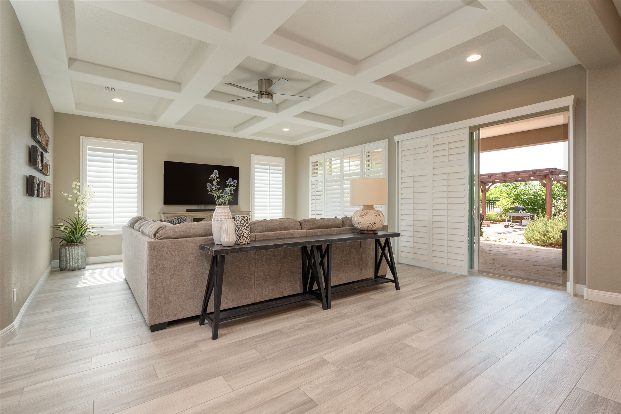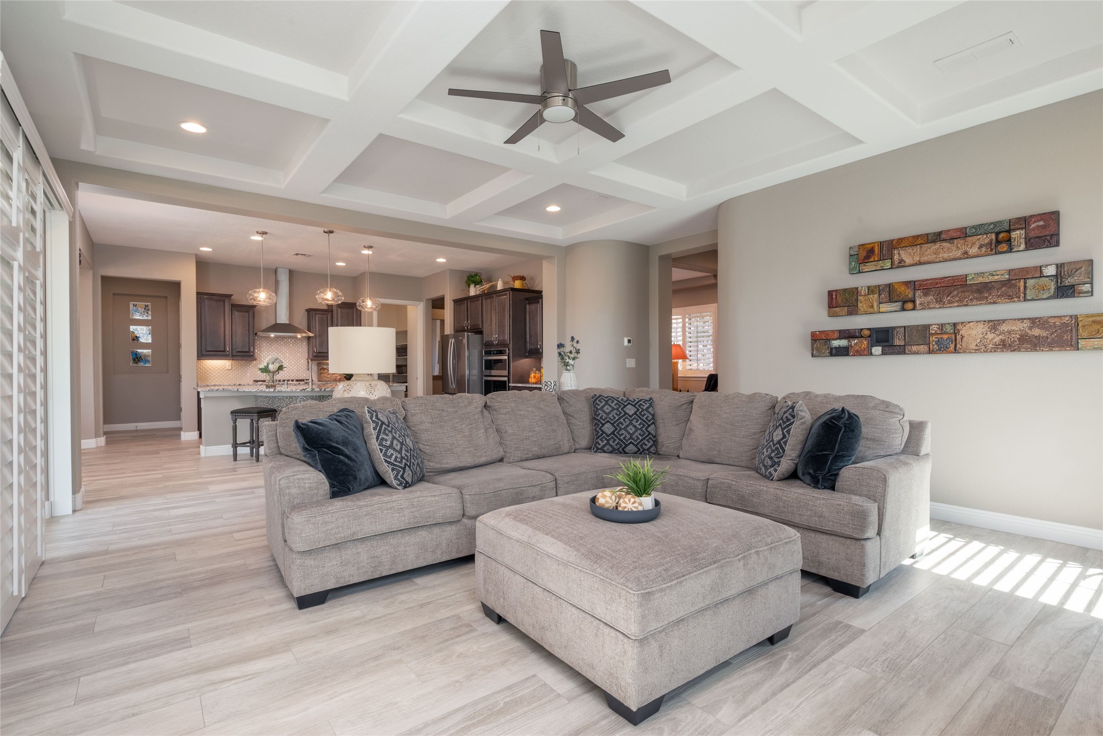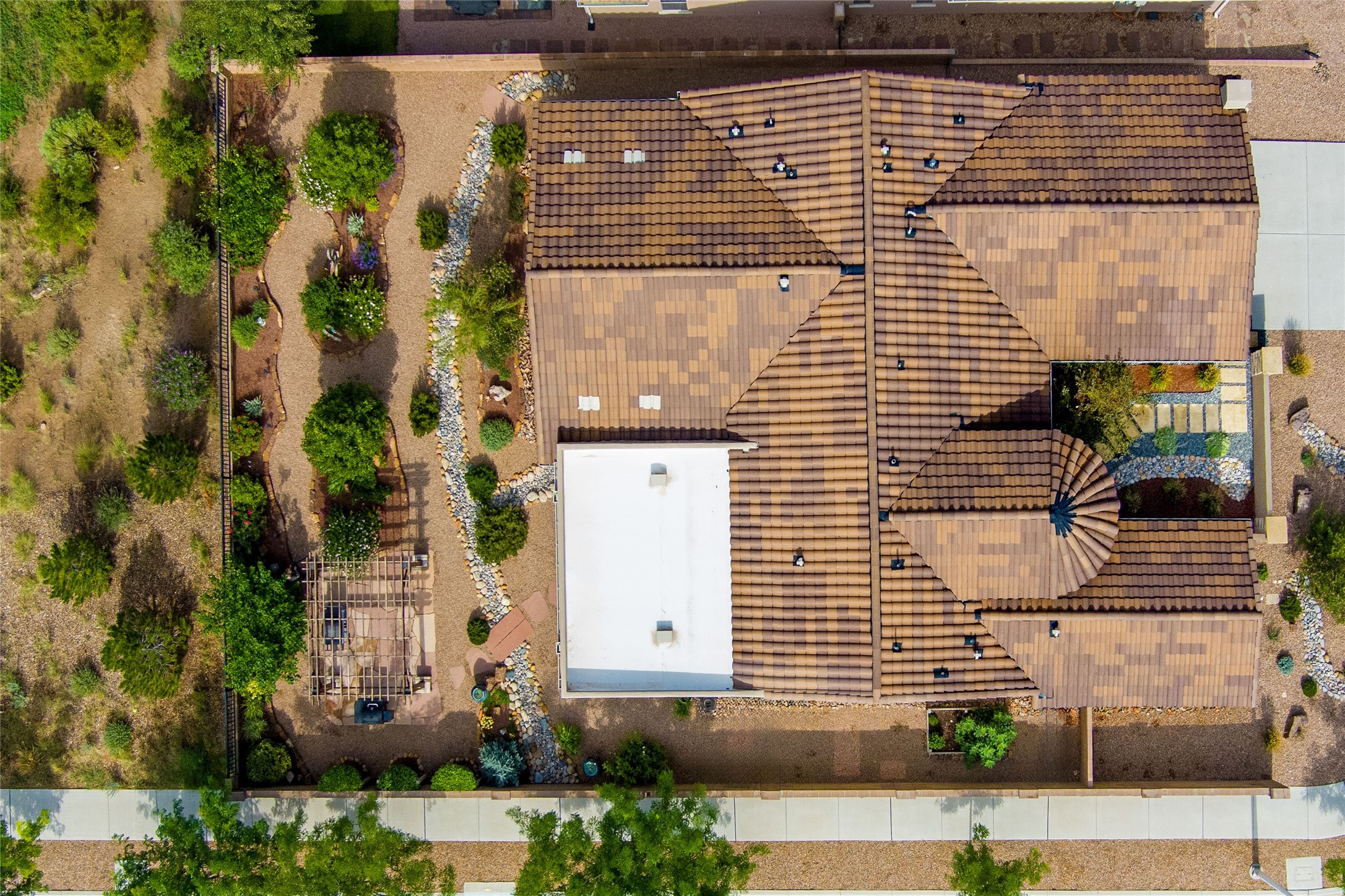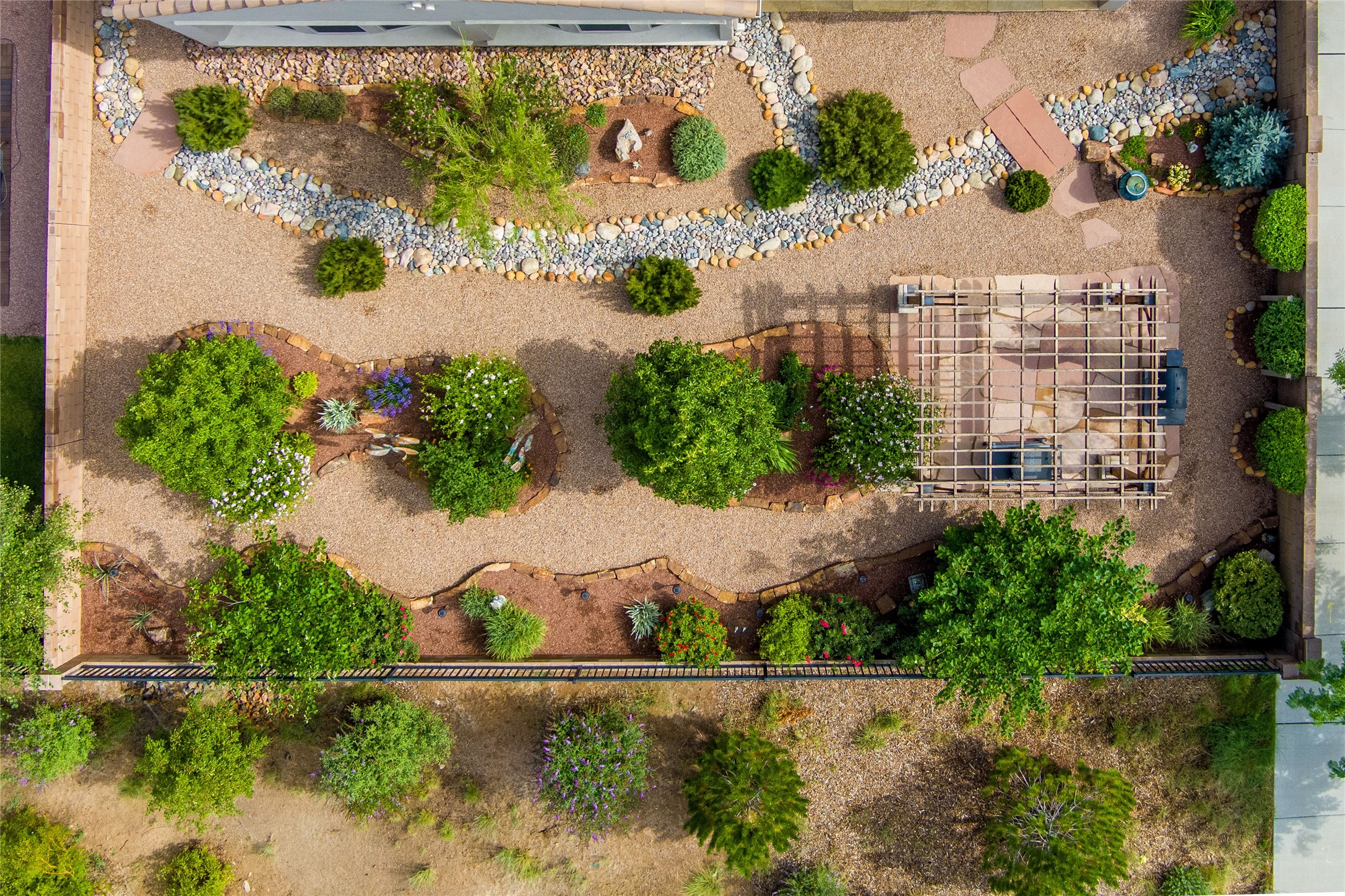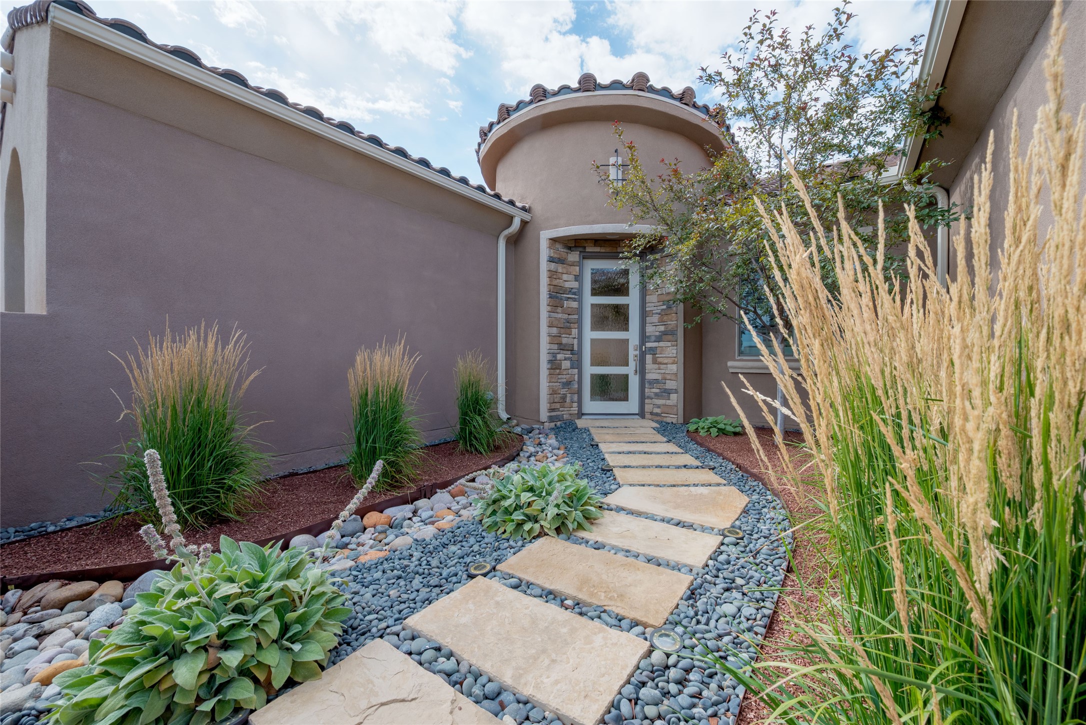 Discover the perfect blend of comfort, style, and convenience in this beautifully designed 2019 home, featuring two private en-suite bedrooms ideal for hosting guests with ease. High-level finishes throughout create a refined yet inviting atmosphere, while the thoughtfully landscaped yard offers year-round beauty with minimal upkeep. The open floor plan accommodates easy living with a kitchen any chef will love. The spacious en-suite bedrooms enjoy separation ensuring privacy for all. A flex room with courtyard window is ideal for home office, library or media room. The large, covered flagstone portal patio off the living room overlooks the water features, gazebo and garden. The oversized garage includes extra storage, making it easy to keep everything organized without sacrificing space for your vehicles. Did we mention this home is on a greenbelt? Designed for the busy professional or those ready to downsize without compromising quality, this home offers low-maintenance living in a serene setting-just move in and enjoy. Shopping, dining and medical options are all nearby. The Las Soleras community offers walking paths and greenspaces for residents to enjoy.