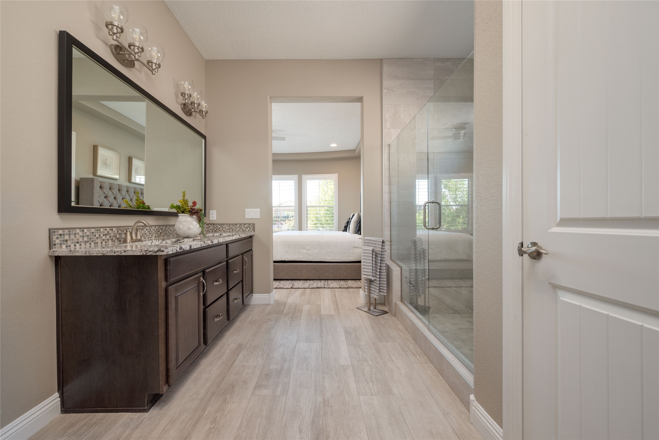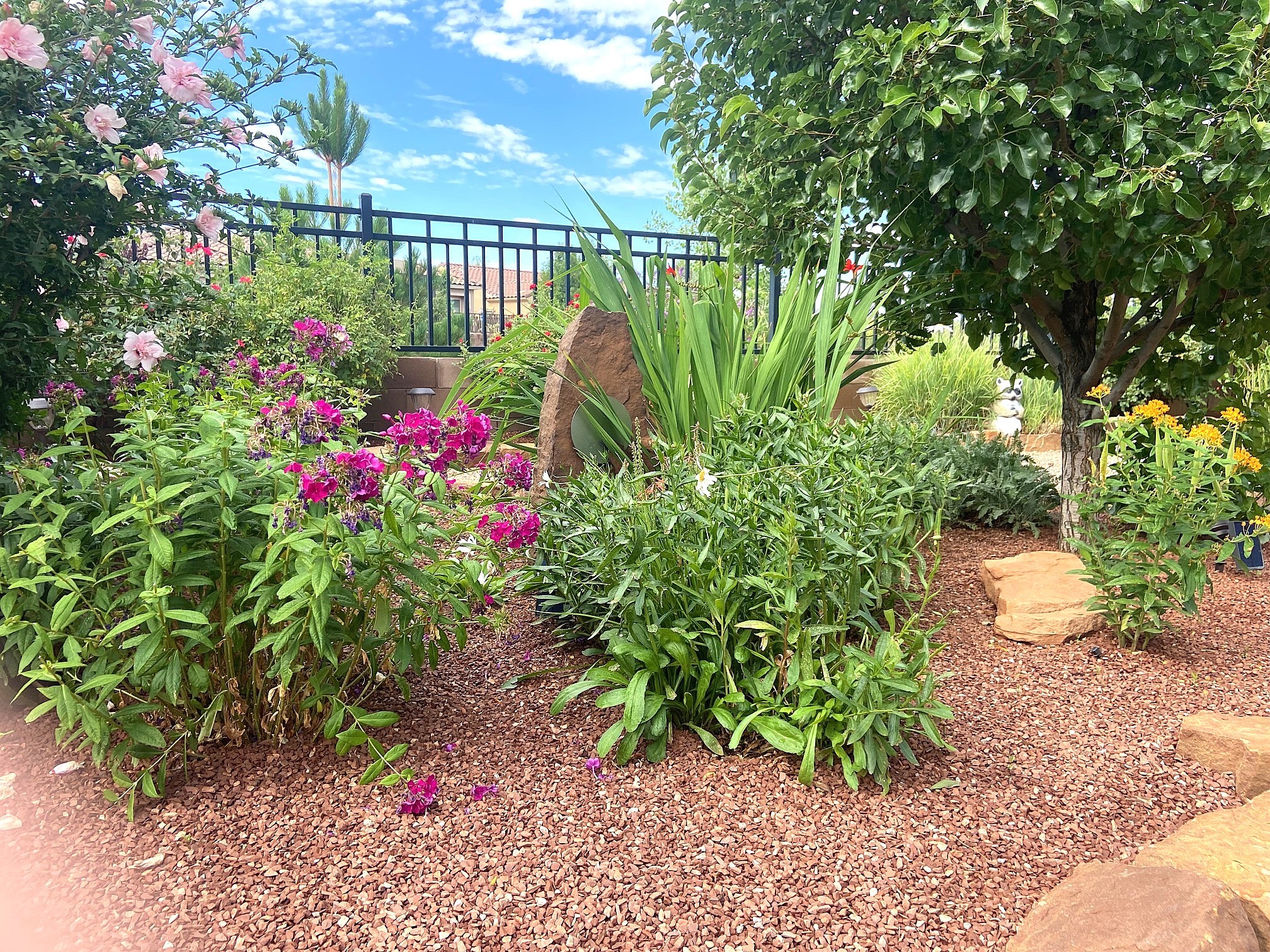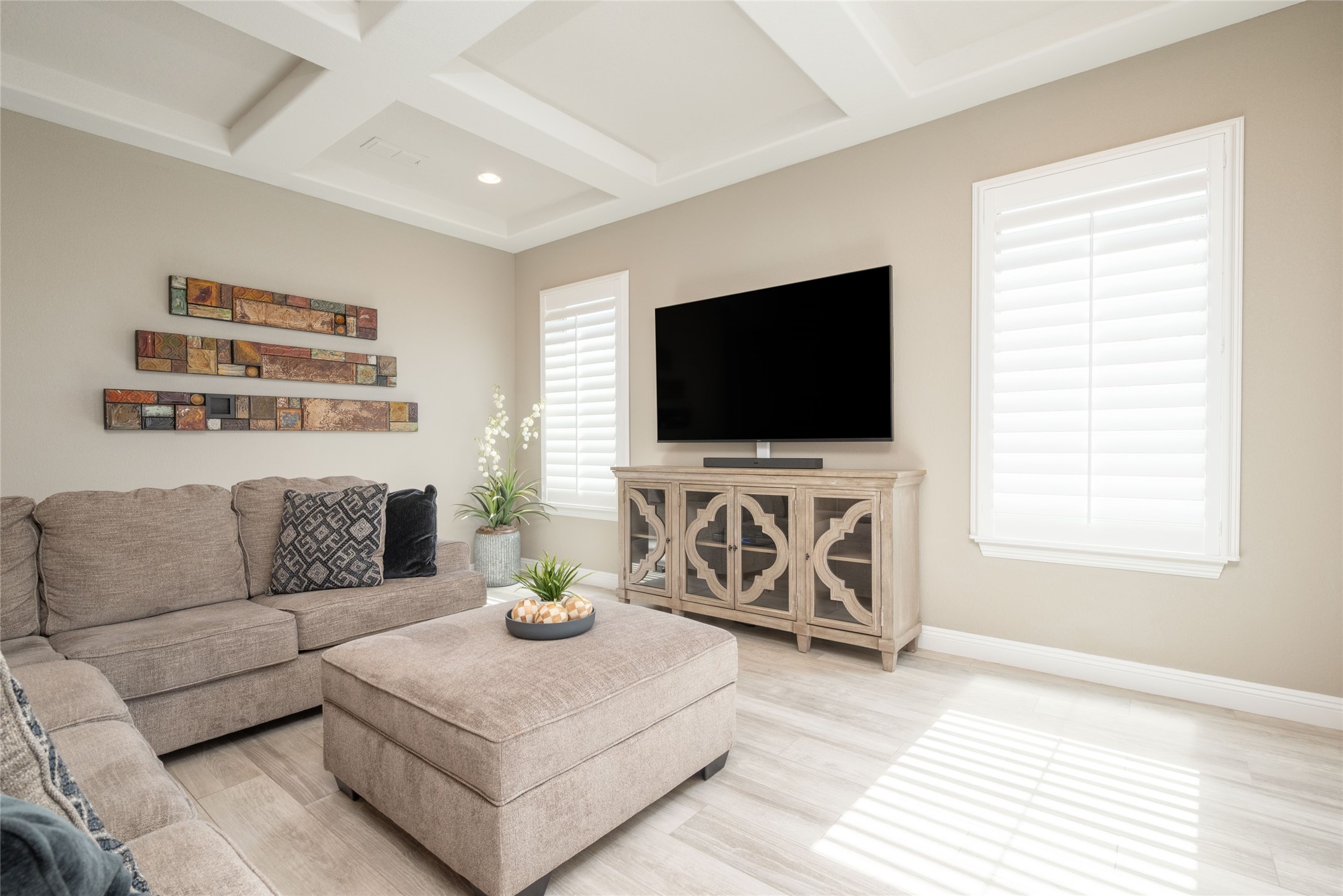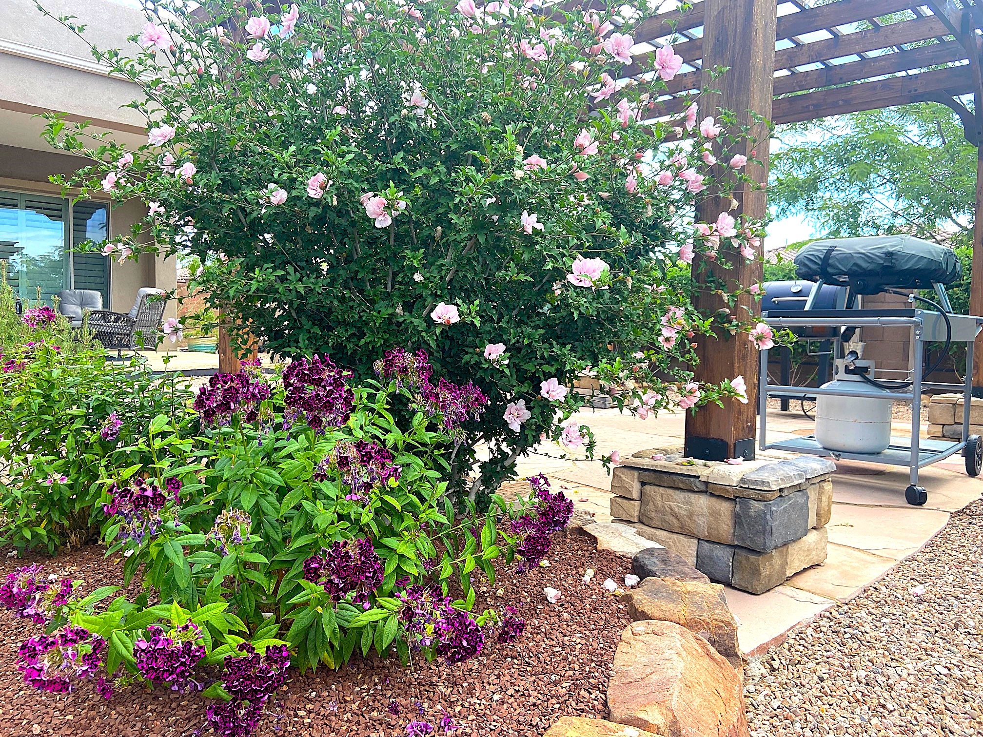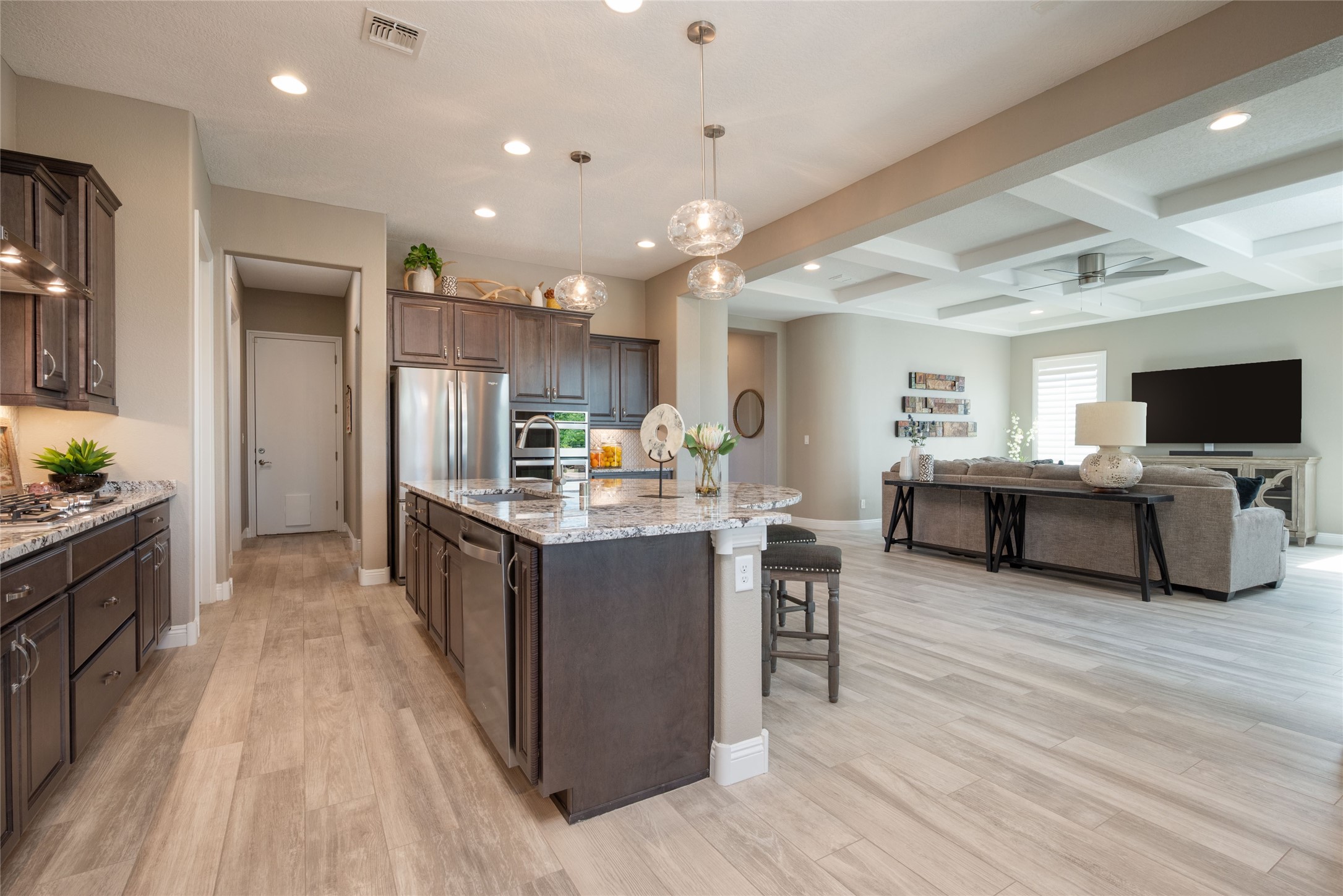 Discover the perfect blend of comfort, style, and convenience in this beautifully designed 2019 home, featuring two private en-suite bedrooms ideal for hosting guests with ease. High-level finishes throughout create a refined yet inviting atmosphere, while the thoughtfully landscaped yard offers year-round beauty with minimal upkeep. The open floor plan accommodates easy living with a kitchen any chef will love. The spacious en-suite bedrooms enjoy separation ensuring privacy for all. A flex room with courtyard window is ideal for home office, library or media room. The large, covered flagstone portal patio off the living room overlooks the water features, gazebo and garden. The oversized garage includes extra storage, making it easy to keep everything organized without sacrificing space for your vehicles. Did we mention this home is on a greenbelt? Designed for the busy professional or those ready to downsize without compromising quality, this home offers low-maintenance living in a serene setting-just move in and enjoy. Shopping, dining and medical options are all nearby. The Las Soleras community offers walking paths and greenspaces for residents to enjoy.
