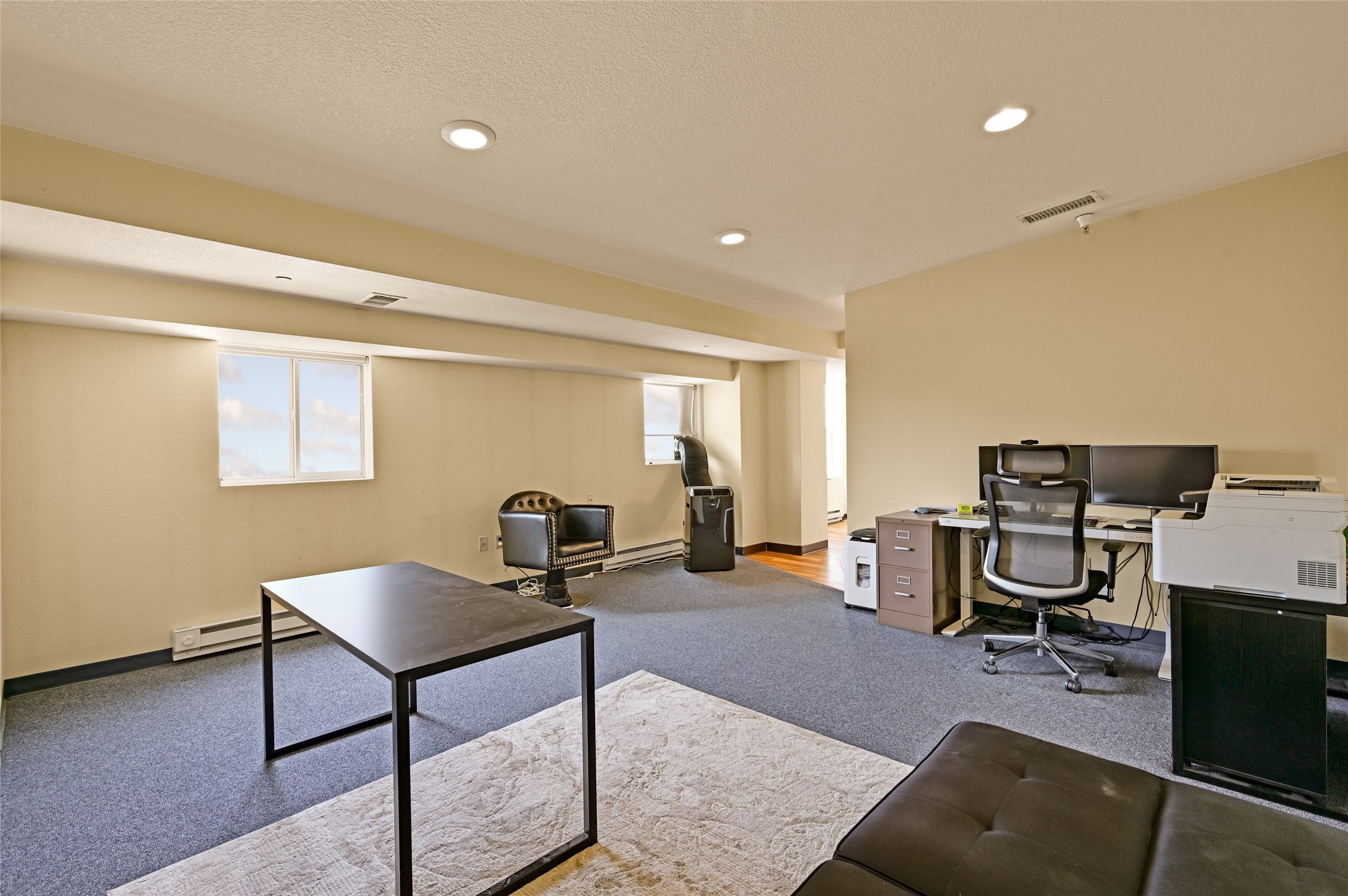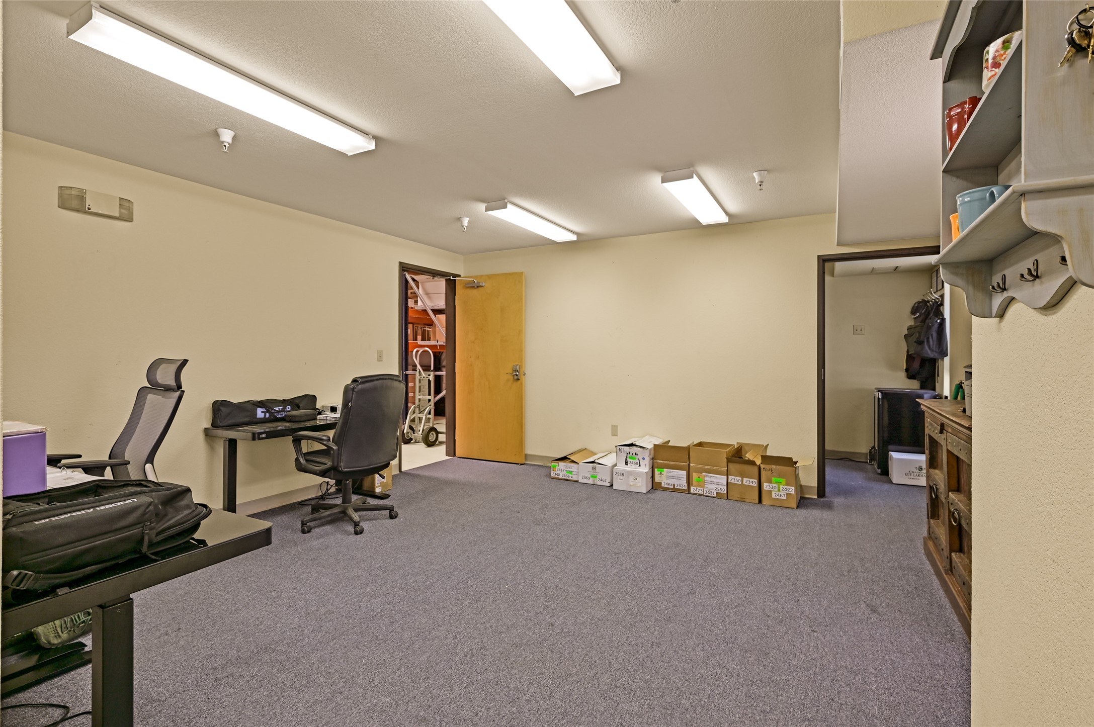 Versatile live/work space featuring a reception/waiting or showroom area, office, and half restroom, along with an L-shaped warehouse that includes a large 12' roll-up door and 23' ceilings. Upstairs offers a studio apartment with a kitchenette and three-quarter bath. This flexible property is ideal for small distribution, light manufacturing, storage, or boutique fitness classes. Additional highlights include ample parking, a convenient location, and excellent proximity to 599, I-25, and Highway 14. The well-maintained Condo Association has a monthly unit fee of approx. $325. This property is currently occupied with a tenant in place until June 30, 2026, providing immediate rental income for the new owner.Tenant Renewal Option: 3-year extension available.