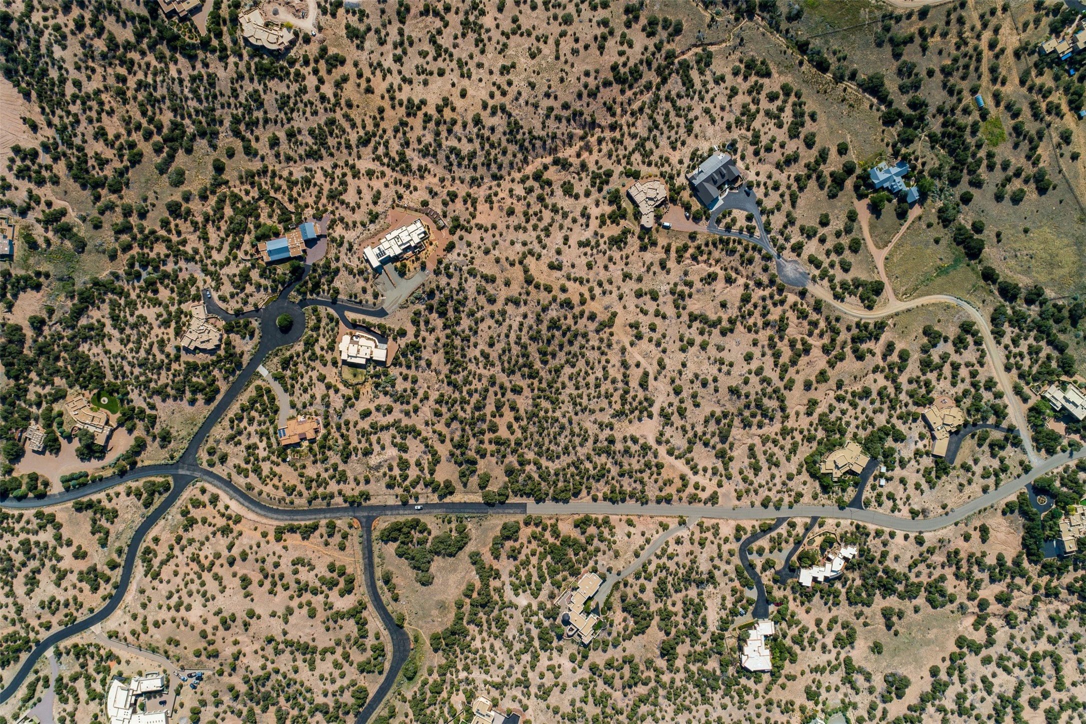 This outstanding 7.5-acre "top-of-the world" estate lot offers proximity to town, ease of access, privacy and sweeping panoramic views. The offering consists of two lots that can be used to craft an exceptional estate or multi-generational compound. This is the only lot of this size in the area with generous building site options and a shared well. Natural gas and electricity are in the street. The unobstructed views of the Sangre de Cristo, Jemez and Sandia Mountains make this an exceptional offering. Building plans and consultation available from Modern Design+Construction.