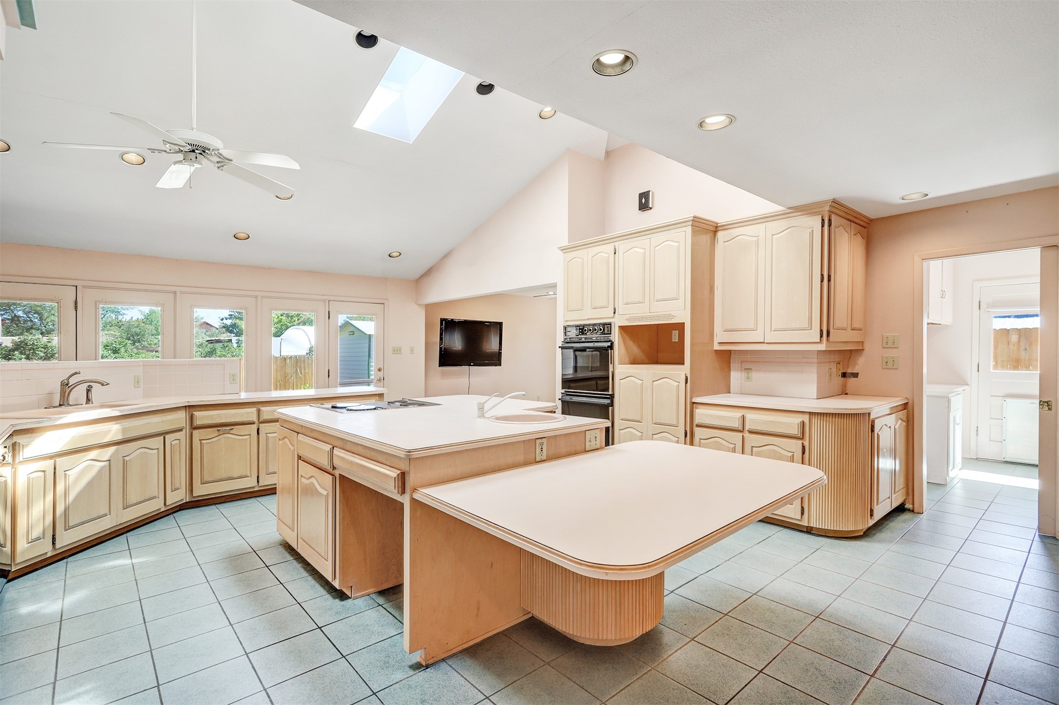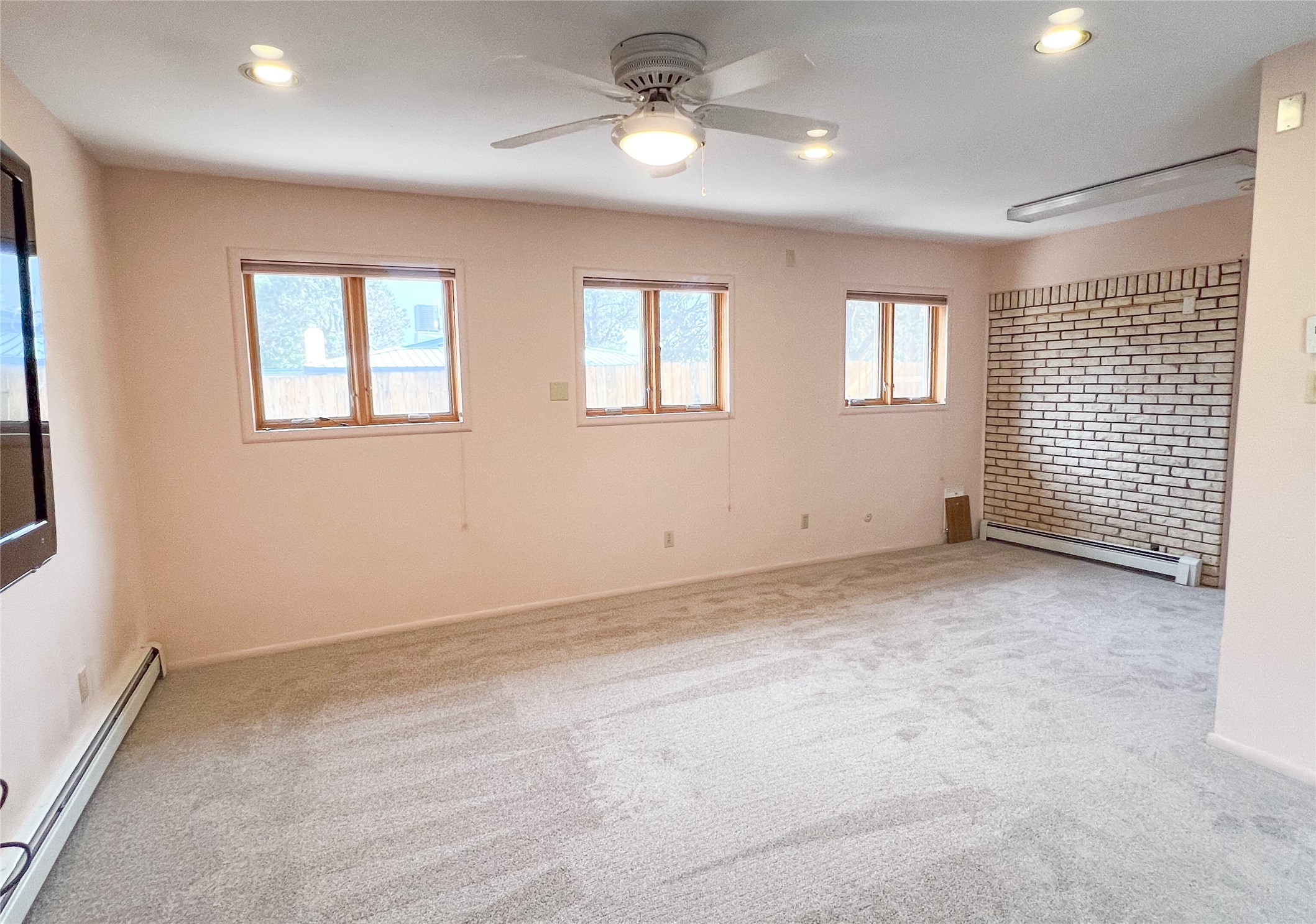 This inviting single-family offers open living space designed for comfort and functionality. The living room showcases soaring cathedral ceilings and radiant heated tile floors, creating a warm and welcoming atmosphere. At the heart of the home, the expansive kitchen features abundant storage and a central location, seamlessly connecting to the main living areas. A beautiful separate dining room provides the perfect setting for gatherings, while the cozy den/bonus room with brand-new carpet offers a more relaxed retreat. The primary suite includes an ensuite bathroom and a generous walk-in closet with built-in organizers. Two additional bedrooms and a second bathroom provide plenty of space for family or guests. The two-car garage is currently configured as a one-car garage plus a versatile rec room, with the option to convert back to a full two-car setup. Outdoors, enjoy RV parking with electrical hookup, a private backyard, and a quality Morgan shed for extra storage. This home blends thoughtful design with flexibility, offering space to live, entertain, and grow.