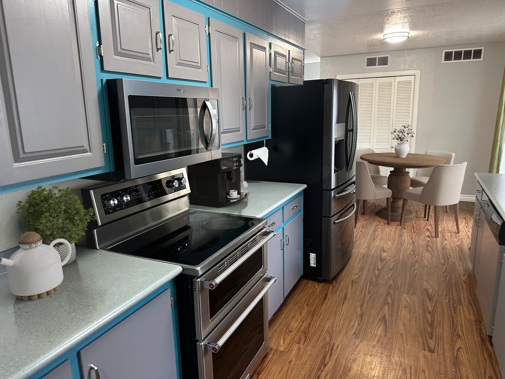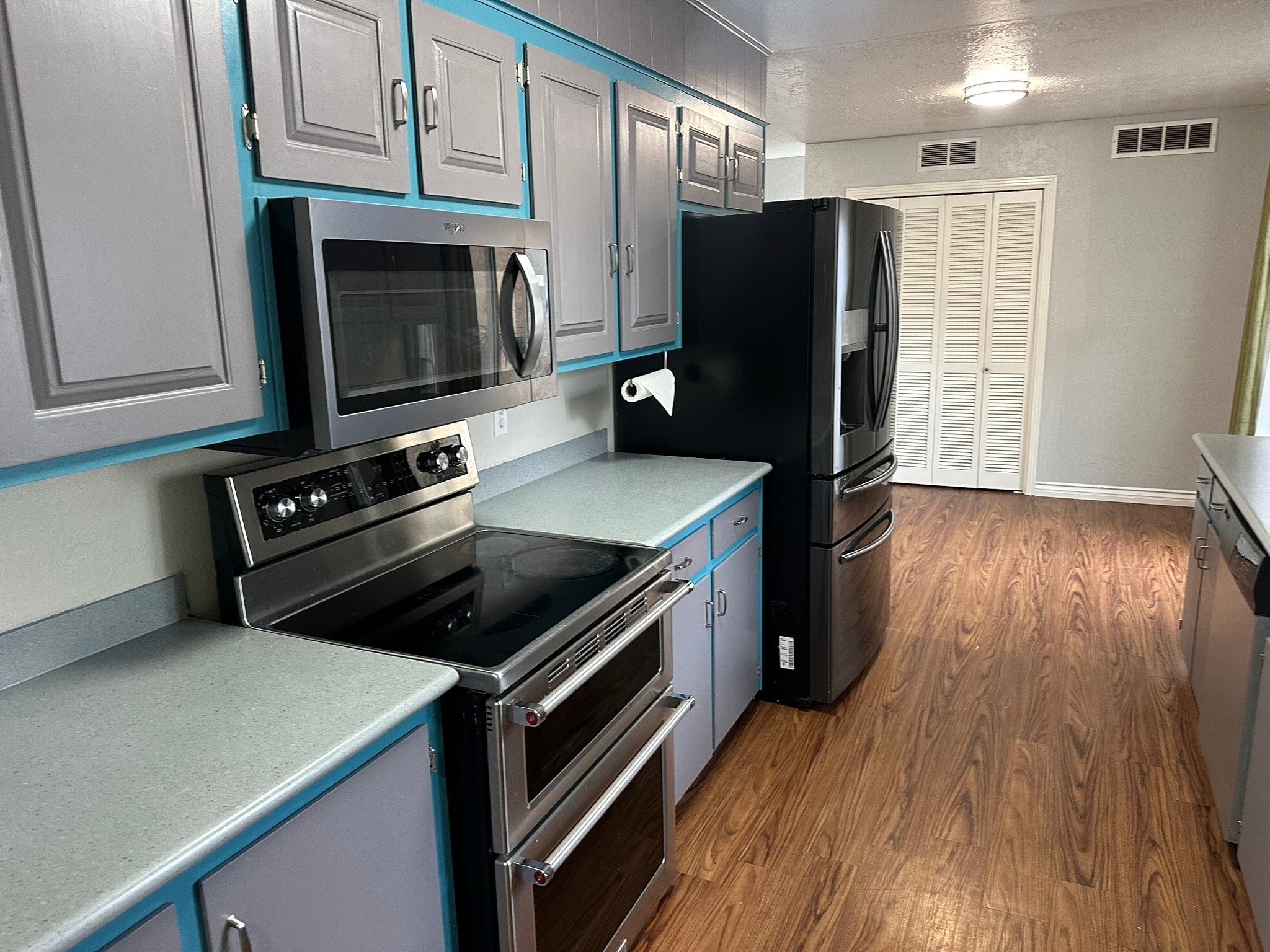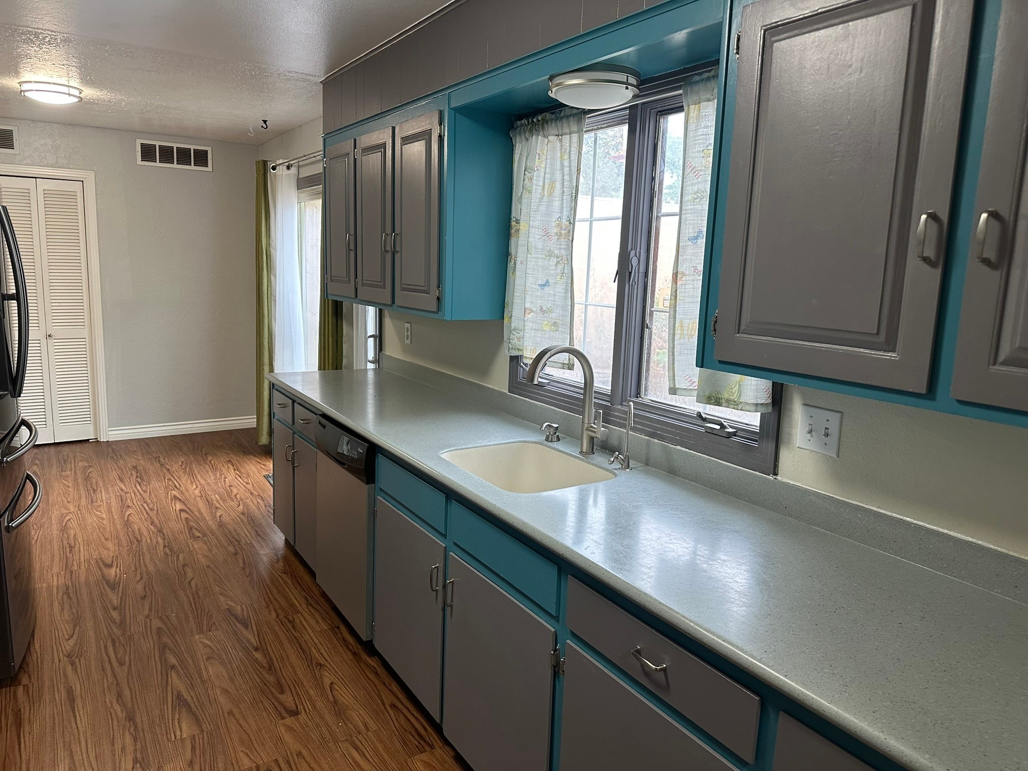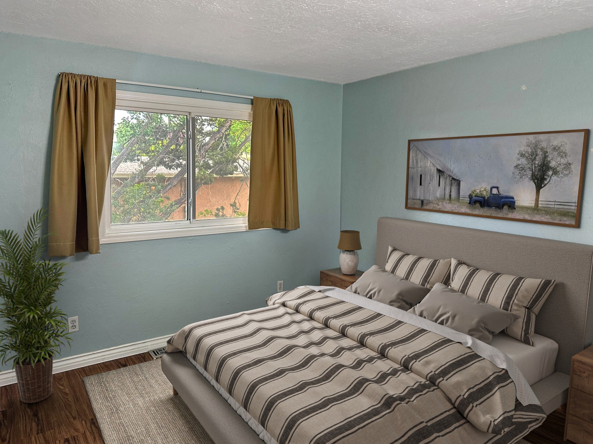 Welcome to this exceptional family home--where charm, comfort, and functionality come together to create the perfect place to grow and make memories. From the moment you arrive, the curb appeal sets the tone. Lush permaculture "food forest" gardens greet you in both the front and back yards, offering beauty, sustainability, and harvests right outside your door. Inside, the thoughtful layout provides space for every stage of life include 5 spacious bedrooms and 2 full bathrooms. A warm and inviting living room with a classic kiva fireplace is ideal for movie nights, gatherings, or simply curling up with a book. The formal dining room, perfect for everyday meals or special celebrations. A versatile flex room, perfect as an office, playroom, or library. The bright, functional kitchen features stainless steel appliances. Details that make a difference include built-in features, newer windows, and fresh carpet in select areas that add warmth and character throughout. Step outside and the home continues to impress. The fully fenced yard with irrigation offers plenty of room for pets, play, and thriving gardens. A watertight shed provides storage for tools and toys, while the two-car garage comes equipped with a sink and shelving for added convenience. This isn't just a house--it's a place where laughter fills the rooms, gardens flourish, and lasting memories are made.