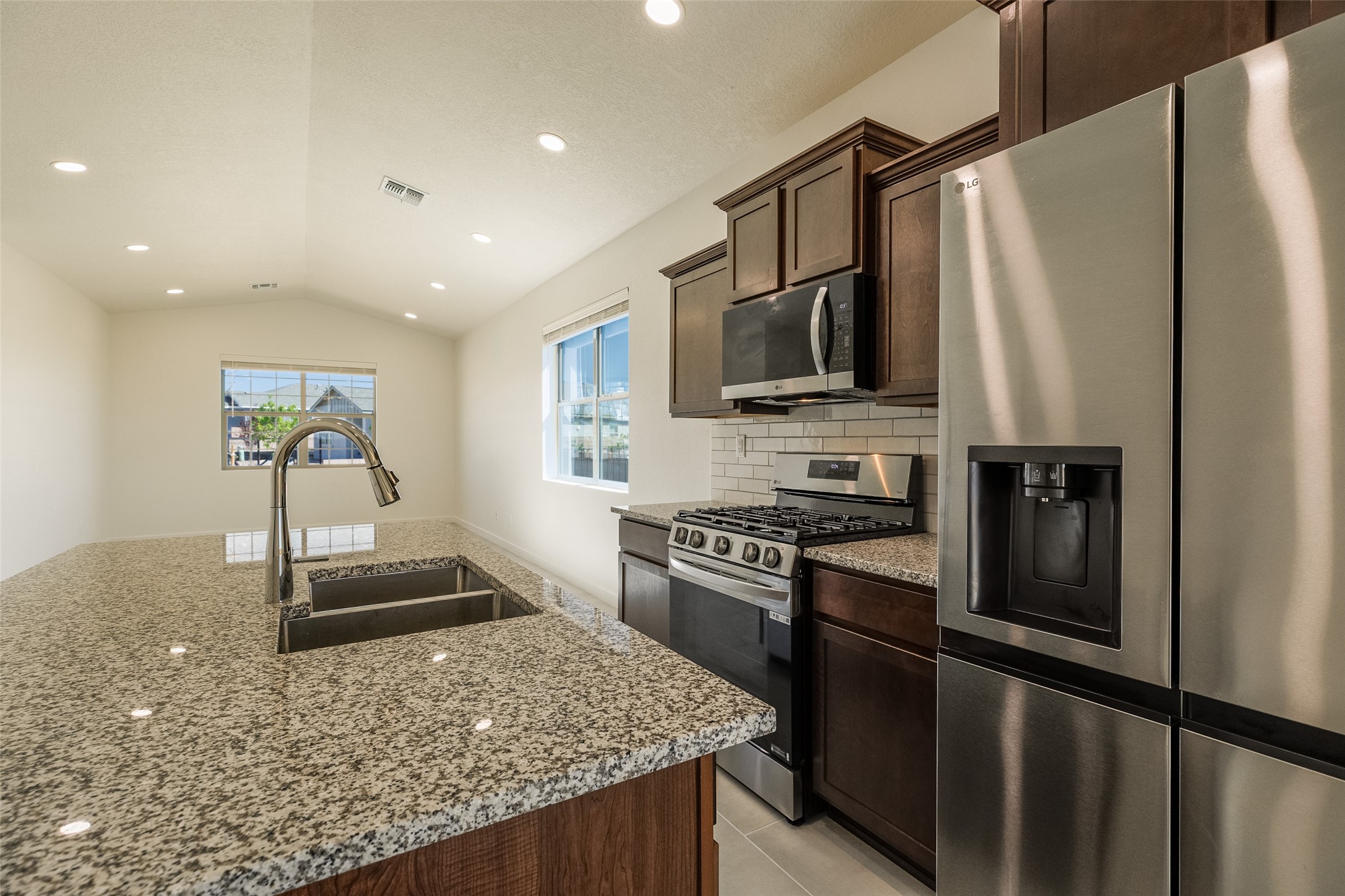 Recently completed new home ready for move in. This home is so well designed you would never guess it's 1317 sf. Vaulted ceiling i the living room, dining room and kitchen gives the home a very spacious feel. Bedrooms are nice sized and sliders off the kitchen open to a lovely covered patio. Features in this home include granite countertops in the kitchen and baths with a 4" granite backsplash, Energy efficient appliances include a stainless steel range, dishwasher, microwave and side by side, stainless steel refrigerator. 2" blinds throughout. Energy efficient features include Silver level of efficiency. Low E dual paned windows, 95% efficient gas furnace and much more. See agent remarks for incentives.