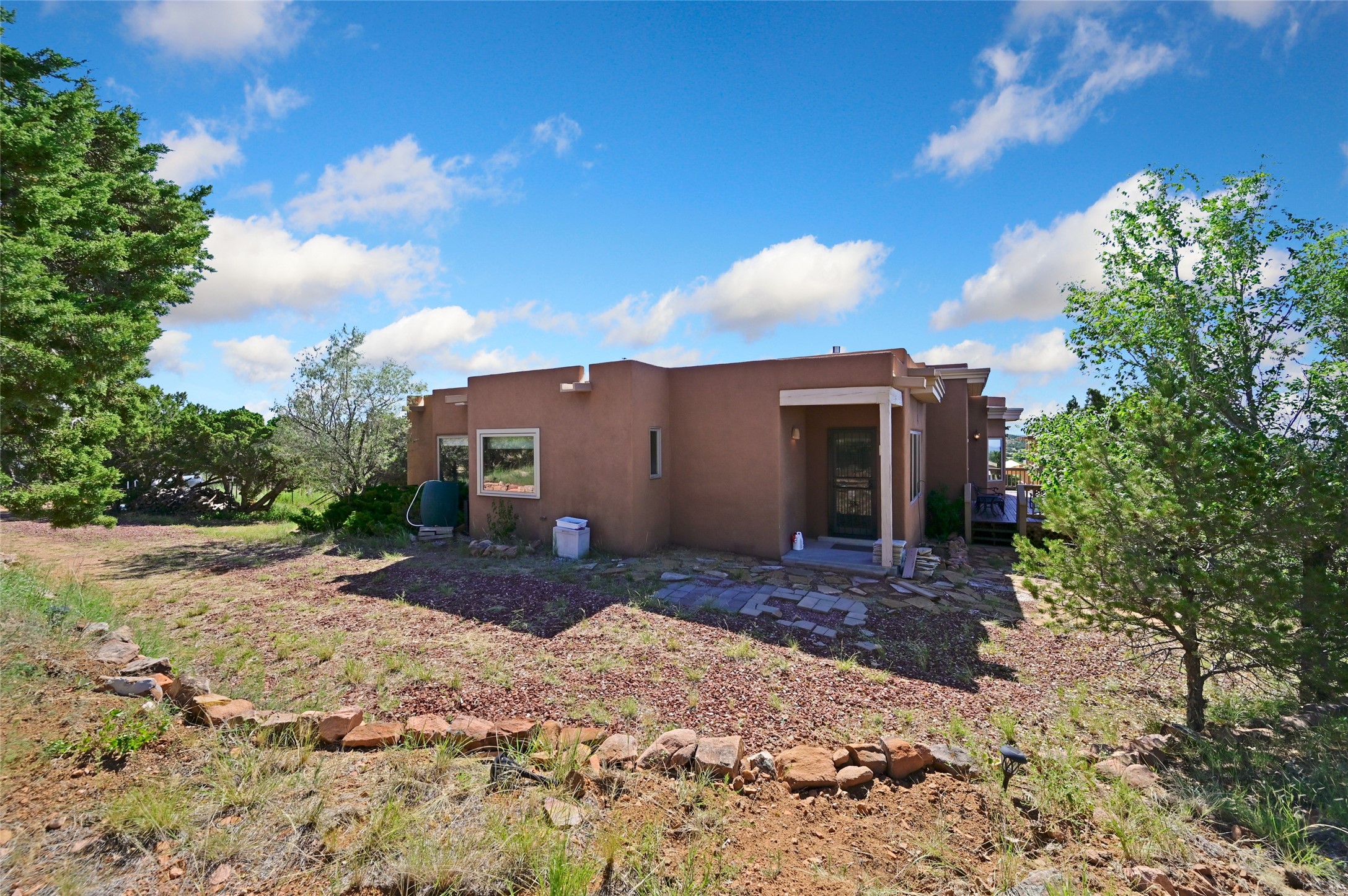 Don't miss this exceptional and unique property!Nestled in the tranquil Dos Griegos community, this exceptional property, "Jewel on the Hill," offers a unique blend of privacy and comfort. Set on 3.34 acres, the home is thoughtfully designed with a separated floor plan that includes two primary suites, two additional bedrooms, and a dedicated office space. One of the primary suites offers the convenience of direct entry from both the exterior and the main living area, providing flexible access and an added layer of privacy.The interior flows out to multiple decks, creating an ideal setting for enjoying the glorious views. A standout feature is the attached atrium studio, providing a perfect space for creative pursuits or relaxation. Additional features include a TPO roof with a transferable warranty and the benefit of no HOA fees. This property offers a truly special living experience in a wonderful location.