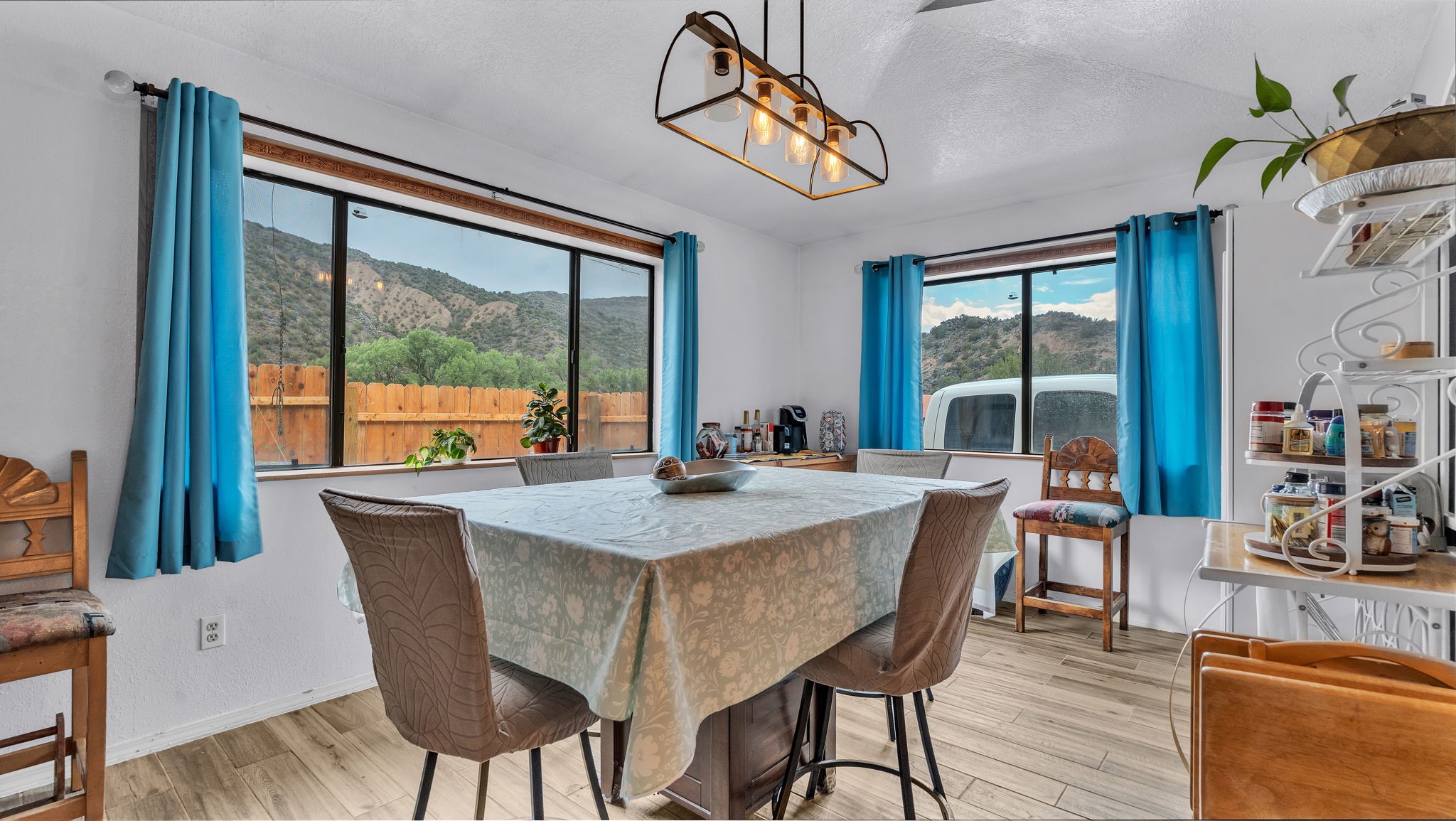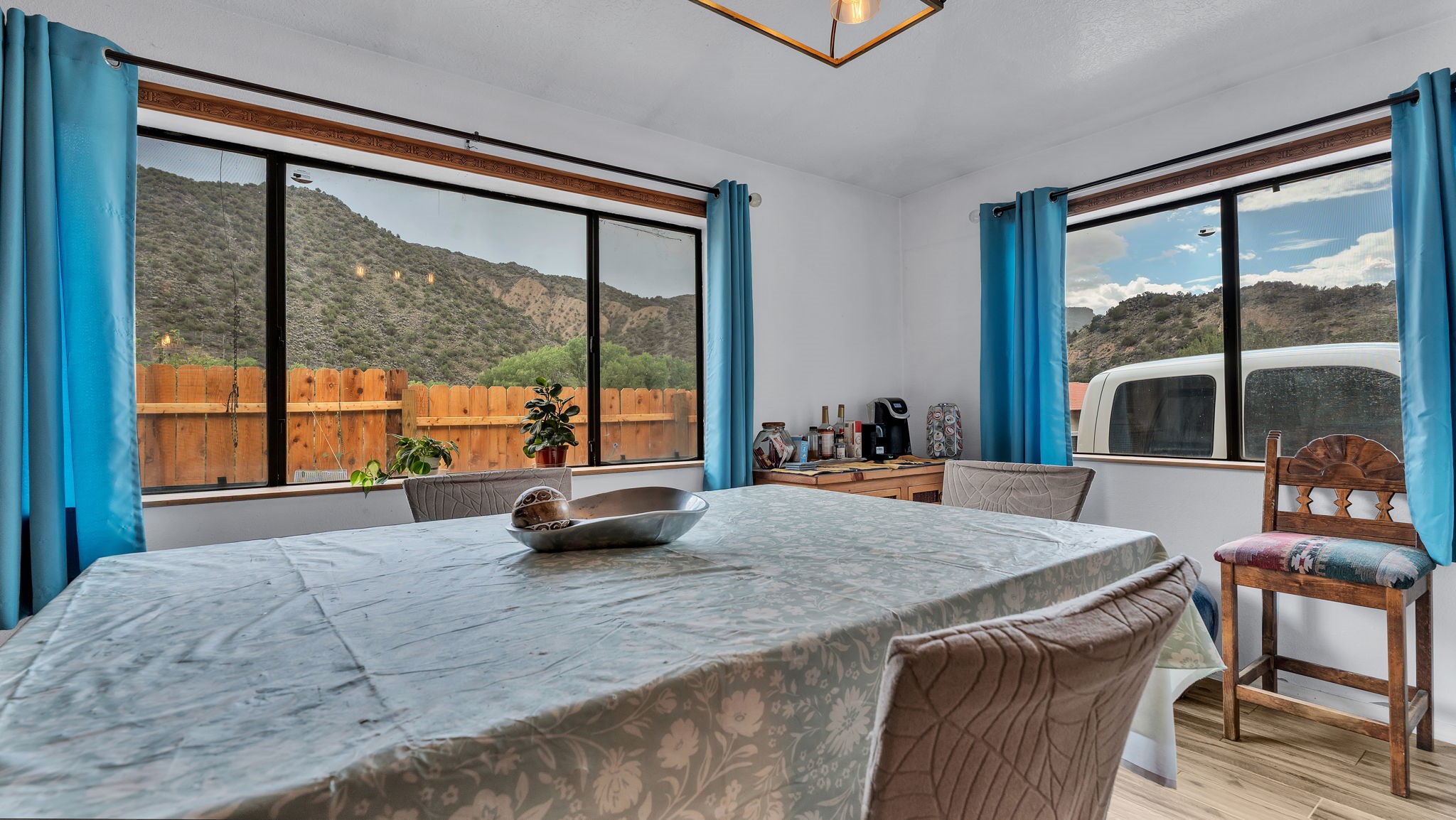 Perched on a hillside overlooking the Rio Grande, this 4-bedroom, 2-bath home offers stunning views on a 1-acre lot. The open-concept layout features spacious living areas, softwood and tile floors, and a pellet stove for cozy warmth. Accessed by a dirt road (SUV recommended), this private retreat is just a short drive to Taos and Espaola for shopping and dining, as well as close to the historic village of Dixon, the Rio Grande Gorge, and scenic High Road to Taos.