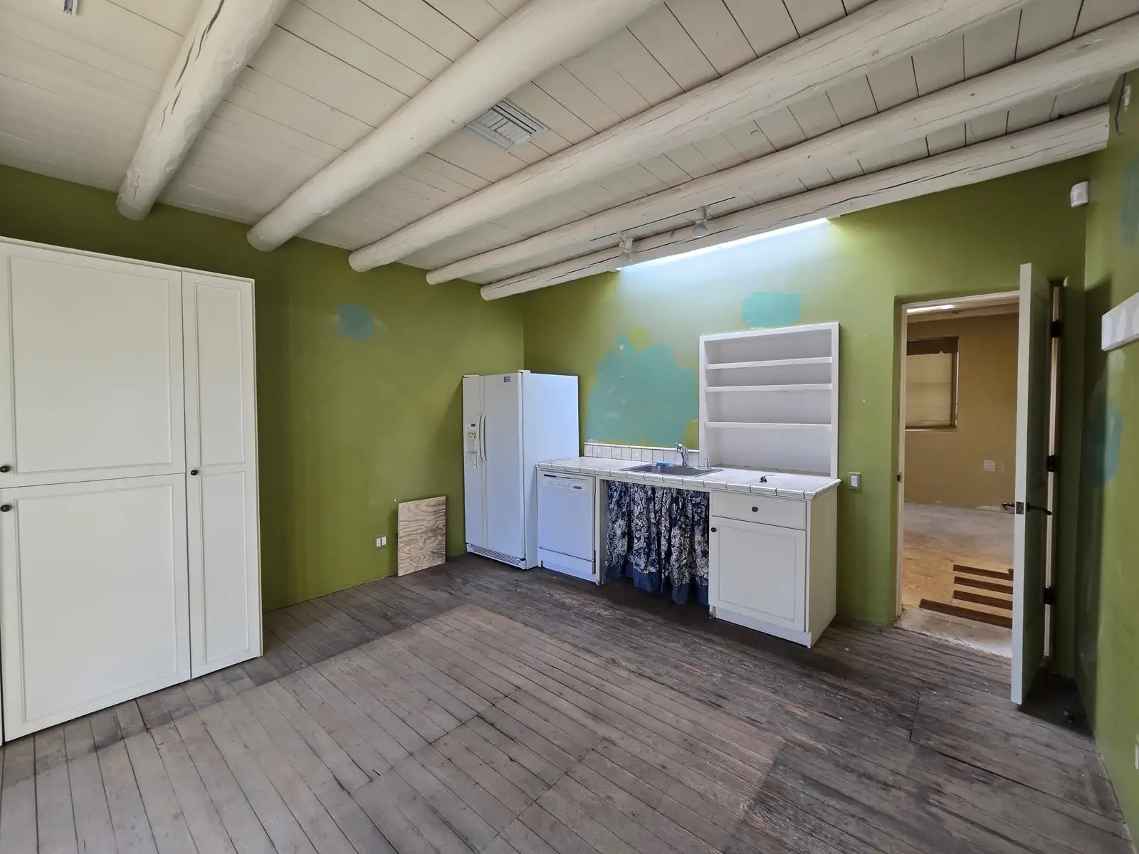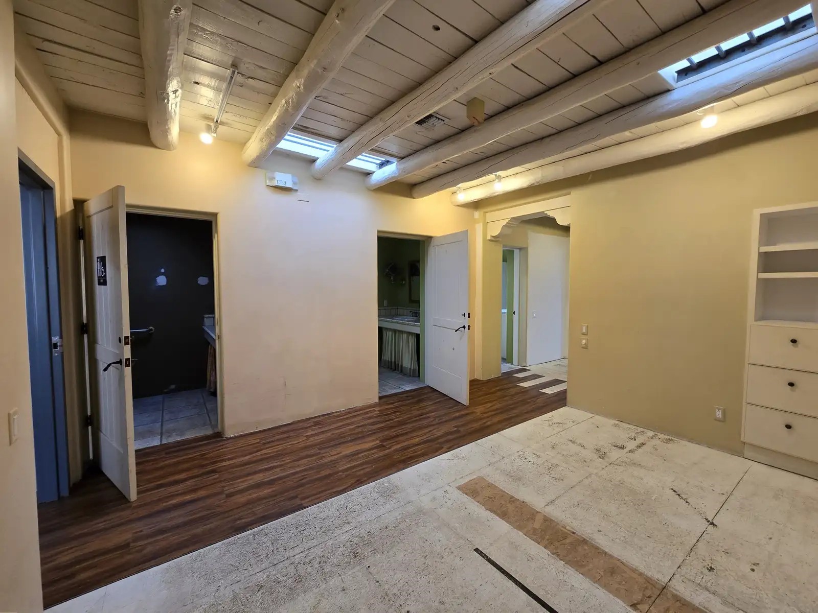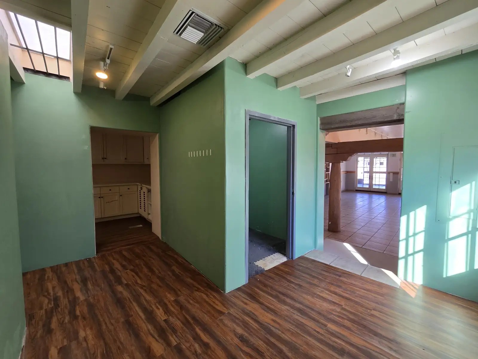 Located at 150 N St Francis Dr #A, this spacious 1,900-square-foot commercial property offers high visibility and high traffic in a prime location near downtown Santa Fe. Zoned C-4, it features a large, open-concept room, bathroom, and ample storage, providing a versatile layout for a range of business types. The property boasts charming Saltillo tile, tile, and laminate flooring throughout, adding character to the space. With a convenient parking lot and easy access to major roads, this property offers the perfect combination of function, style, and accessibility for your business needs.