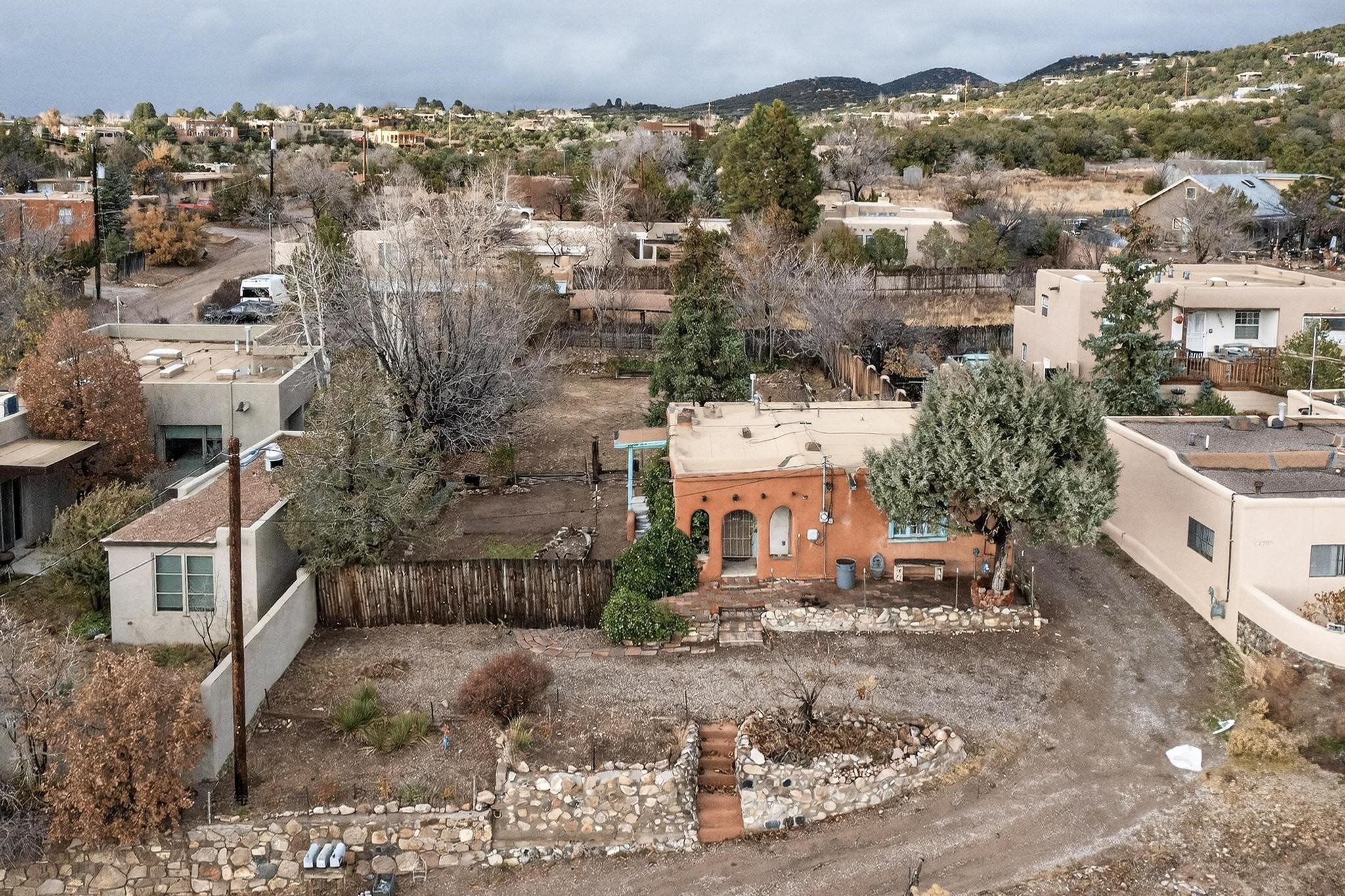 This Historic Adobe estate has prime land and development opportunity near downtown Santa Fe. This exclusive offering is a 1931 Adobe structure featuring a one bedroom one bathroom configuration. The elevated positioning affords expansive unparalleled views of the surrounding landscape. Preliminary assessment indicates the acreage is sufficient to accommodate the development of a second residence within the parcel, offering an exceptional investment for expansion opportunity, subject to zoning confirmation. Notably, there is a separate rear entrance to the backside of the property on N. Armijo Lane. The estate is defined by its maturity and natural beauty, featuring abundant native trees, notably including two striking black walnut trees along with some other fruit baring trees. The property maintains a remarkable balance of secluded natural tranquility while remaining approximately 5 minutes from the cultural and culinary center of downtown Santa Fe. This is a rare market entry for a developer, investor, or homeowner seeking a distinct blend of historic architecture, and close proximity to the city and acreage for future expansion. Don't miss this opportunity!