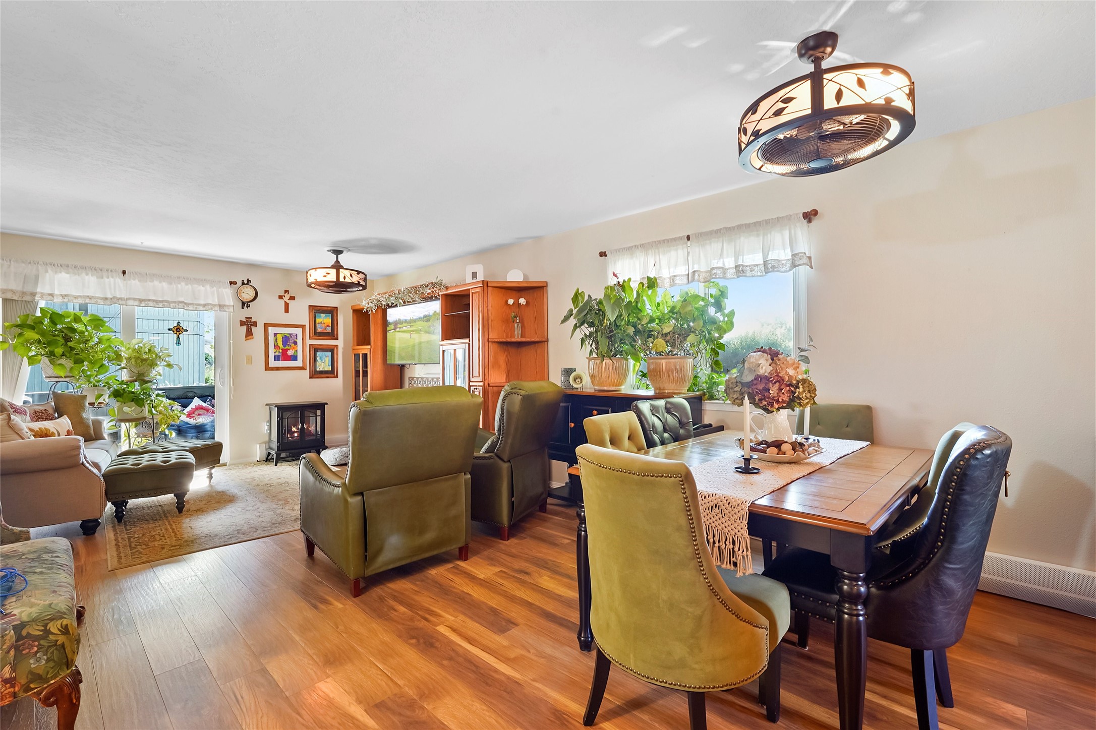This 2-bedroom, 1.75-bathroom end-unit condo spans 1,056 square feet and is filled with thoughtful touches. The kitchen stands out with dramatic granite countertops paired with freshly painted cabinetry and stainless steel appliances, creating a sophisticated and welcoming design.Comfort extends throughout the living spaces with updated light fixtures in the main areas, bedrooms, and kitchen, all equipped with ceiling fans and remote controls. Updated tile in the bathrooms and kitchen, newer full-size washer and dryer, and a boiler replaced in 2021 complete the series of improvements found throughout the home. The private back porch with a retractable shade provides a versatile spot to unwind, while the landscaped courtyard adds character to the community setting.Set in the heart of downtown Los Alamos, this home is near Ashley Pond, the YMCA, Central Park Square, restaurants, and retail, placing you close to the best of local amenities.
