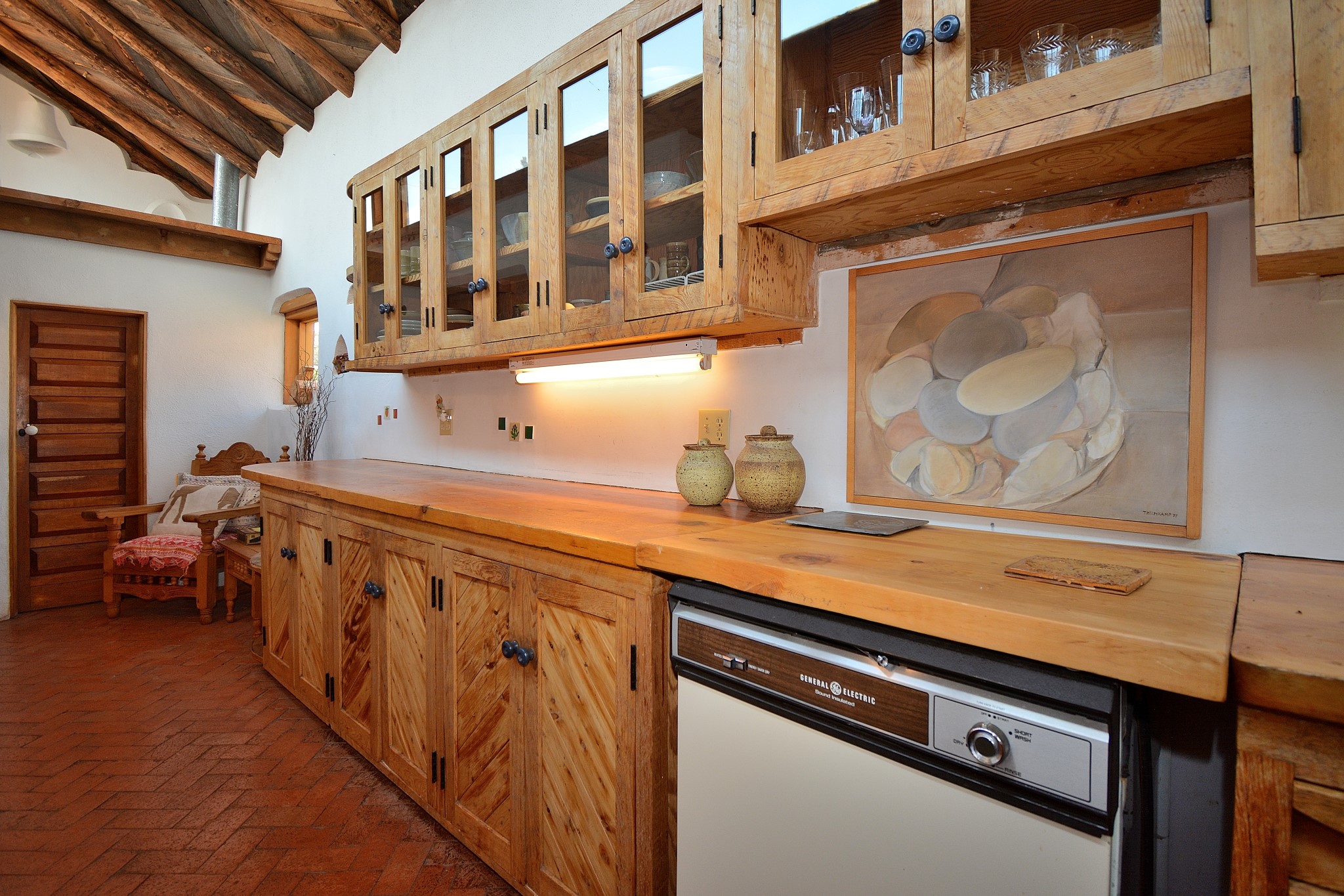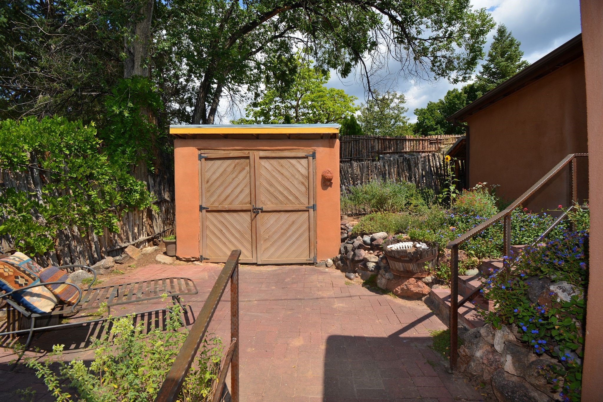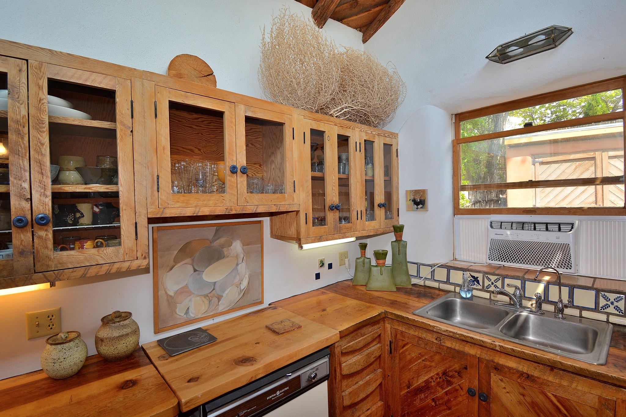 If your looking for an Ideal Santa Fe Home with historic Charm Stop and See! LOCATION LOCATION LOCATIONRecent price reduction and a new TPO roof overlay/ Brand New Skylights installed in November 2025..what's not to love! This home is located in the coveted Historic Eastside. This home is Quintessential Santa Fe Charm! Partial Adobe construction, Wood Frame, wood ceilings, vigas, 2 wood burning Kiva Fireplaces, Brick floors with radiant heat. CASITA round back with Separate entrance. Home is a 10 minute walk to Canyon Road featuring Art galleries and many of SF best Dining establishments. The home offers mature gardens front/back and a secret terrace. The main house features a kitchen with amazing sunlit tall ceilings and windows. You will appreciate the original wood cabinetry and wood countertops. Breakfast area or office space off of the kitchen. laundry area is conveniently adjoined with the 1/2 bath. Behind the main house you'll find a private courtyard and an attached Casita complete with a loft space that currently serves as a sleeping area. There is a kitchenette, and a full bathroom(Shower needs to be remodeled but is functional). Occupy the casita as an extension of your home or use as an office or artist studio. The home has undergone a pre-inspection and is priced accordingly.