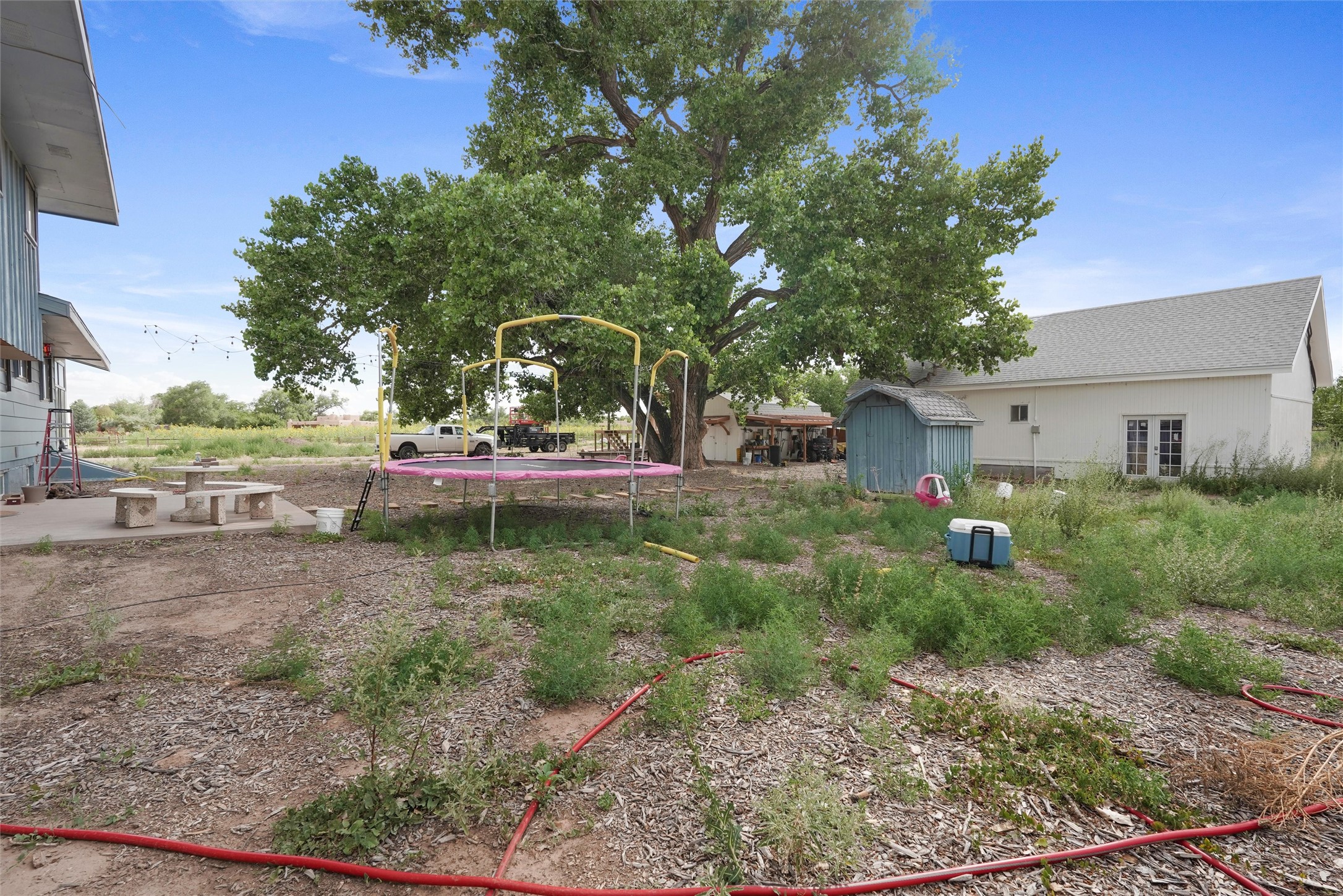 Large Two Parcel Sale! Parcel 1: Main House and Lot (3.91 Acres) Discover a unique opportunity in the heart of Corrales, with this property featuring a charming main house brimming with potential. The main level features a few updates with ample room for personalization, allowing you to create your dream home. An unfinished upstairs awaits your creative vision, perfect for customizing to your taste. The 722-square-foot finished basement provides additional living space, ideal for a home theater, office, or recreation area. Outside, a one-of-a-kind, three-level tree house--potentially the tallest and most spectacular in Corrales--adds a whimsical touch for family fun or unique entertaining. The north side of the lot boasts an orchard with over 300 fruit trees, including Large Two Parcel Sale! Parcel 1: Main House and Lot (3.91 Acres) Discover a unique opportunity in the heart of Corrales, with this property featuring a charming main house brimming with potential. The main level features a few updates with ample room for personalization, allowing you to create your dream home. An unfinished upstairs awaits your creative vision, perfect for customizing to your taste. The 722-square-foot finished basement provides additional living space, ideal for a home theater, office, or recreation area. Outside, a one-of-a-kind, three-level tree house--potentially the tallest and most spectacular in Corrales--adds a whimsical touch for family fun or unique entertaining. The north side of the lot boasts an orchard with over 300 fruit trees, includingApple, Peach, Pear, and Apricot, offering a bountiful harvest and serene rural charm. Guest House: A move-in-ready, 1,033-square-foot guest house with 2 bedrooms, fully equipped kitchen, and a full bathroom, perfect for visitors, extended family, or rental income. Parcel 2: Agricultural Field (3.7136 Acres) Adjacent to the main property, this expansive agricultural field is a rare gem in Corrales.