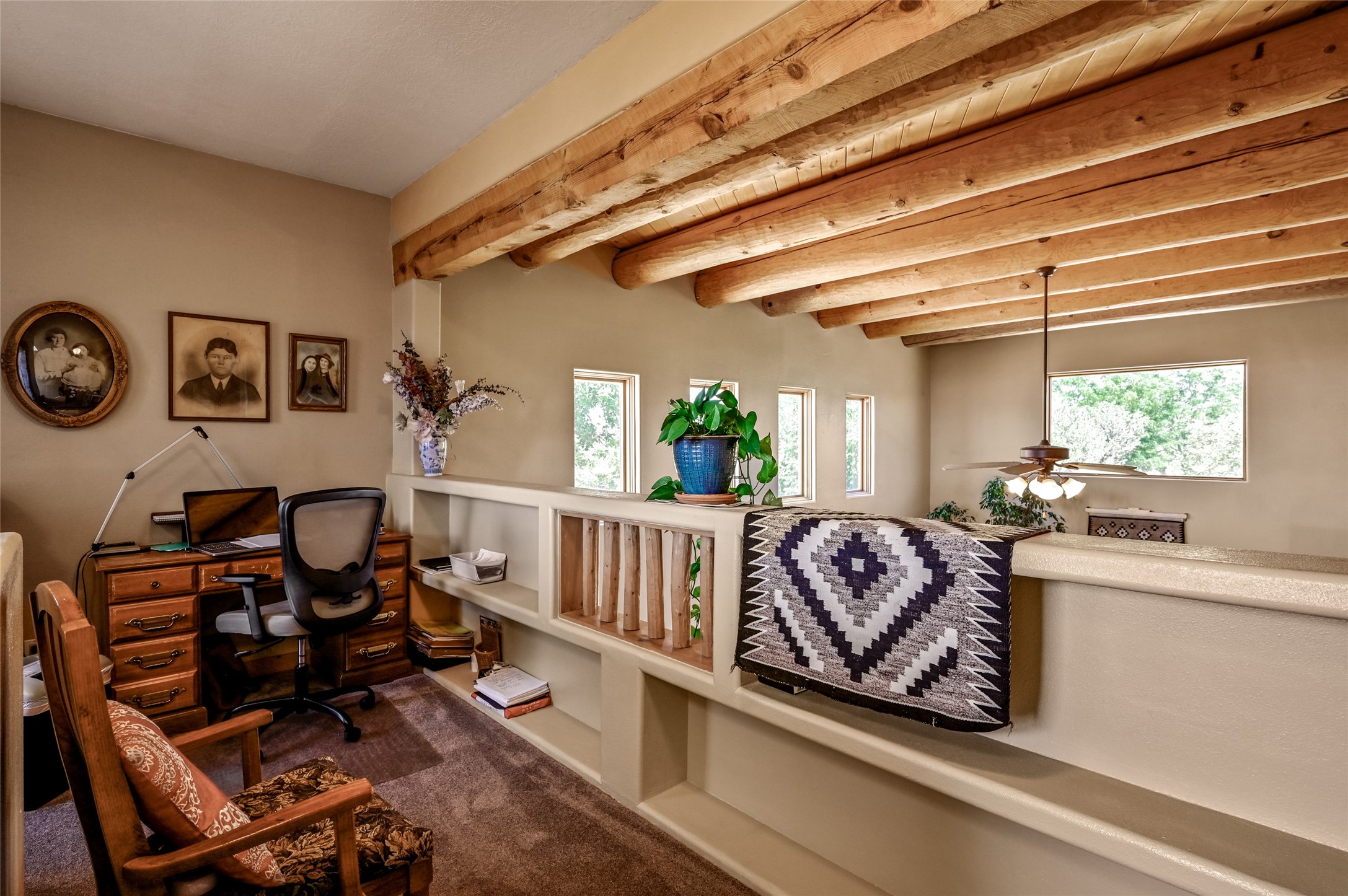 Welcome to this one-owner home in the sought-after Pueblos del Sol community. This custom two-story home offers 3 bedrooms and 2 full bathrooms, a thoughtful layout, and ample natural light throughout. The house has been lovingly maintained over the years, featuring newer kitchen appliances, Pella windows, and an updated roof. Front and back landscaped yards offer a quiet retreat and space to unwind. Two separate decks provide stunning views of the Sangre de Cristo, Sandia, and Ortiz mountain ranges--perfect for enjoying morning coffee or sunsets. Backing up to open space and trails, the property offers privacy and a connection to nature.