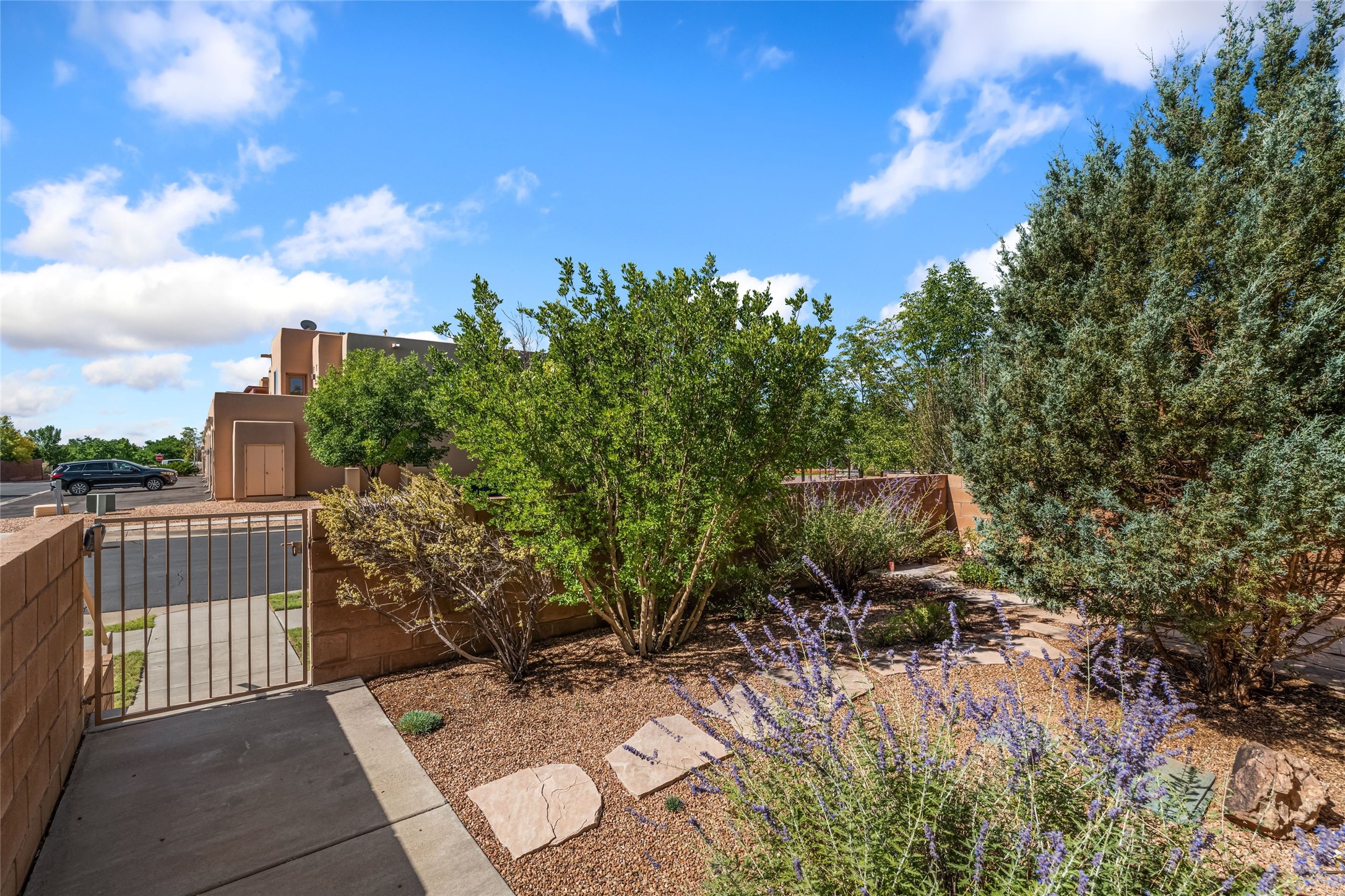 This updated end-unit townhome in Rancho Viejo offers low-maintenance living, modern upgrades, and convenient access to parks, trails, and Santa Fe amenities. With 2 bedrooms, 3 bathrooms, and 1,642 square feet of living space, the home features an open, light-filled layout ideal for comfortable living and entertaining. The living room with gas fireplace flows into a dining area and kitchen with new stainless steel appliances installed in July 2025. Upstairs, the spacious primary suite includes a balcony with northeast orientation capturing both sunrise and sunset light, along with a walk-in closet and ensuite bath. A second bedroom and full bath complete the upper level. Major systems and components have been updated, including a new HVAC system and hot water heater (2023), new balcony decking and roof (2024), and all exterior maintenance covered by the HOA. High-speed internet is available, and the attached two-car garage provides direct interior access. Enjoy outdoor space with a private deck and courtyard, plus proximity to trails, a park directly across the street, and Santa Fe Community College just 1.6 miles (about 5 minutes) away. Shopping and restaurants are 4.7 miles (about 12 minutes) away, and downtown Santa Fe is within easy reach. HOA dues also cover exterior maintenance, adding to the property's lock-and-leave appeal. Combining a prime location with significant recent improvements, this townhome offers a turnkey lifestyle in a peaceful community setting.