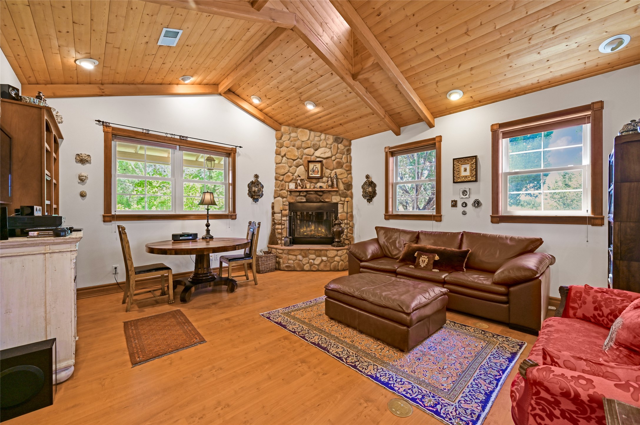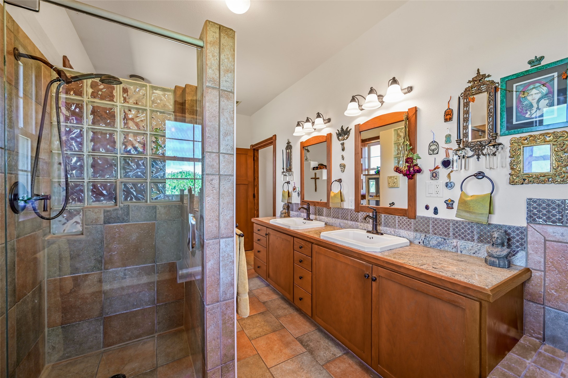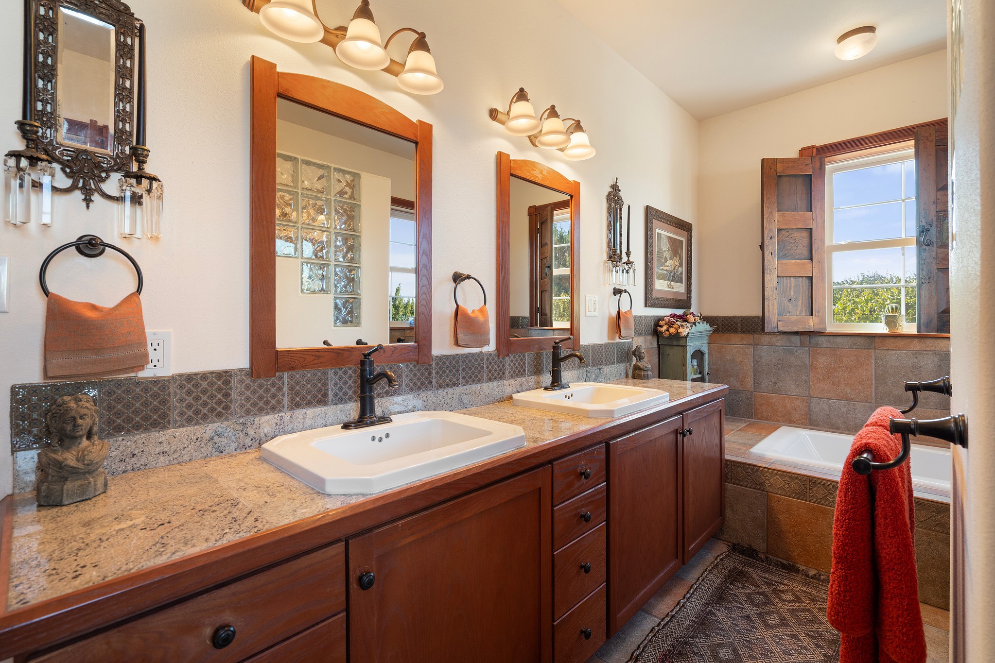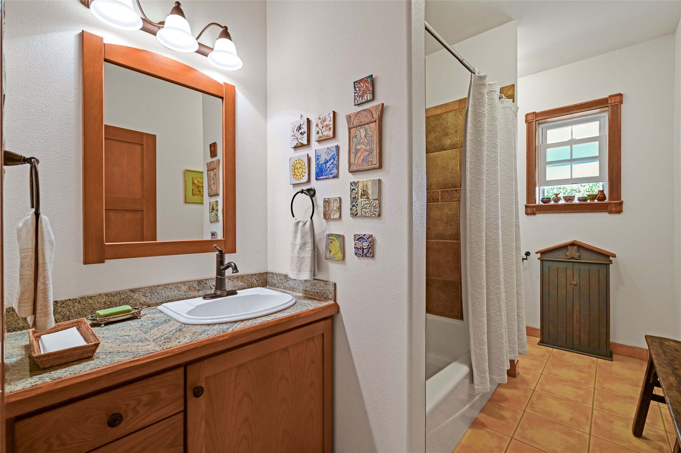 Welcome to 3 Vista Lagunitas: A classic old world style home that truly is set apart from the rest. The builder of this 3 bedroom 2.5 bath custom-crafted home originally built it for himself and it shows. From the vaulted wooden ceilings and custom-fit trim molding, to the choice solid wood doors throughout the home, you will find unparalleled quality at every corner. The northern New Mexico style exterior blends in well amongst the mature Juniper and Pinon Trees that populate the spacious and private 1.155 acre lot. You'll enjoy the best of outdoor living underneath the shady portal spaces and the established gardening locations are a joy to be had. What a fantastic opportunity to own a beautiful home in such an ideal setting. This is the dream home you've been waiting for!