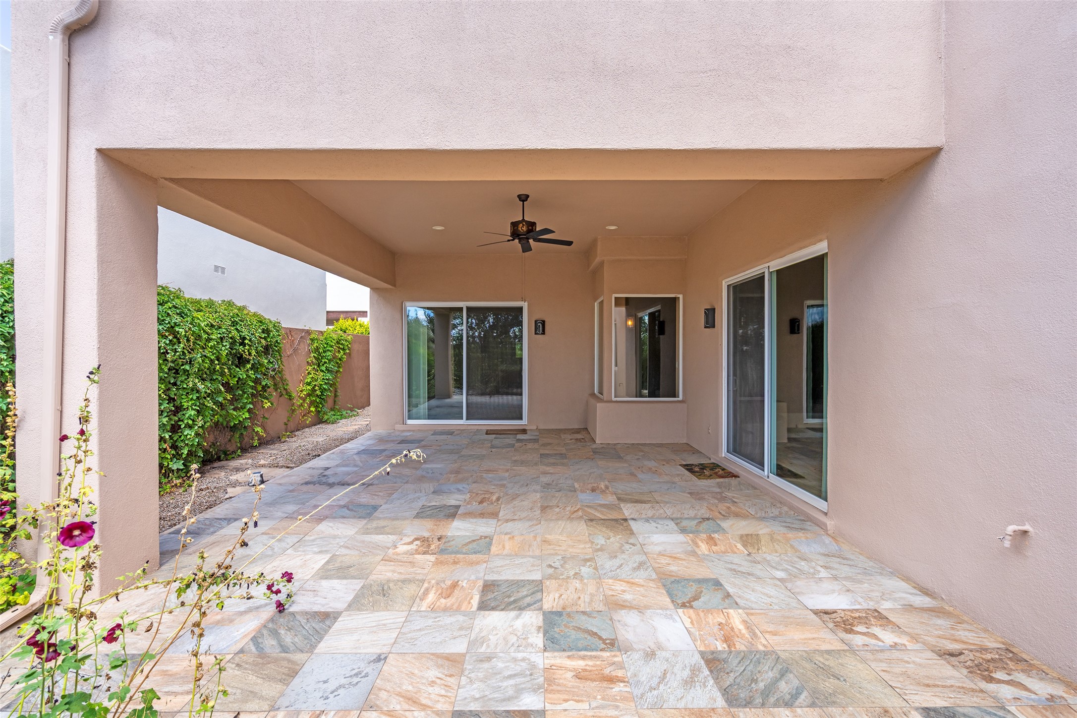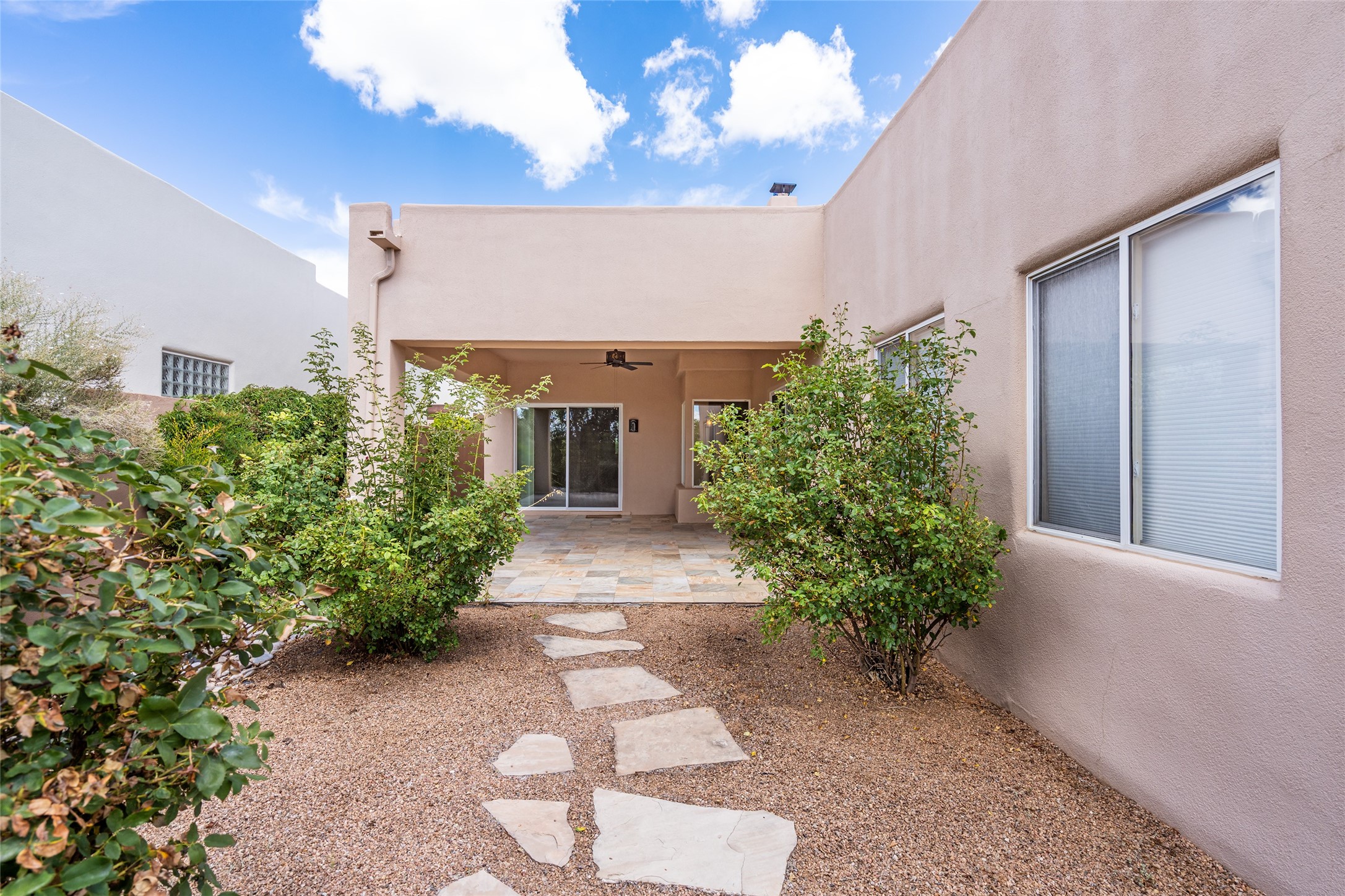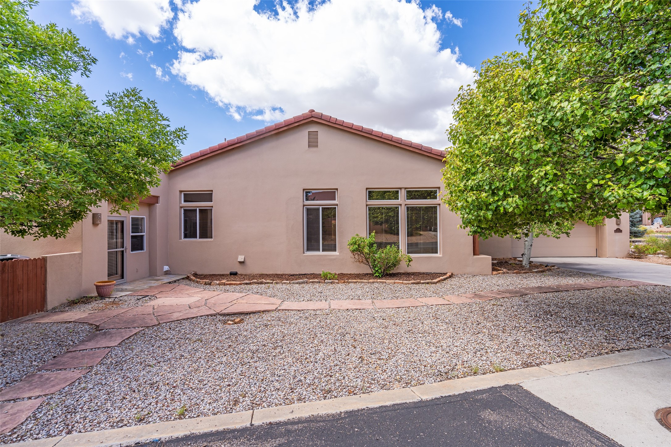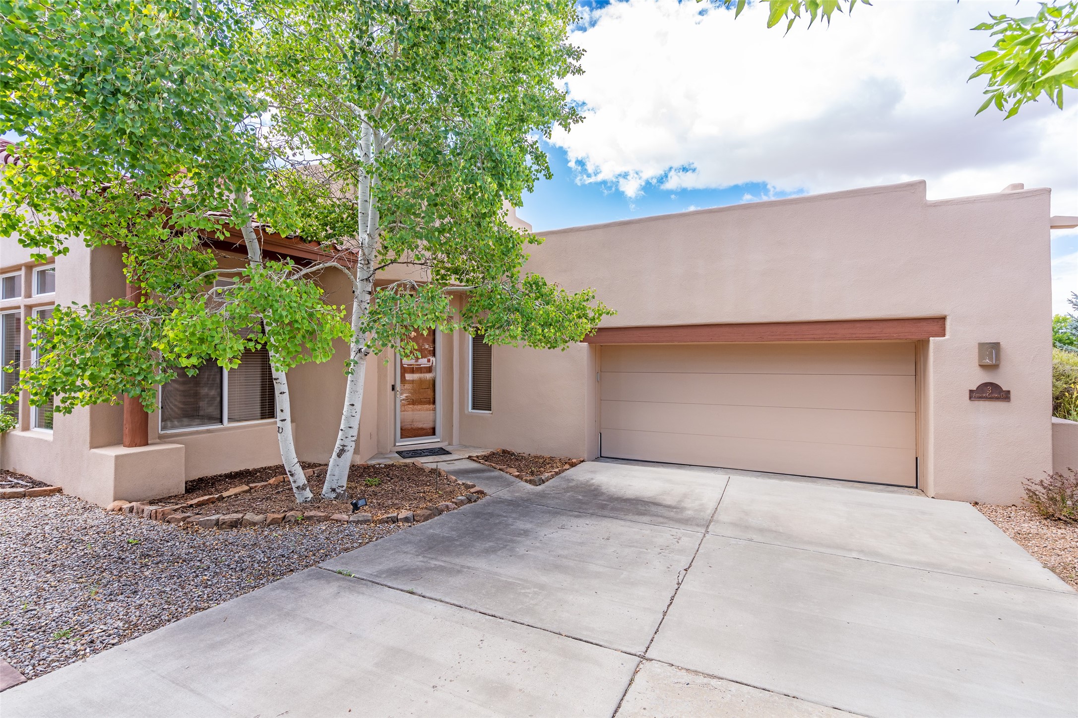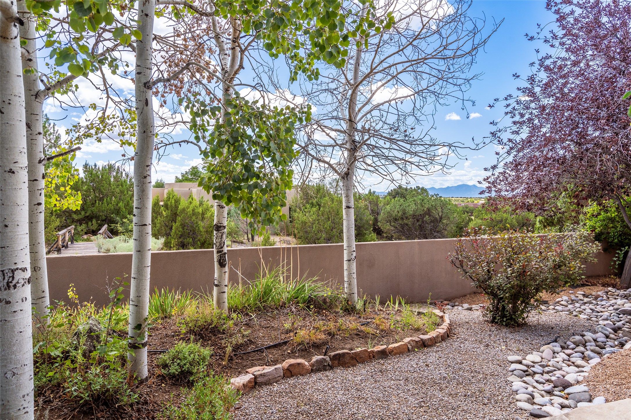Look here: a stylish and updated home on a desirable corner lot! This immaculate single-level home has been extensively updated and shows beautifully. With over $170,000 in thoughtful renovations completed just a few years ago, the home feels modern, fresh, and move-in ready. The kitchen is a true centerpiece, featuring granite countertops, a custom tile backsplash, double ovens, a five-burner gas cooktop, under-cabinet lighting, a remodeled island, and a charming window seat. Wood-look tile flooring, bedroom carpet, and a paint refresh complement the home's warm modern-rustic style, while recessed LED lighting adds everyday brightness. The spacious primary suite is a serene retreat with a spa-like bath. You will love the separation from the other bedrooms. With four additional bedrooms--including a private ensuite with its own exterior access--the floor plan offers flexibility for guests, a studio, an in-home office, exercise room, media room and more! Outdoors, enjoy a covered portal with views of the Ortiz Mountains and thoughtfully designed landscaping that bursts with seasonal color from Virginia creepers, rose bushes, and ornamental fruit trees. All this in an unbeatable location: just 12 miles from the historic Santa Fe Plaza and only minutes to shopping and dining. The Rancho Viejo HOA enhances the neighborhood with multiple parks, vast open spaces, scenic paved trails, and well-kept surroundings protected by reasonable covenants. A home that blends style, comfort, and convenience -- and one you'll be proud to call your own.