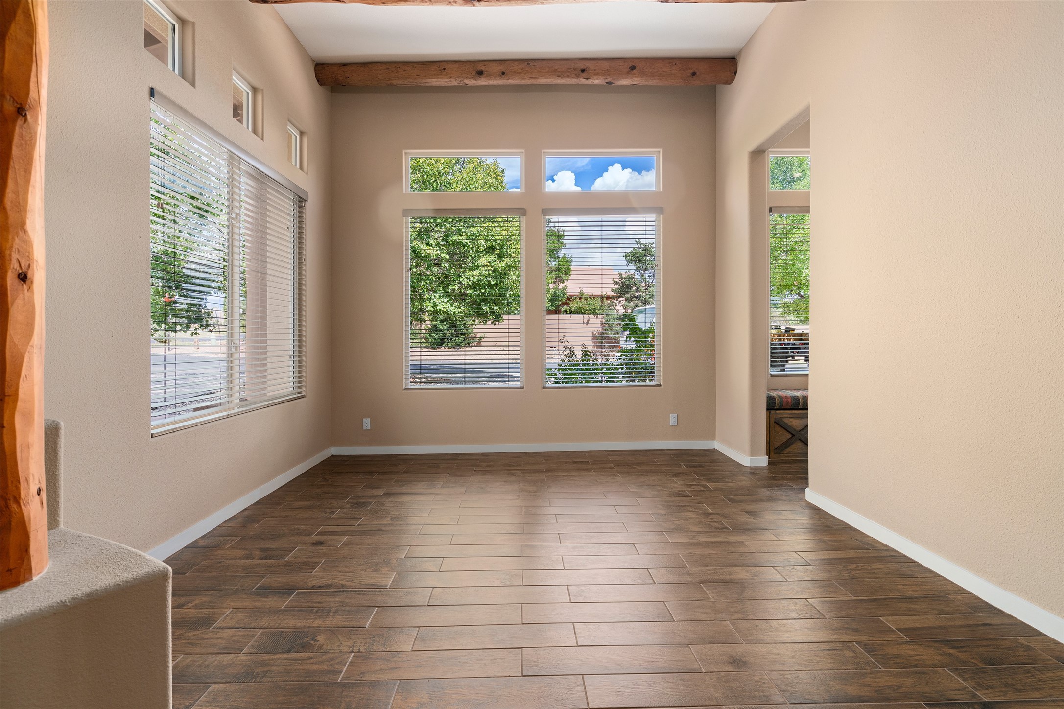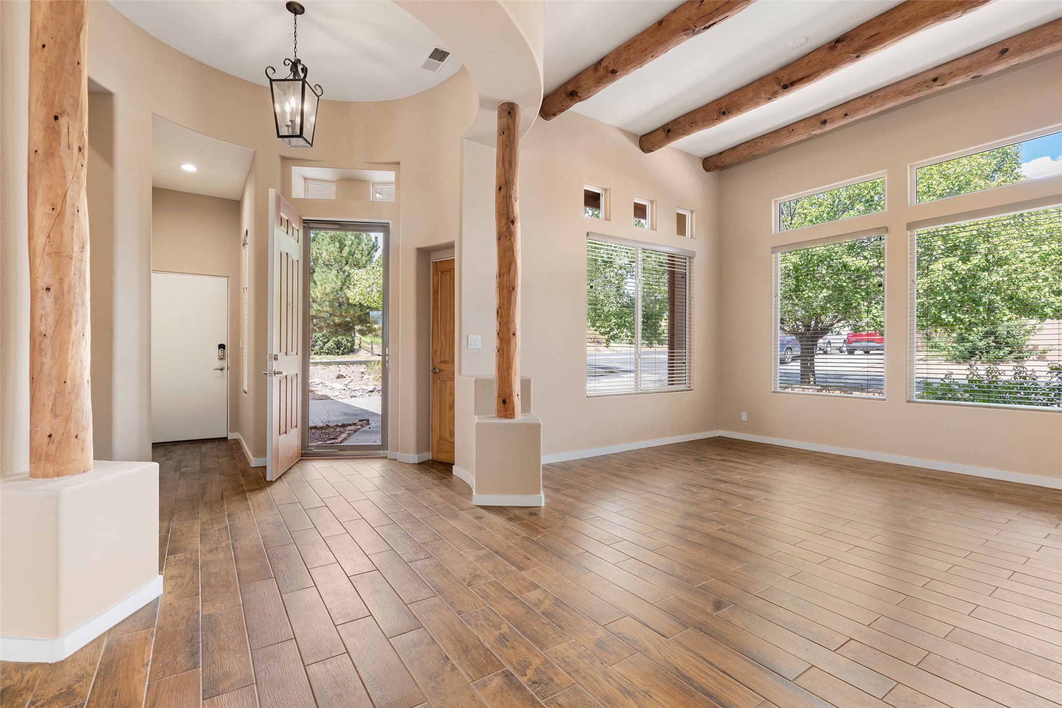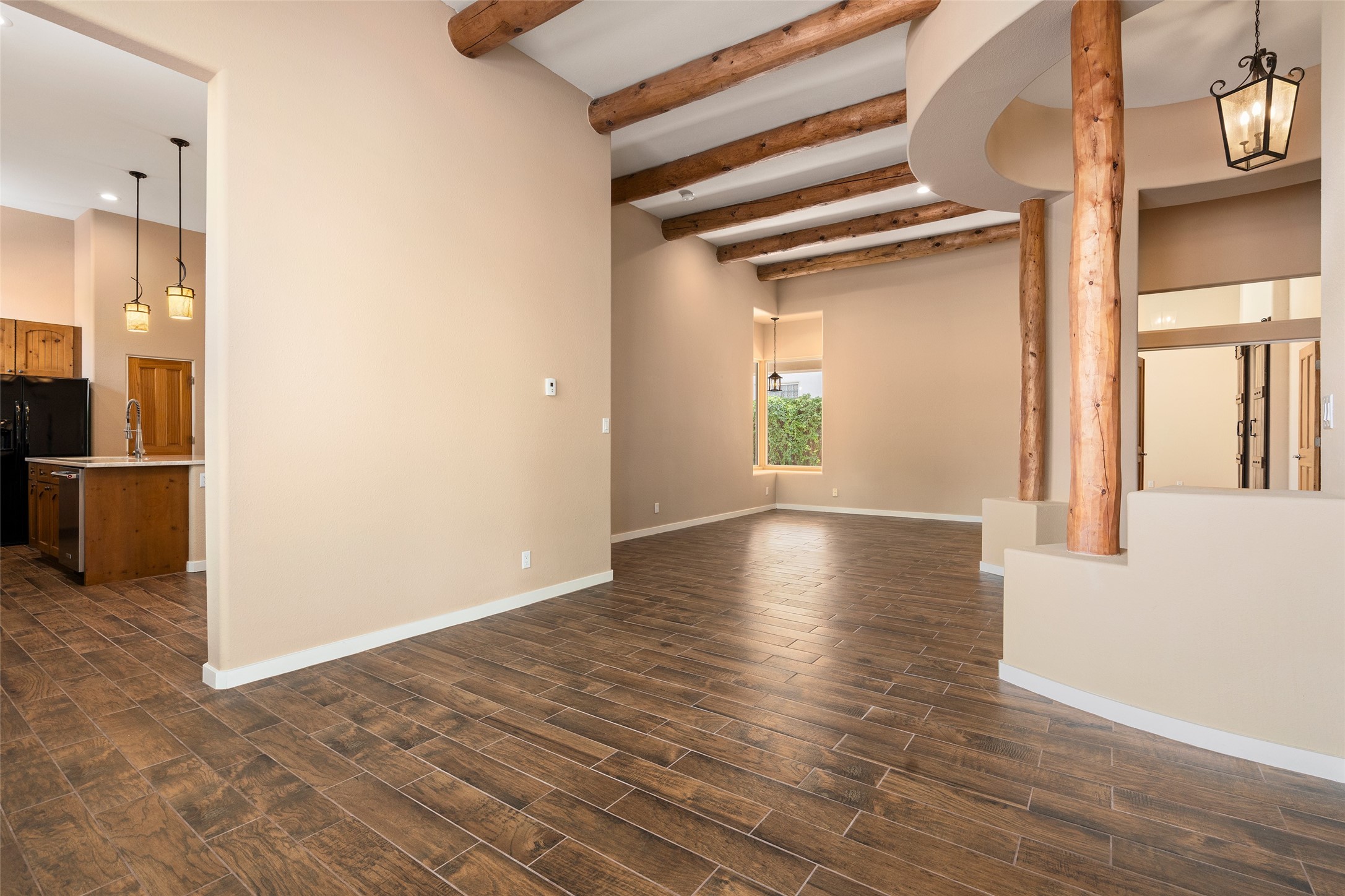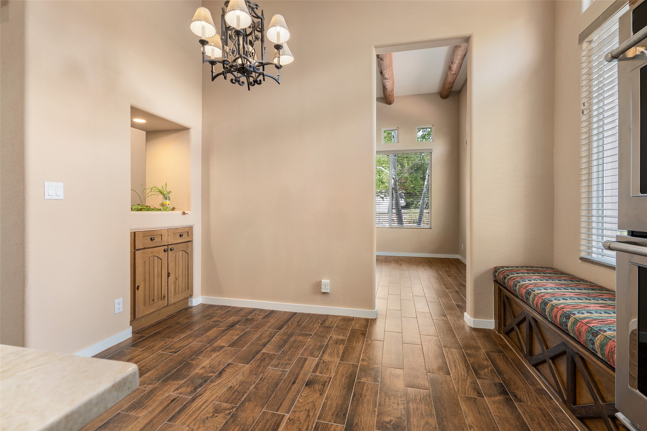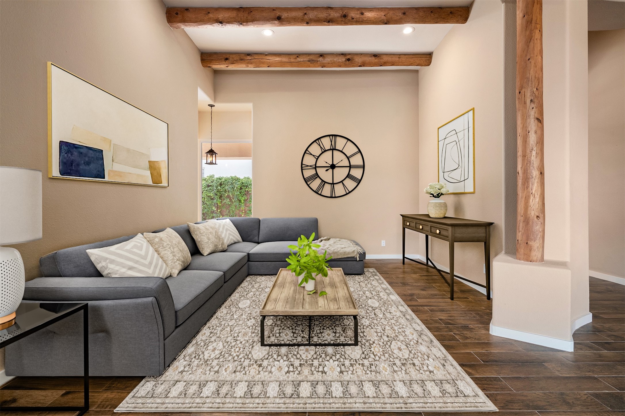 Look here: a stylish and updated home on a desirable corner lot! This immaculate single-level home has been extensively updated and shows beautifully. With over $170,000 in thoughtful renovations completed just a few years ago, the home feels modern, fresh, and move-in ready. The kitchen is a true centerpiece, featuring granite countertops, a custom tile backsplash, double ovens, a five-burner gas cooktop, under-cabinet lighting, a remodeled island, and a charming window seat. Wood-look tile flooring, bedroom carpet, and a paint refresh complement the home's warm modern-rustic style, while recessed LED lighting adds everyday brightness. The spacious primary suite is a serene retreat with a spa-like bath. You will love the separation from the other bedrooms. With four additional bedrooms--including a private ensuite with its own exterior access--the floor plan offers flexibility for guests, a studio, an in-home office, exercise room, media room and more! Outdoors, enjoy a covered portal with views of the Ortiz Mountains and thoughtfully designed landscaping that bursts with seasonal color from Virginia creepers, rose bushes, and ornamental fruit trees. All this in an unbeatable location: just 12 miles from the historic Santa Fe Plaza and only minutes to shopping and dining. The Rancho Viejo HOA enhances the neighborhood with multiple parks, vast open spaces, scenic paved trails, and well-kept surroundings protected by reasonable covenants. A home that blends style, comfort, and convenience -- and one you'll be proud to call your own.