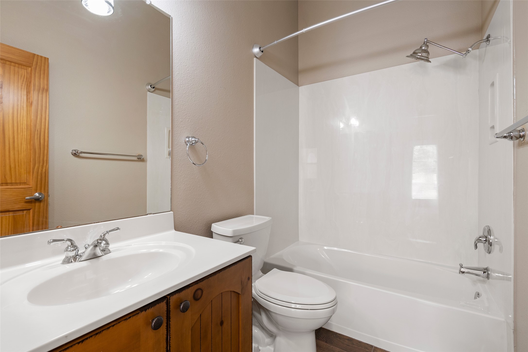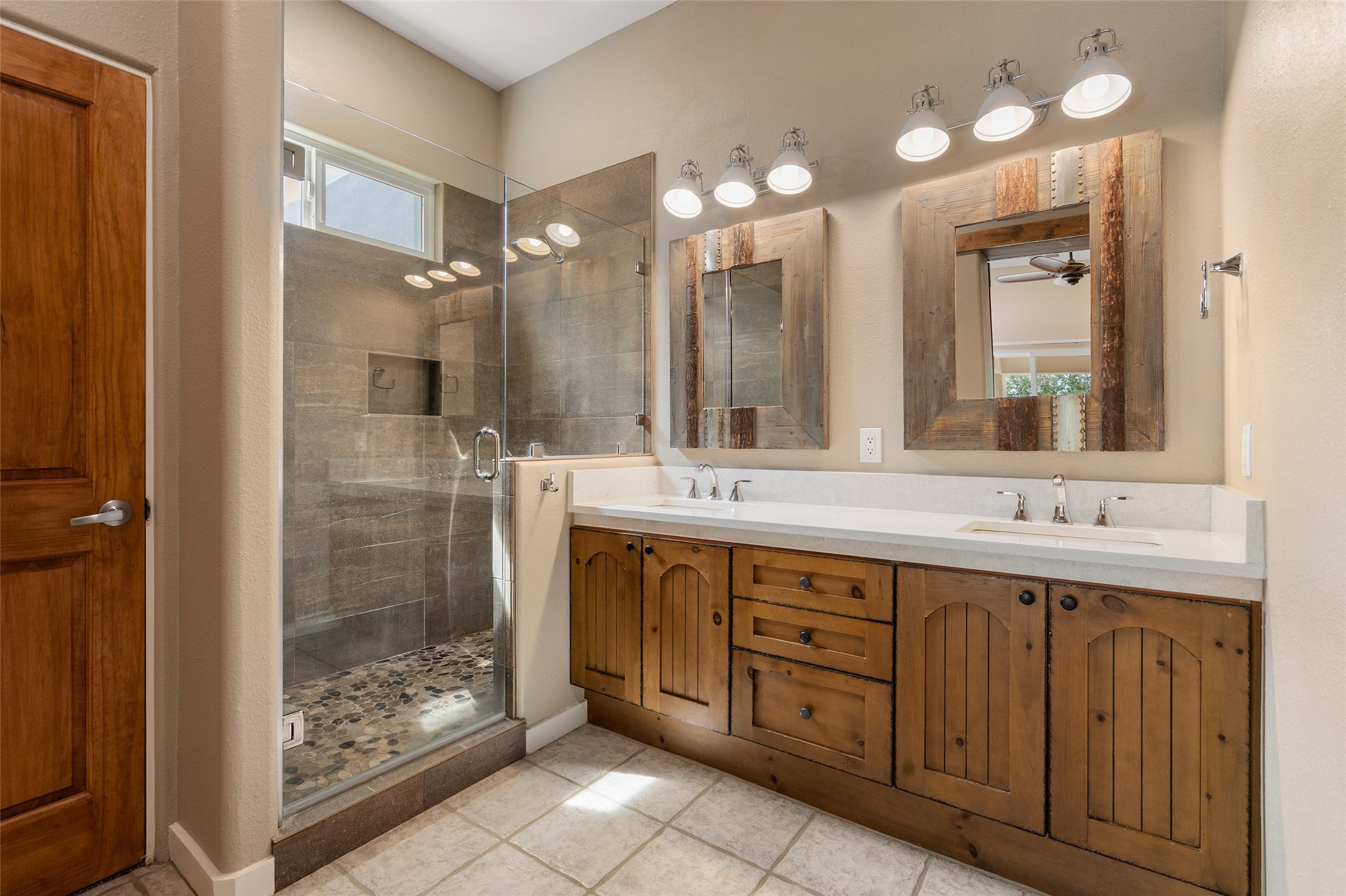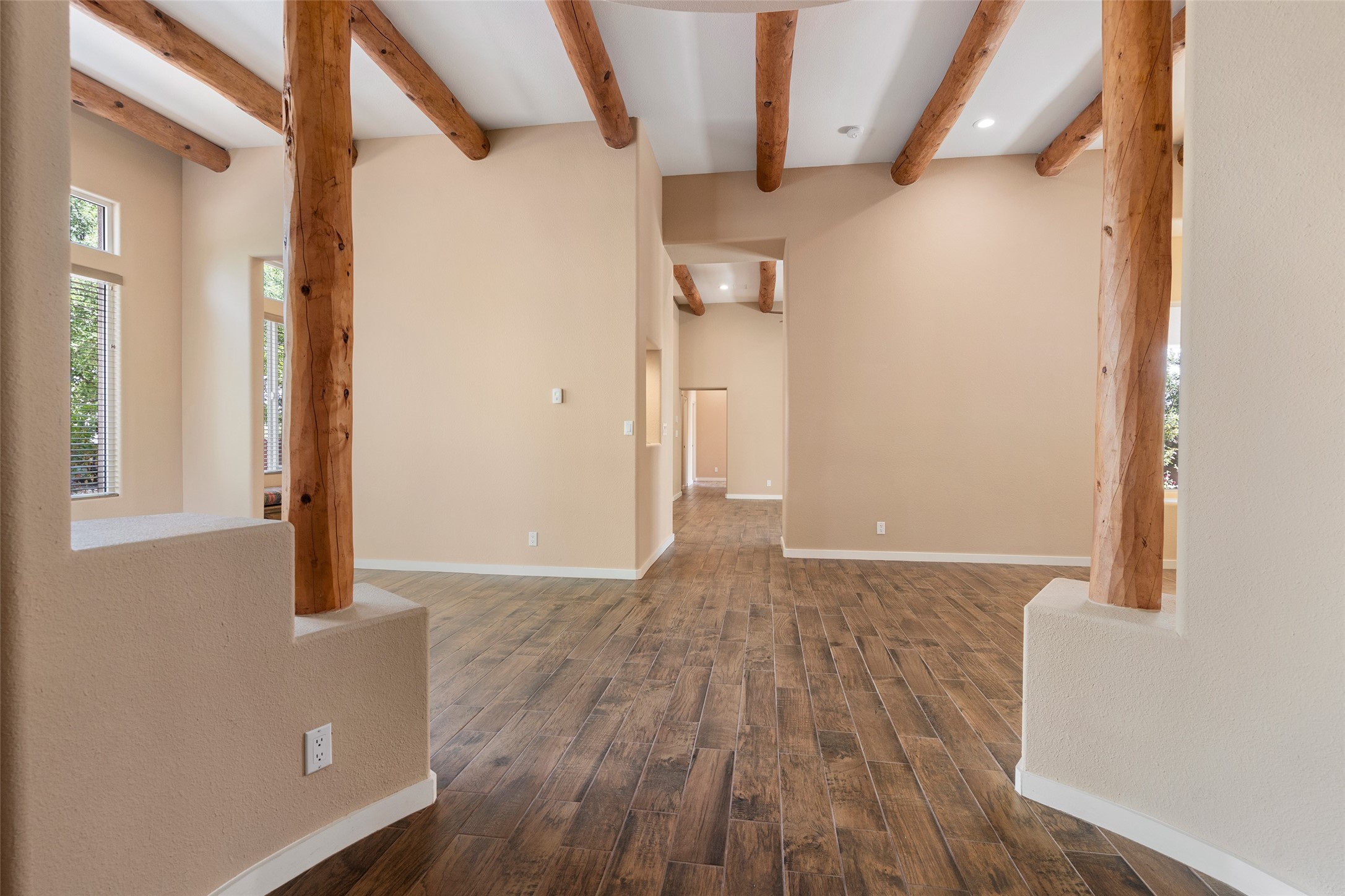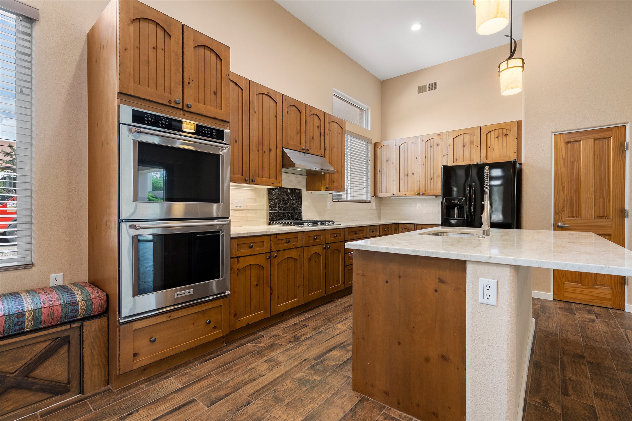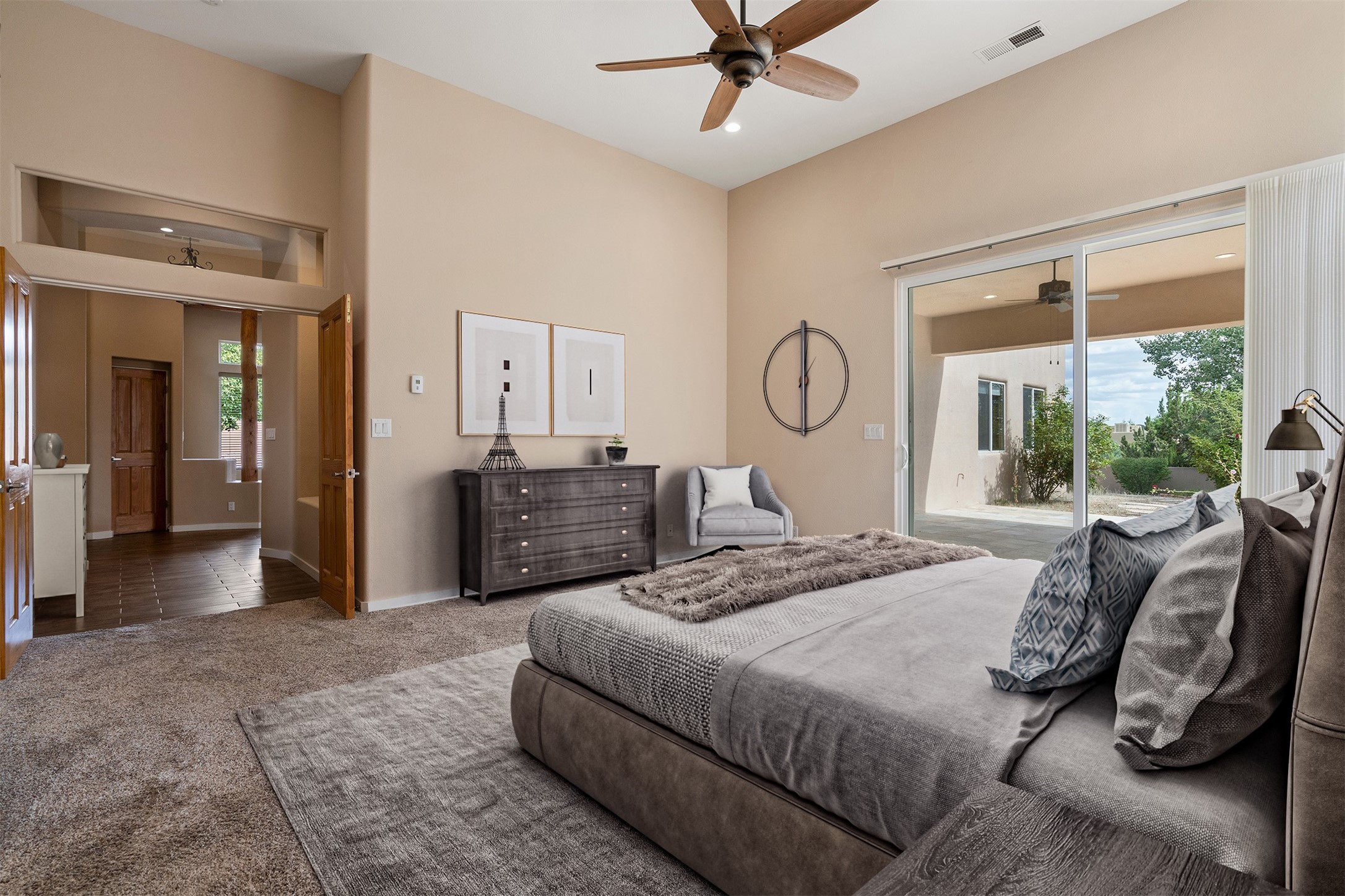 Look here: a stylish and updated home on a desirable corner lot! This immaculate single-level home has been extensively updated and shows beautifully. With over $170,000 in thoughtful renovations completed just a few years ago, the home feels modern, fresh, and move-in ready. The kitchen is a true centerpiece, featuring granite countertops, a custom tile backsplash, double ovens, a five-burner gas cooktop, under-cabinet lighting, a remodeled island, and a charming window seat. Wood-look tile flooring, bedroom carpet, and a paint refresh complement the home's warm modern-rustic style, while recessed LED lighting adds everyday brightness. The spacious primary suite is a serene retreat with a spa-like bath. You will love the separation from the other bedrooms. With four additional bedrooms--including a private ensuite with its own exterior access--the floor plan offers flexibility for guests, a studio, an in-home office, exercise room, media room and more! Outdoors, enjoy a covered portal with views of the Ortiz Mountains and thoughtfully designed landscaping that bursts with seasonal color from Virginia creepers, rose bushes, and ornamental fruit trees. All this in an unbeatable location: just 12 miles from the historic Santa Fe Plaza and only minutes to shopping and dining. The Rancho Viejo HOA enhances the neighborhood with multiple parks, vast open spaces, scenic paved trails, and well-kept surroundings protected by reasonable covenants. A home that blends style, comfort, and convenience -- and one you'll be proud to call your own.