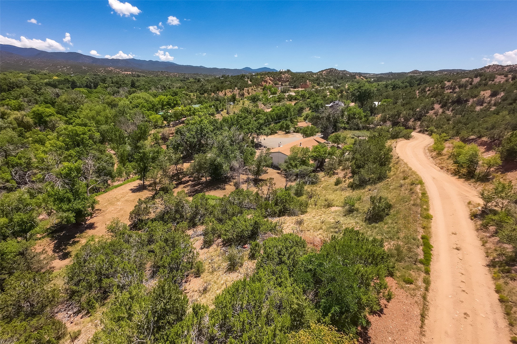 Welcome to this 3 bed/2 bath manufactured home nestled in the wooded area around the highly desirable Tesuque area. Mature trees and lush foliage surround this home giving the property a welcome retreat like no other. Permanent foundation and cozy wrap around deck. Call the listing broker for your private showing today! This listing only to be sold in conjunction with 28 Glowing Star Rd and 20 B Glowing Star Rd. No exceptions!