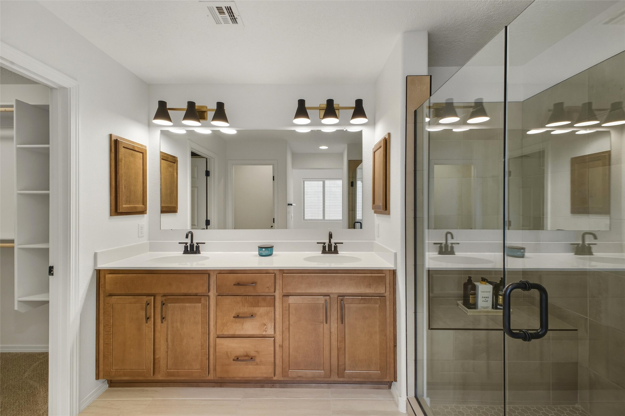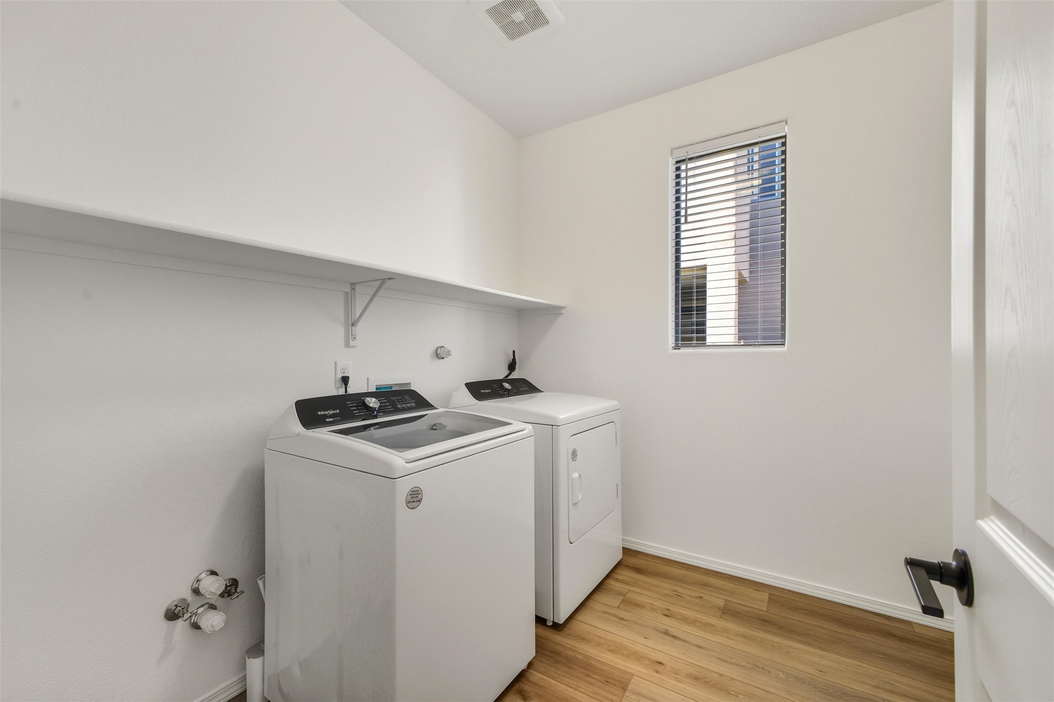 Welcome to your nearly new, 2023 Pulte home, the lovely covered entry portal provides protection from the weather, inside you'll be surprised by the double door closet providing ample storage space. The light and bright floor plan begins with a spacious living room that blends well with the open-concept kitchen and dining space, luxury vinyl flooring throughout. Your well-equipped kitchen features a generous island with seating, spacious pantry, wall oven, 5-burner gas cooktop, modern finishes, newer stainless-steel appliances, custom cabinets, and beautiful quartz countertops. Two sliding doors across from the island offer you easy access to enjoy the lovely Santa Fe weather while you lounge under your covered patio in your private-side courtyard. Just off the kitchen, adorned with beautiful French doors, you'll find a dedicated flex space that you could use as an office, den, or media room, centrally located but separate. The first floor also features a full-sized laundry room, below stair closet/storage and easy access to your two-car garage, all providing you more storage spaces. Upstairs, you'll discover your versatile bonus room, perfect for a kids' playroom, home gym, media space, the opportunities are endless. Your home comes complete with two bedrooms that share a full bath in the hallway, and a spacious primary owner's suite. The primary en-suite bath features double vanities, a generous glass-enclosed tiled shower, and a private water closet, all connected to a large walk-in closet. Your home features an on-demand, energy efficient, tankless hot water heater, central heat and refrigerated A/C, all designed to provide hours of indoor comfort. The Las Soleras community is located just minutes from I-25, the 599, medical facilities, and a plethora of shopping and dining options. Bordering the Las Soleras community you'll find a large open space featuring a park that offers a basketball court, playground, dog run, walking trial and a cabana for entertaining.
