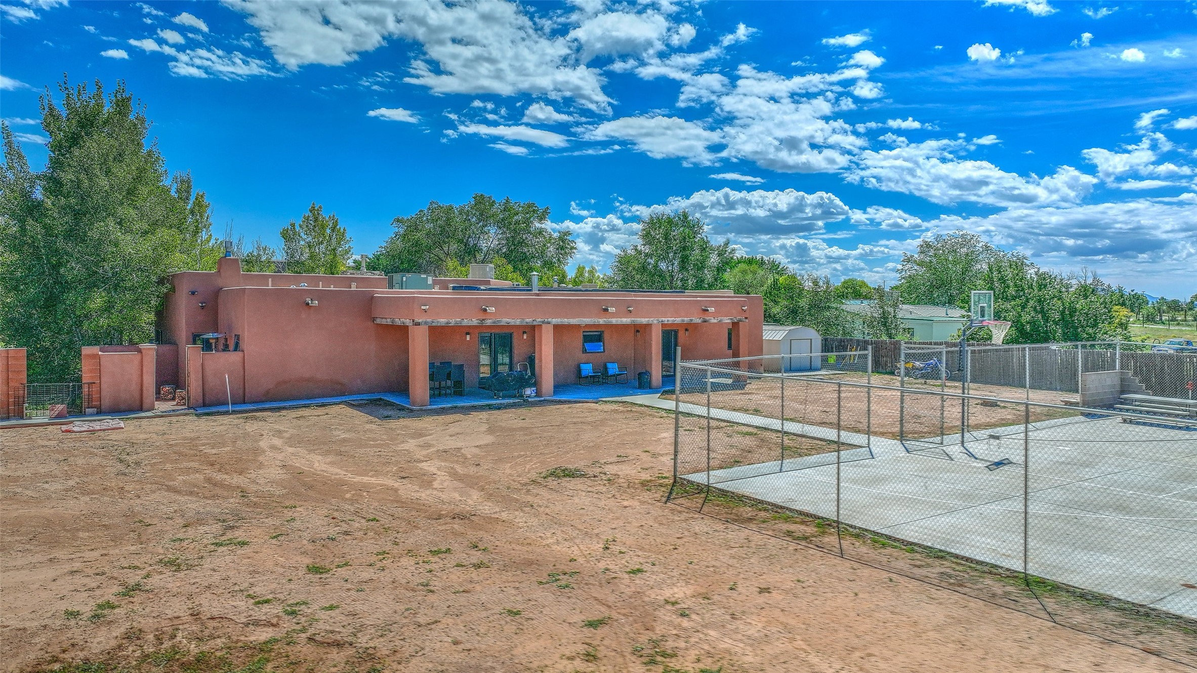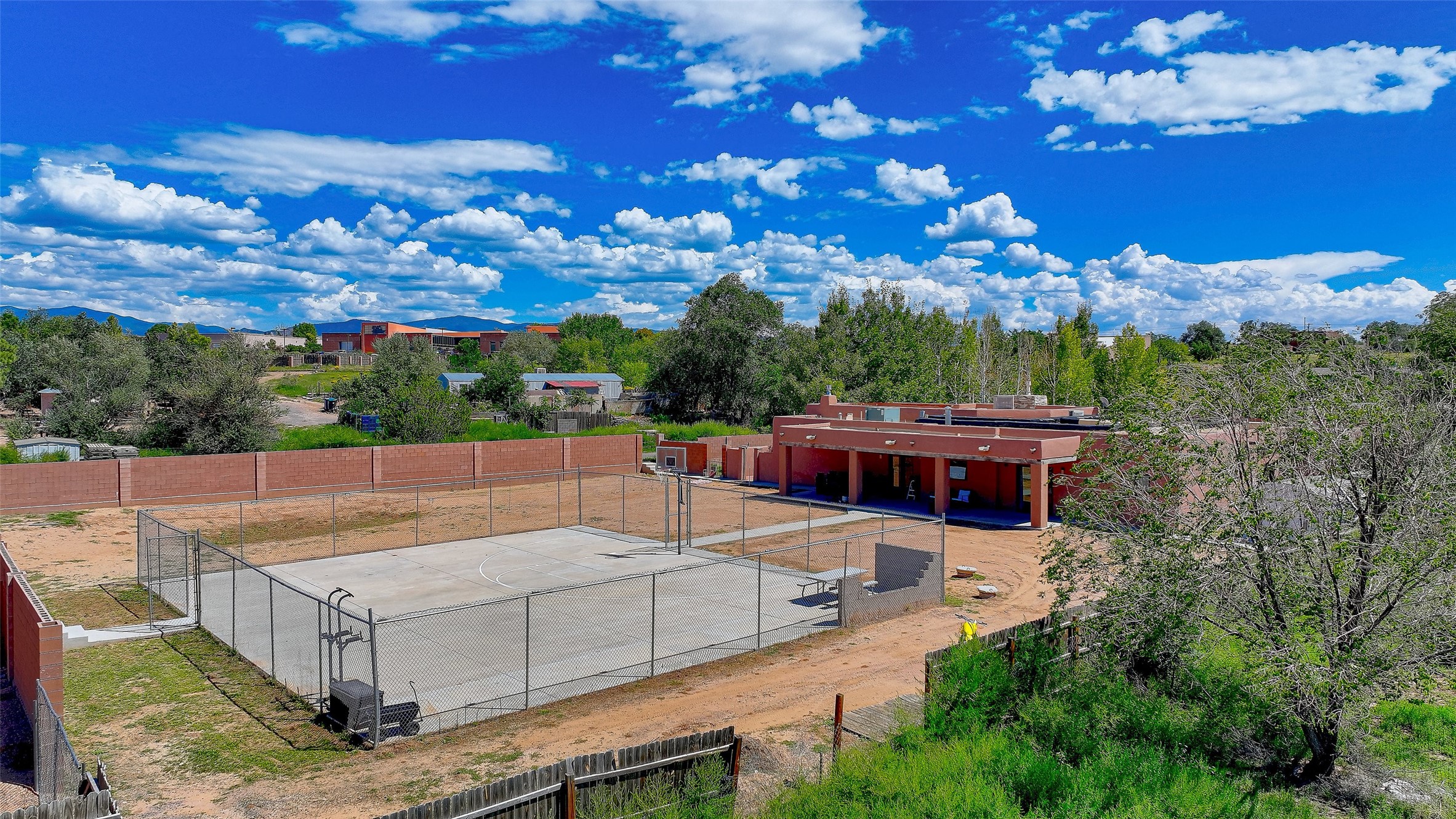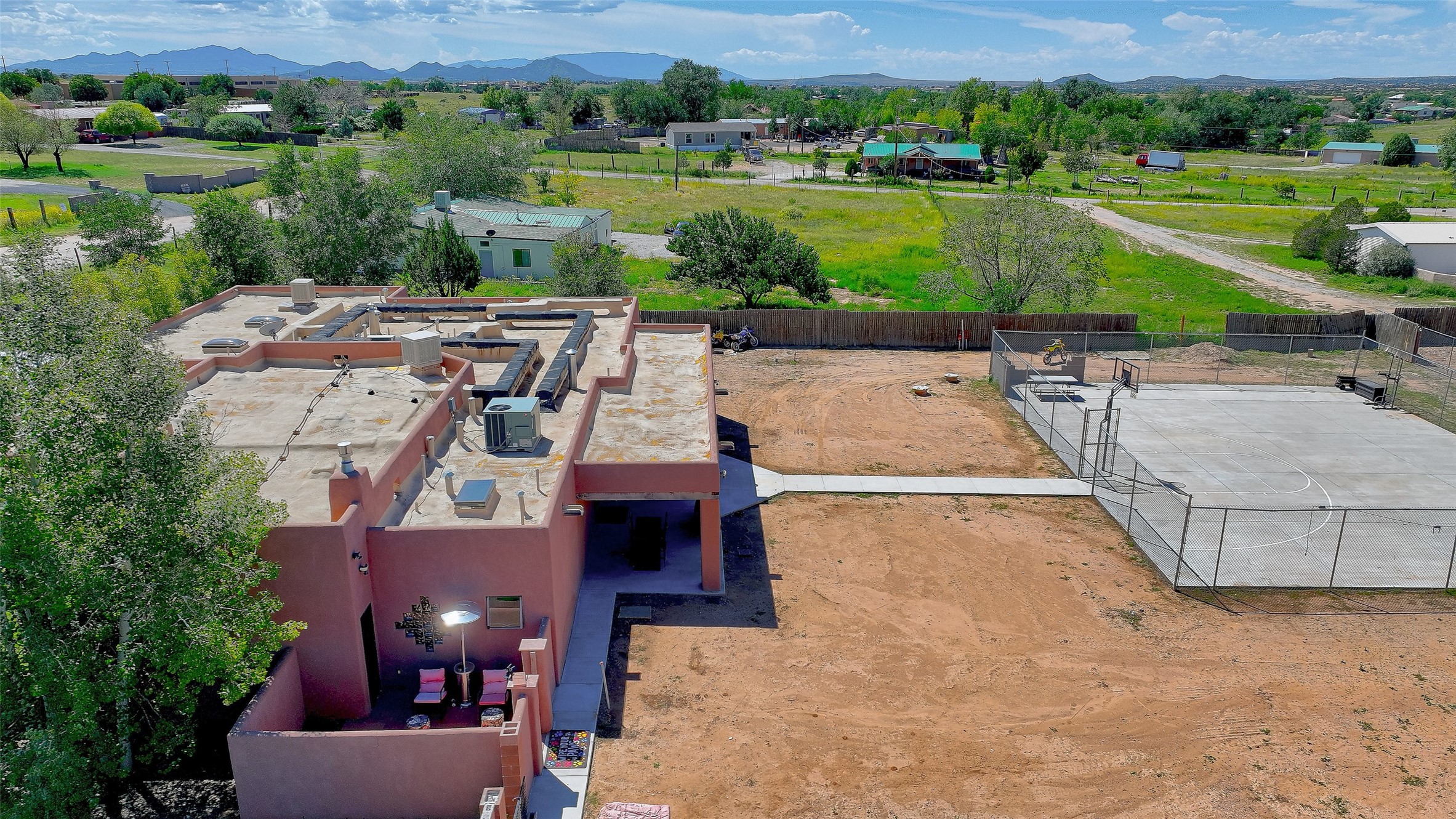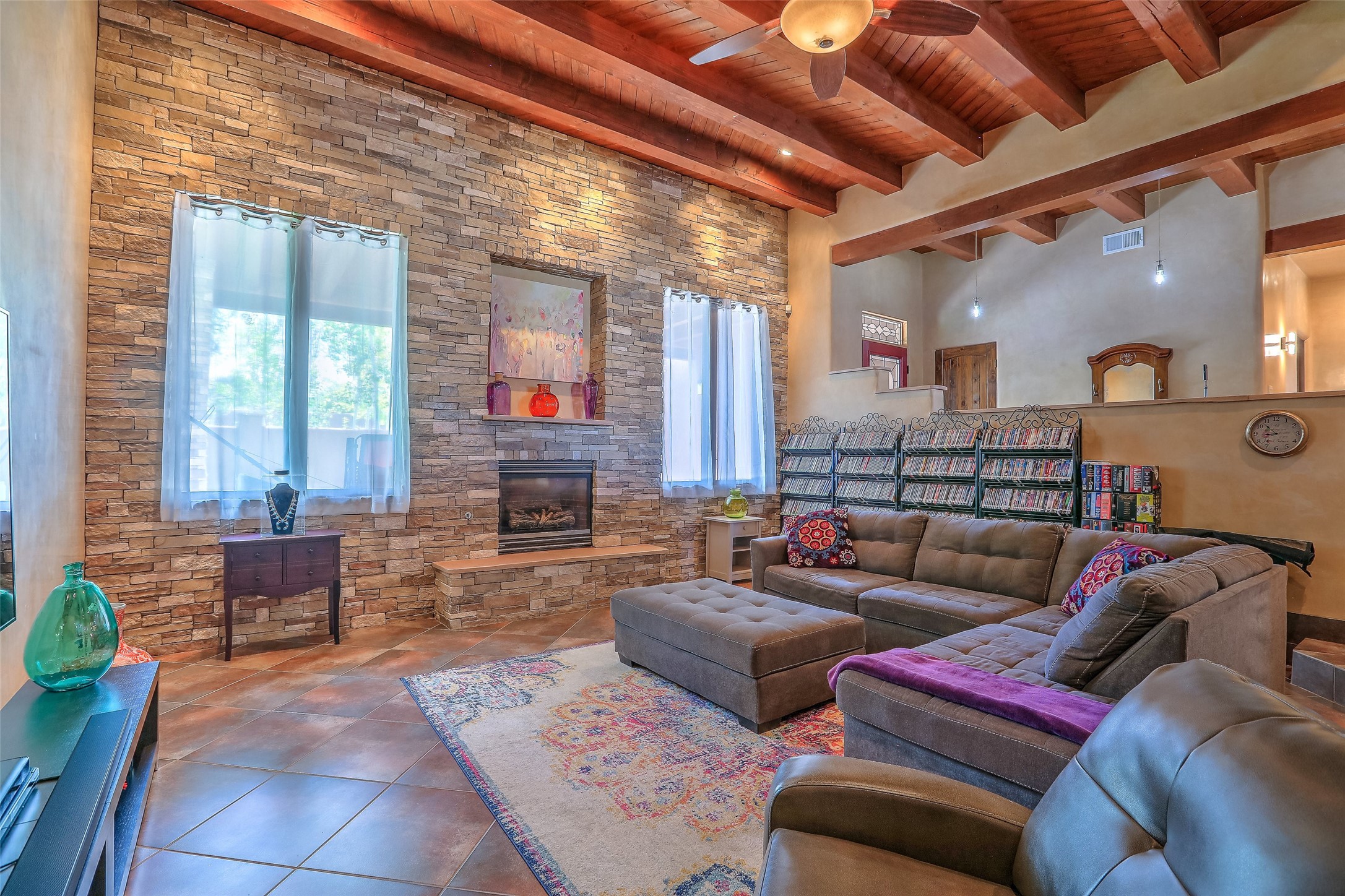 Priced to sell! Don't miss our on this opportunity!!! Absolute Stunner in Santa Fe! Perfect for a Large Family or Investor. Walk into the 2,764 SF 3 Bedroom, 3.5 Bath Primary Home and be greeted with Luxury! A Huge Sunken Family Room creates a Cozy and Intimate Atmosphere for Family Gatherings centered around a Fireplace accented with a Stonewall covering the entire South Wall. Magnificent Vigas and Diamond Finish Walls provide the Perfect Touch! The Kitchen is a True Chefs Delight! The Main Home includes an En Suite, Office, Radiant Floor Heating, Central Vac System, Water Softener System, and a High Efficiency Tankless Water Heater. The Comfy Primary Suite is equipped with its own Fireplace offering the Ultimate Relaxation. Attached to the Main Home is a Fabulous 1,008 SF Efficiency Suite with its own Private Entrance and includes 1 Bedroom, 1 Bath, Office, Full Kitchen, Laundry Room and Living Area. Behind the Full Size Enclosed Basketball Court you will find an additional 1,560 SF Guest Home that was built in 2022. This Modern New Home offers 4 Bedrooms; a Primary Suite, an En Suite, and 2 Guest Rooms and 3 Baths. Features include all Tile Flooring, Tankless Water Heater, TPO Roof, Fenced Yard and its own Private Road. The Two Large (480 SF Each) Utility Sheds/Carports also convey. Don't Miss Out on this One of a Kind Opportunity!!