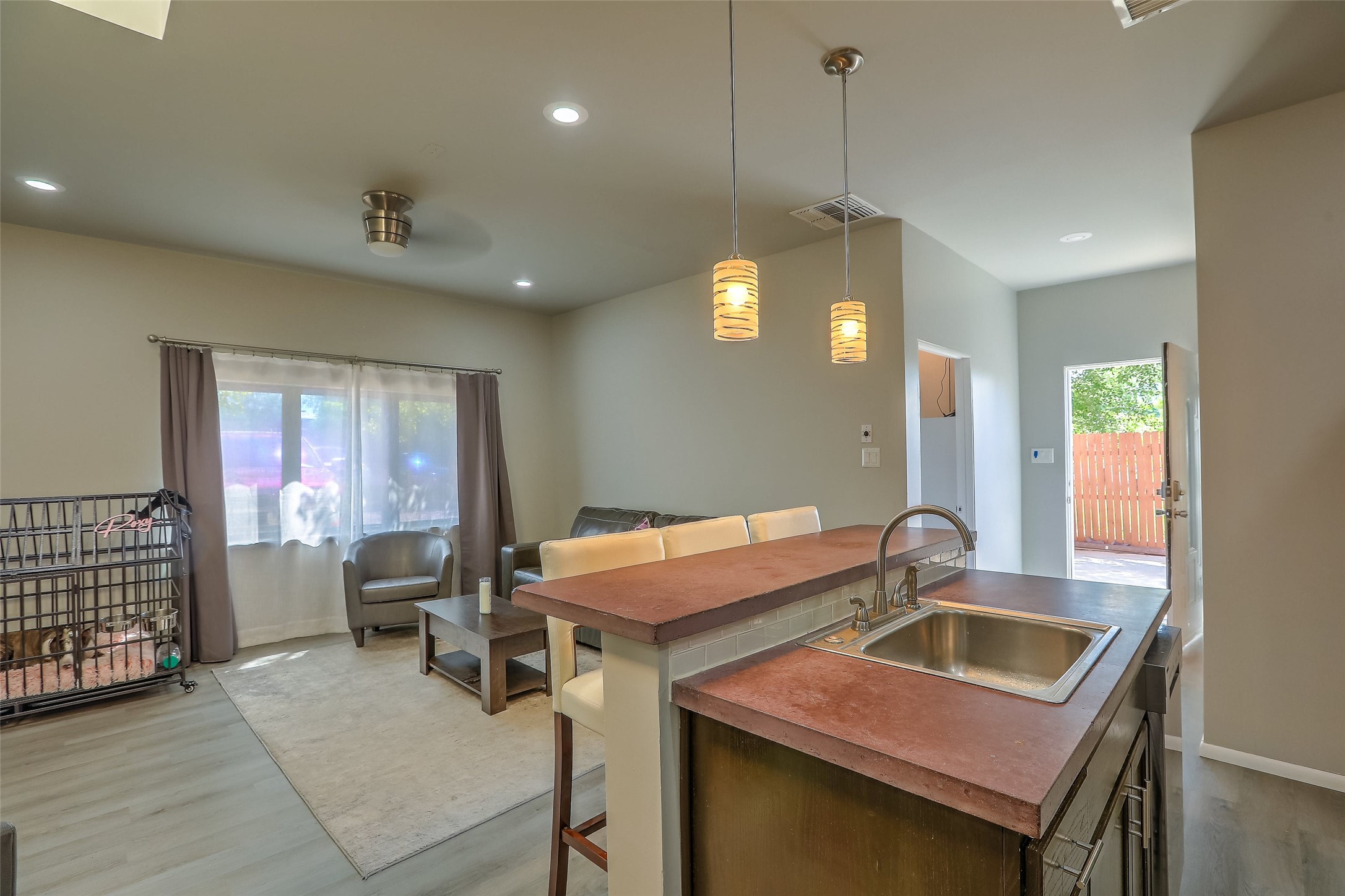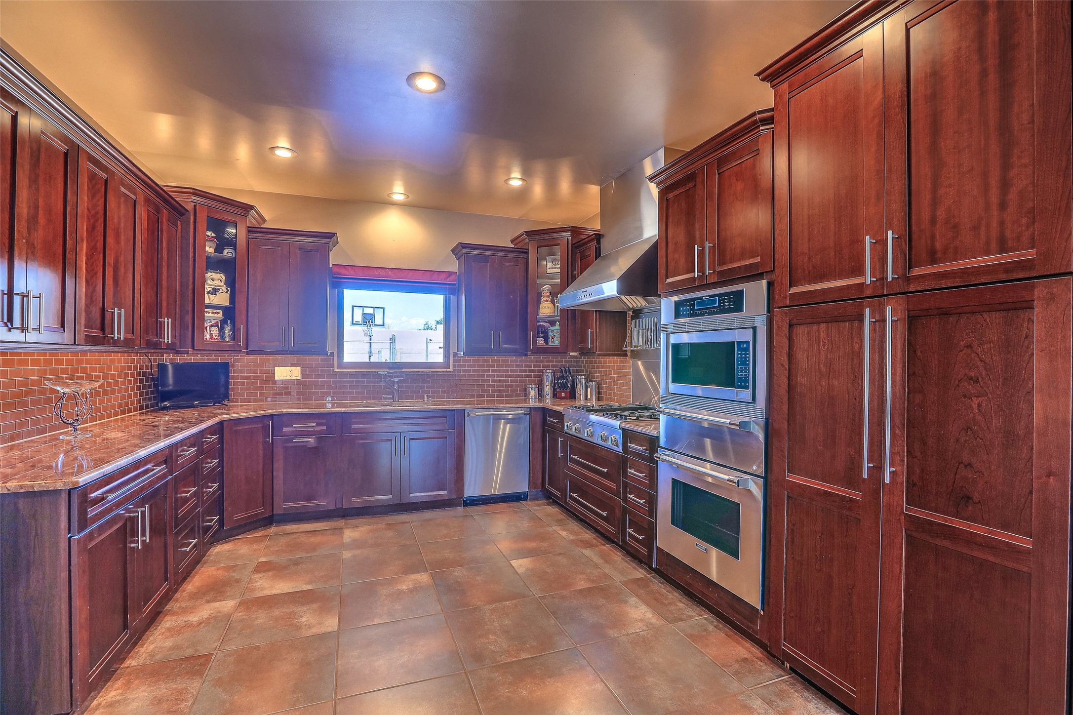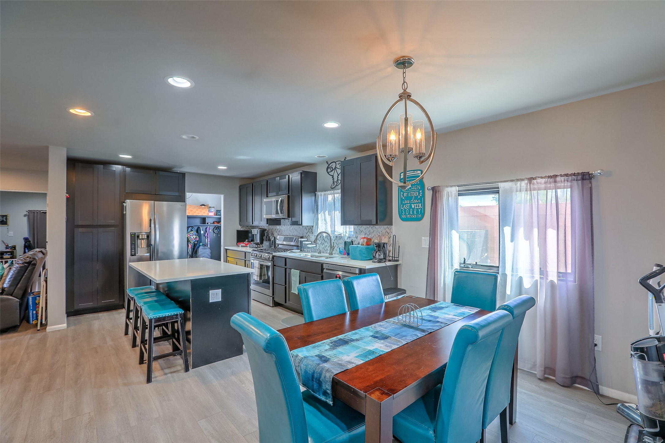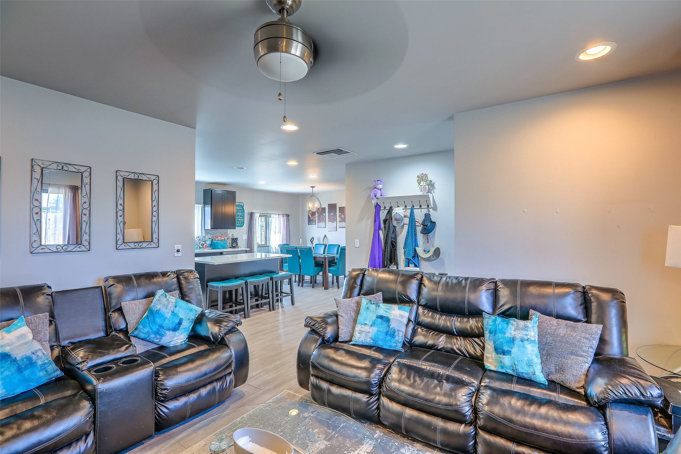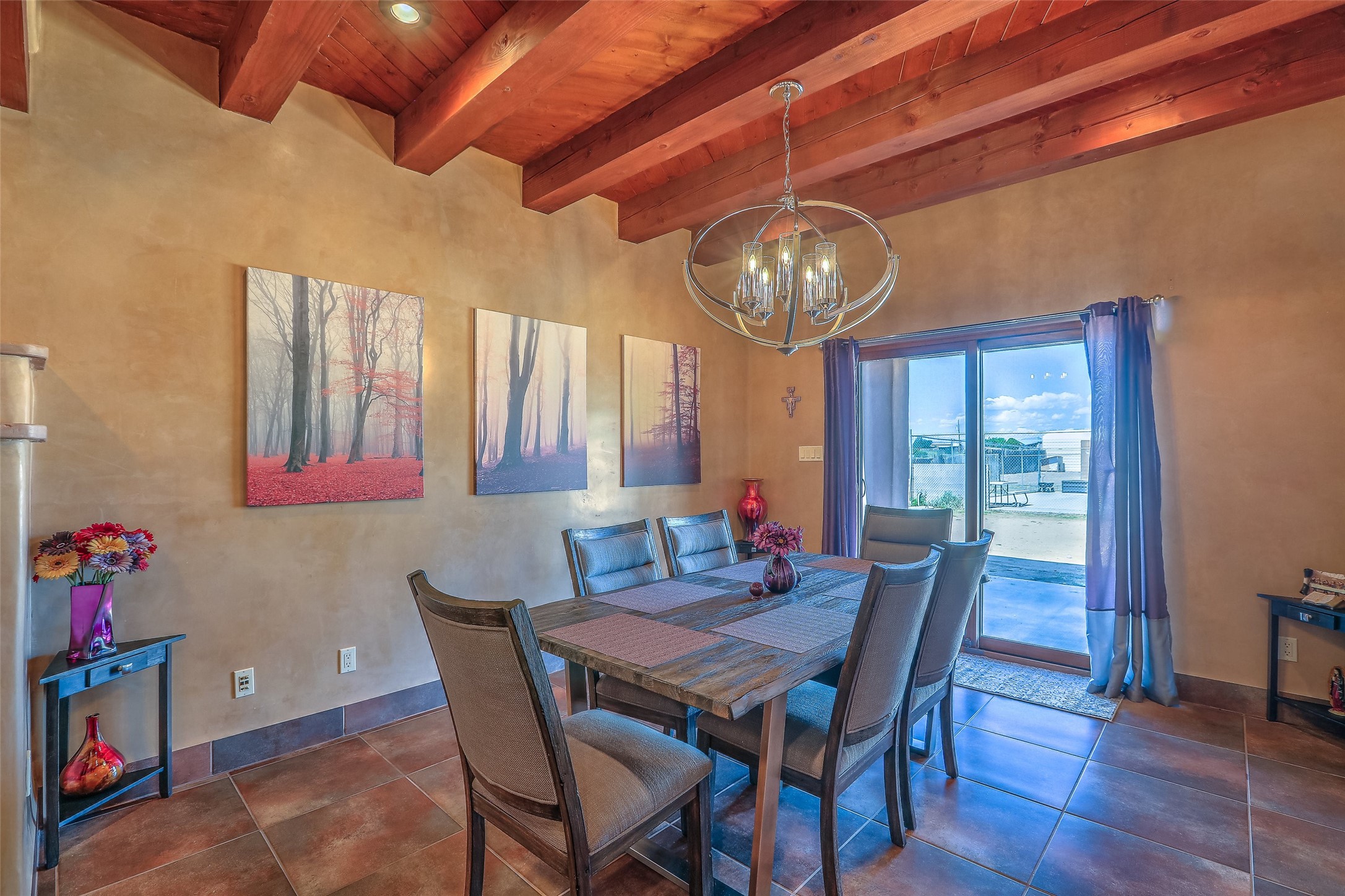 Priced to sell! Don't miss our on this opportunity!!! Absolute Stunner in Santa Fe! Perfect for a Large Family or Investor. Walk into the 2,764 SF 3 Bedroom, 3.5 Bath Primary Home and be greeted with Luxury! A Huge Sunken Family Room creates a Cozy and Intimate Atmosphere for Family Gatherings centered around a Fireplace accented with a Stonewall covering the entire South Wall. Magnificent Vigas and Diamond Finish Walls provide the Perfect Touch! The Kitchen is a True Chefs Delight! The Main Home includes an En Suite, Office, Radiant Floor Heating, Central Vac System, Water Softener System, and a High Efficiency Tankless Water Heater. The Comfy Primary Suite is equipped with its own Fireplace offering the Ultimate Relaxation. Attached to the Main Home is a Fabulous 1,008 SF Efficiency Suite with its own Private Entrance and includes 1 Bedroom, 1 Bath, Office, Full Kitchen, Laundry Room and Living Area. Behind the Full Size Enclosed Basketball Court you will find an additional 1,560 SF Guest Home that was built in 2022. This Modern New Home offers 4 Bedrooms; a Primary Suite, an En Suite, and 2 Guest Rooms and 3 Baths. Features include all Tile Flooring, Tankless Water Heater, TPO Roof, Fenced Yard and its own Private Road. The Two Large (480 SF Each) Utility Sheds/Carports also convey. Don't Miss Out on this One of a Kind Opportunity!!