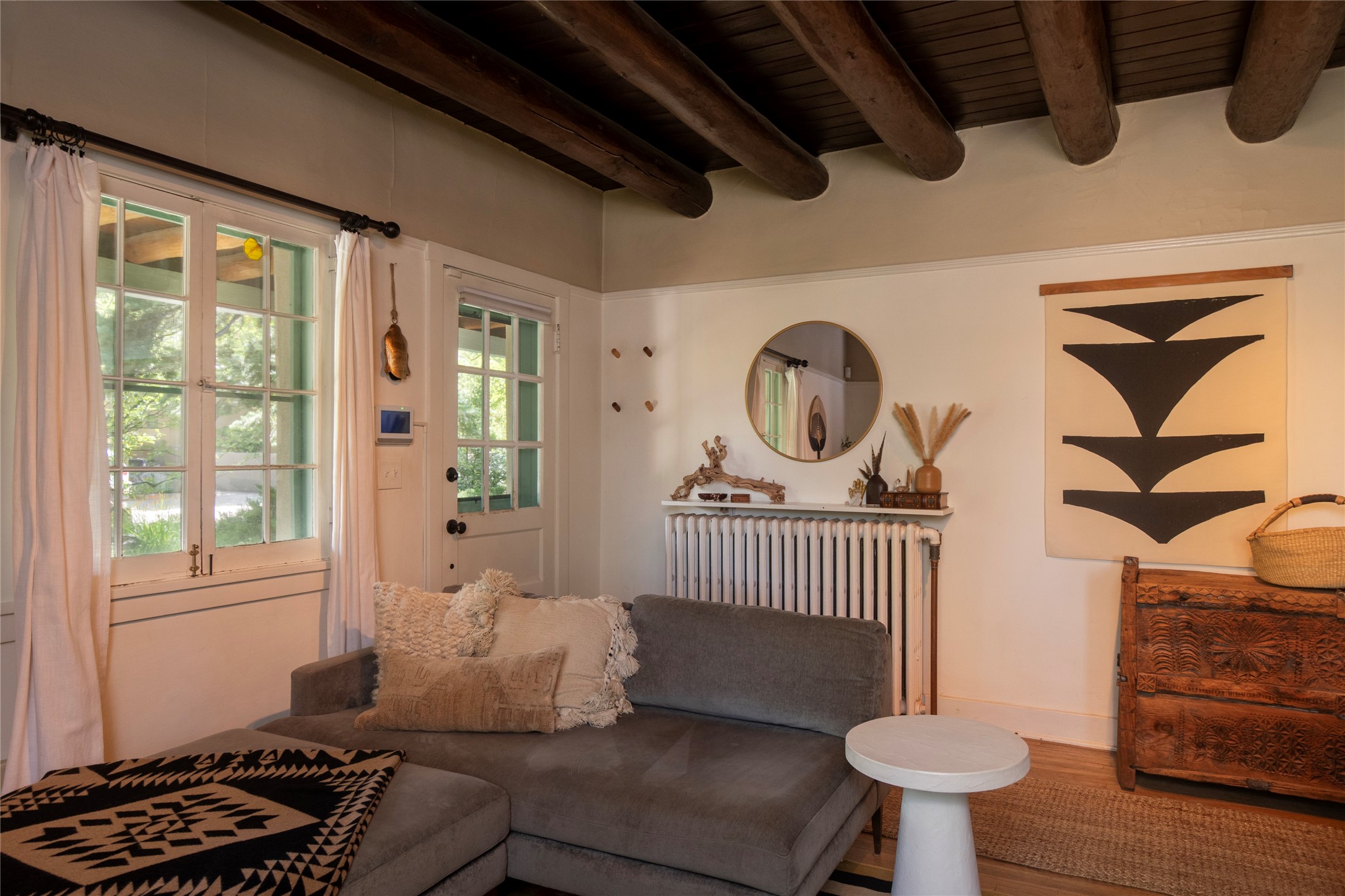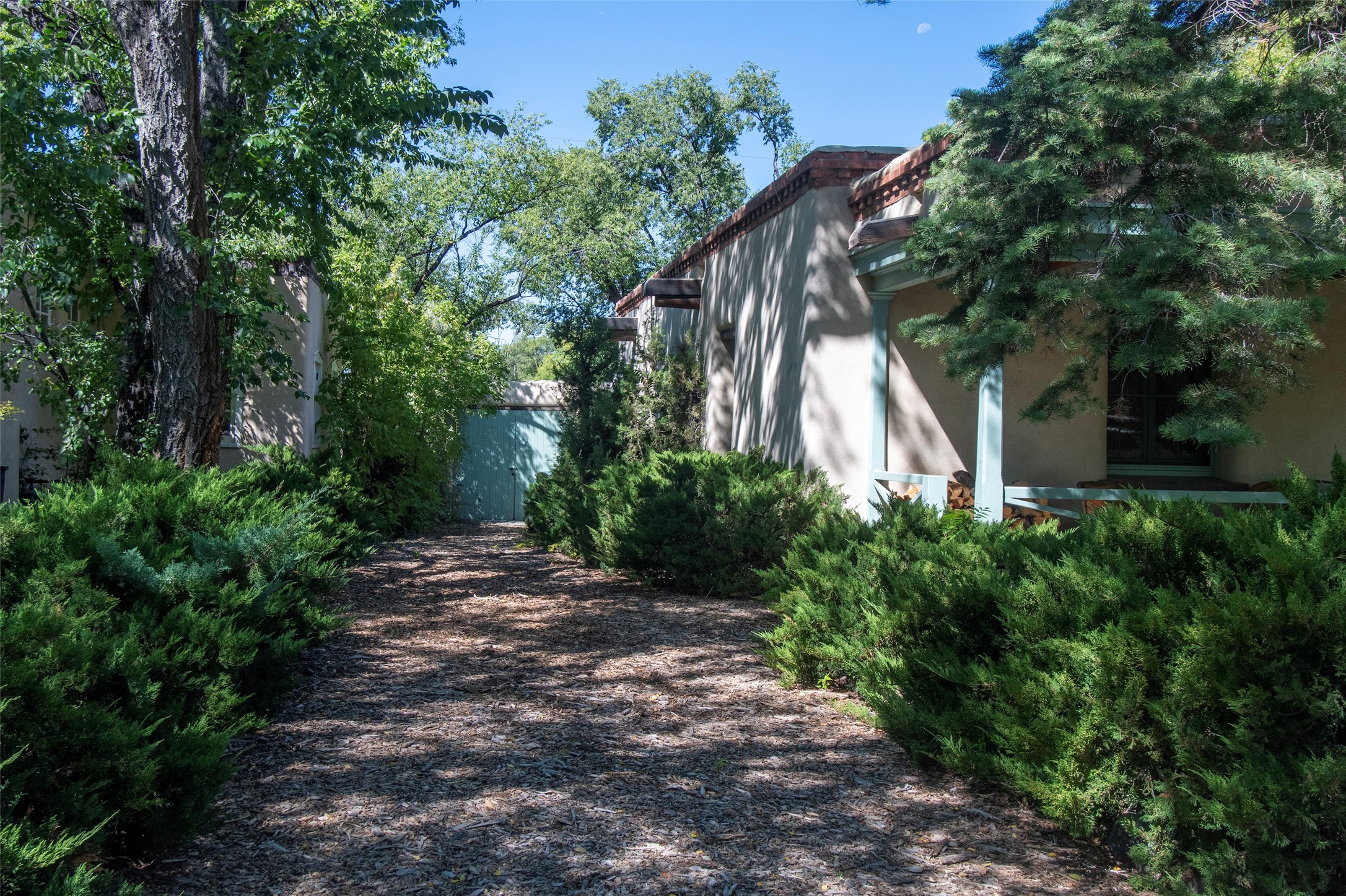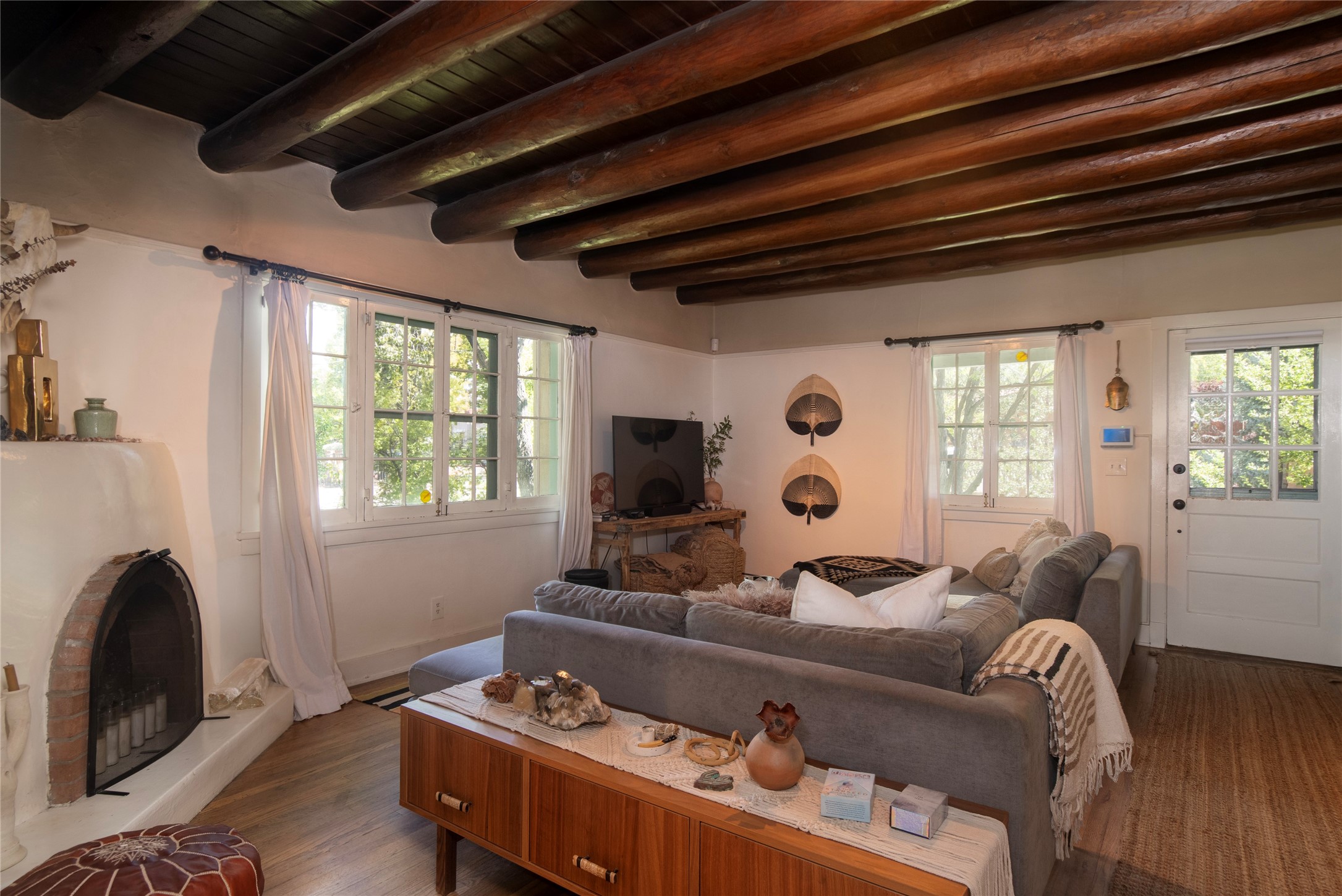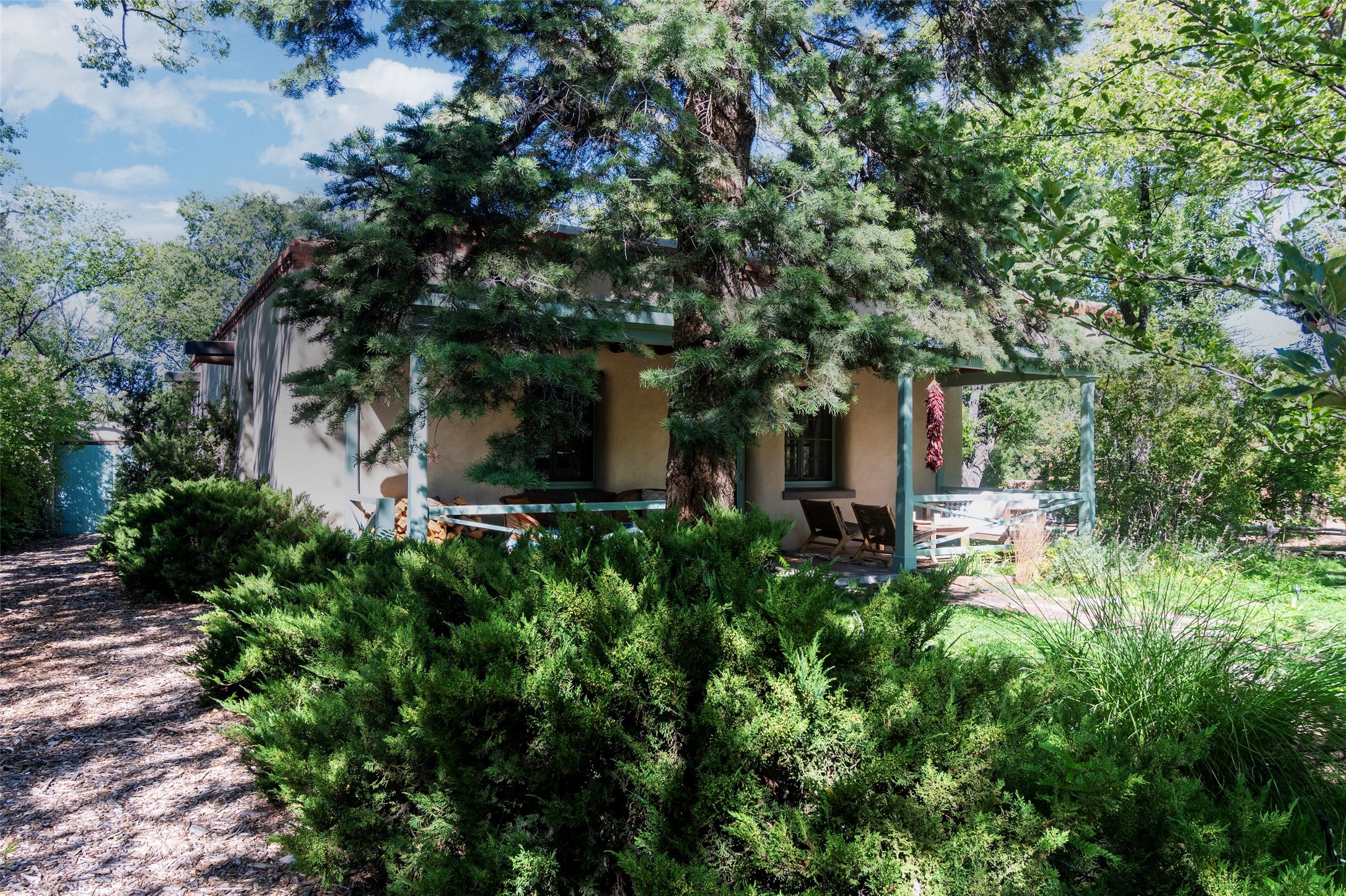 Charming two-bedroom, one-bath Eastside residence situated on 0.18-acres. This territorial-style adobe home is the perfect blend of its original charm and modern updates, offering 1,340 square feet of living space. A cozy fireplace in the living room gives a warm ambiance and dining room provides plenty of room for guests to gather or an extra space to work from home. A quaint kitchen with a pantry and a nearby laundry room adds convenience. The generous front and back yard provides ample space for entertaining guests. Additionally, the detached garage could possibly be used as extra storage or an opportunity for creatives to convert into a private studio space. Located on the corner of Acequia Madre and San Antonio within minutes from Canyon Road and the historic Plaza, allowing for easy access to the city's rich cultural offerings. This is truly an Eastside gem in the most wonderful location!
