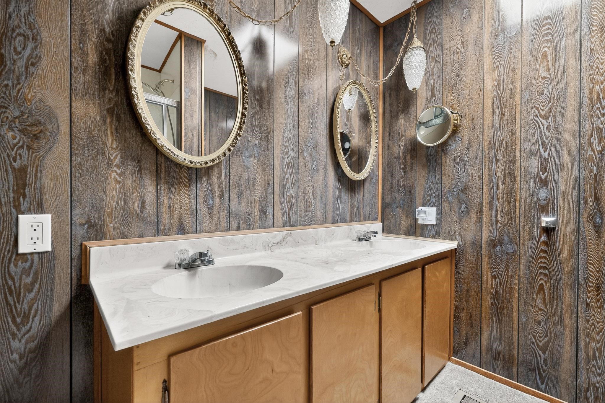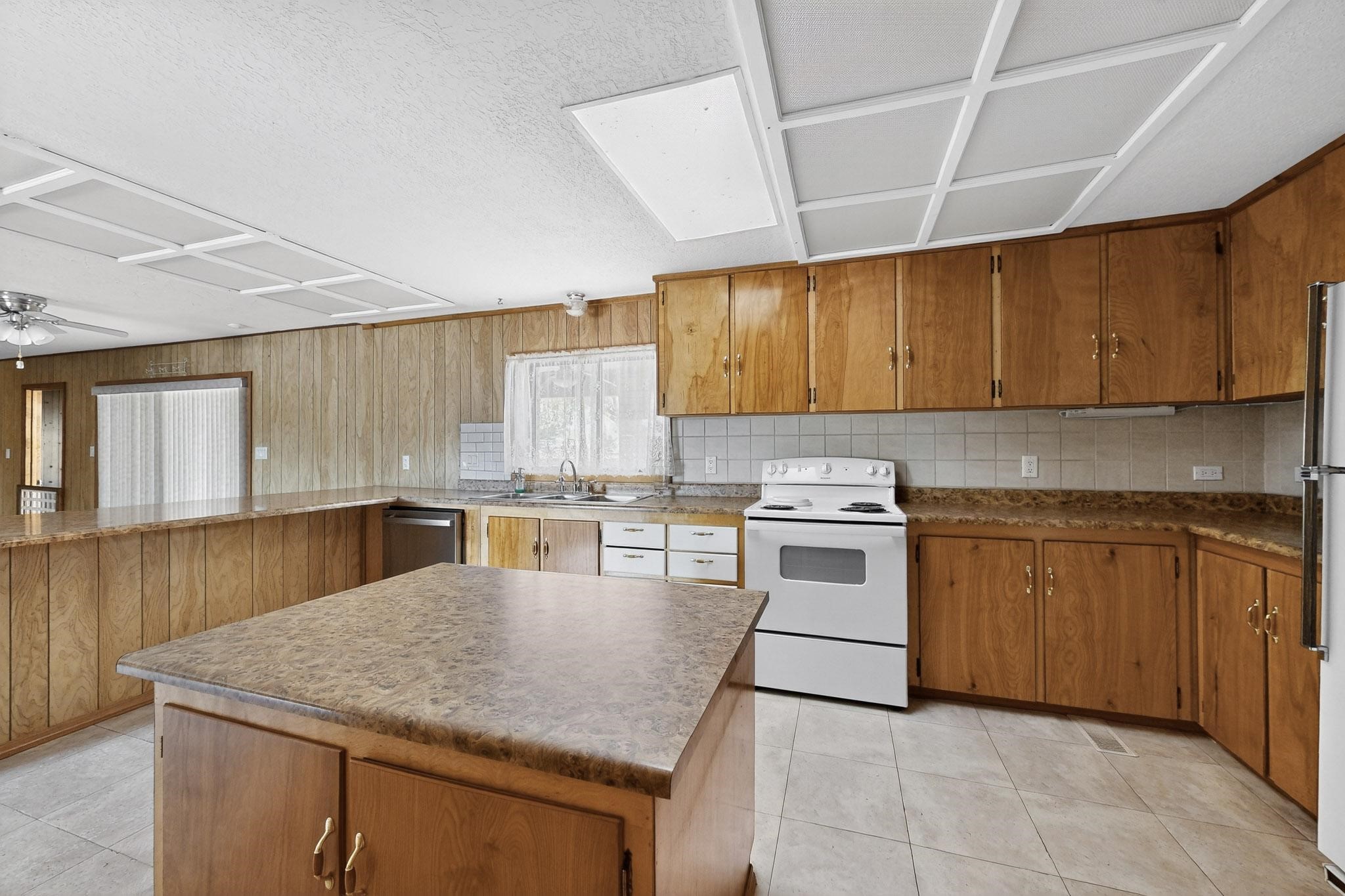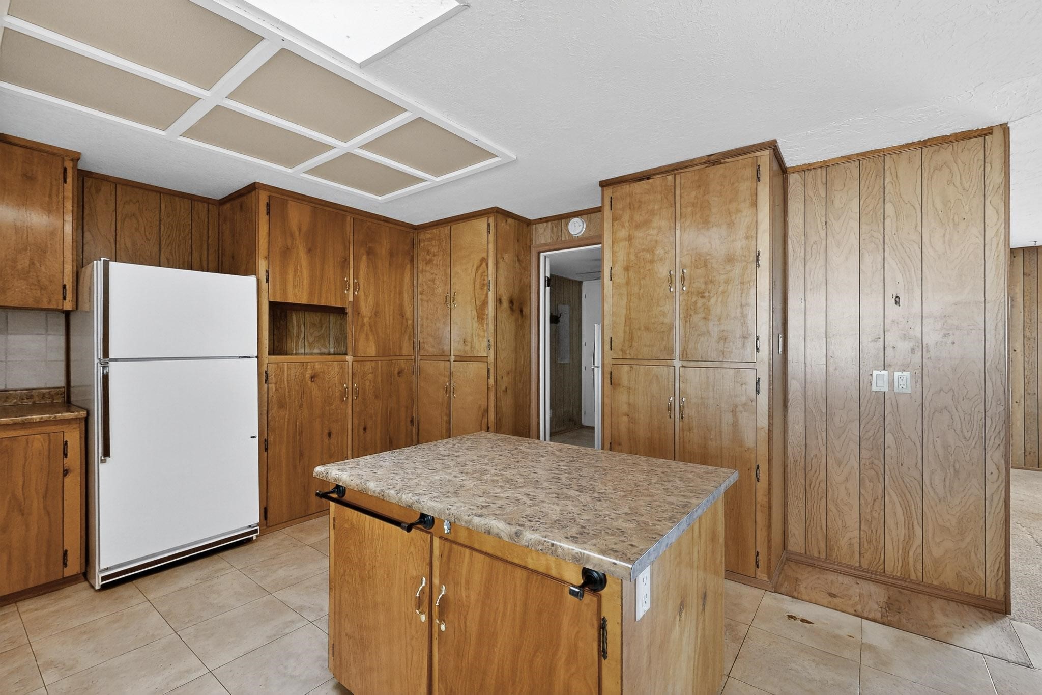 Spacious Los Lunas home with unique features! The open living and dining room is anchored by a double-sided fireplace, creating a warm focal point. The kitchen is generously sized with an island and plenty of room to personalize. Step outside to a covered patio with ceiling fans, perfect for relaxing or entertaining. A separate studio in the backyard adds flexibility for hobbies, work, or guests. This home offers great space and character, ready for your vision and updates. Land comes with a manufactured home next door to the North.