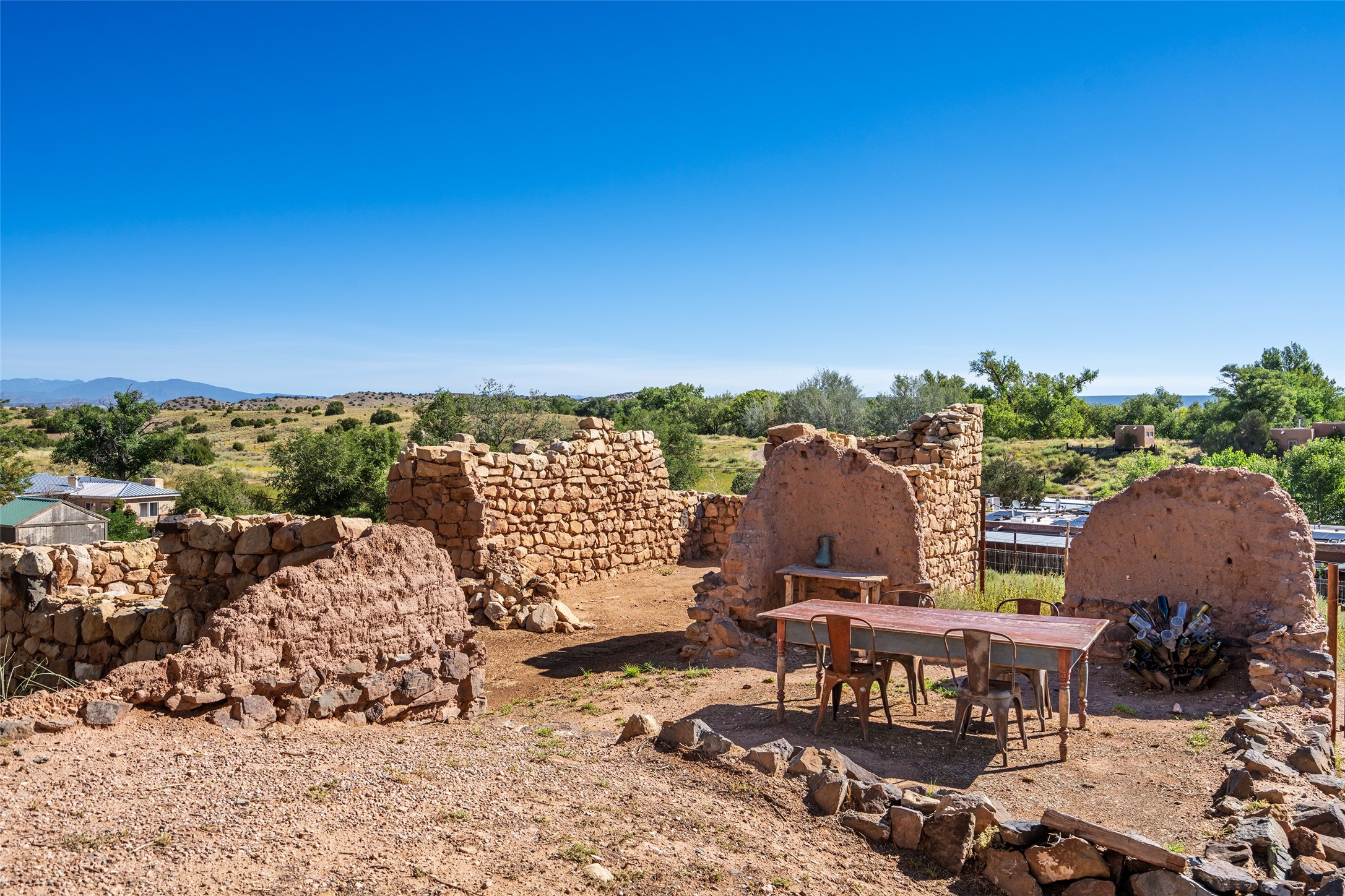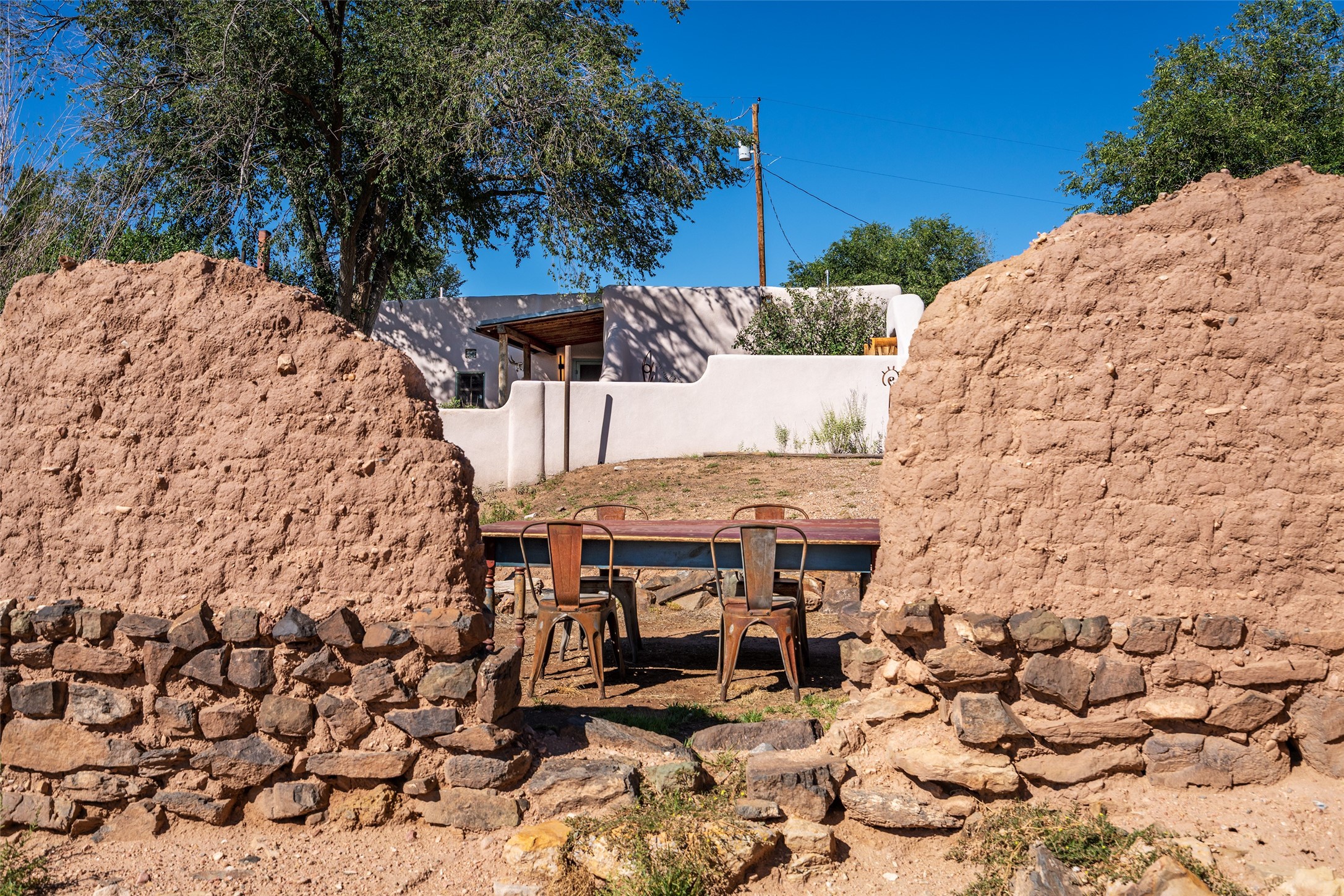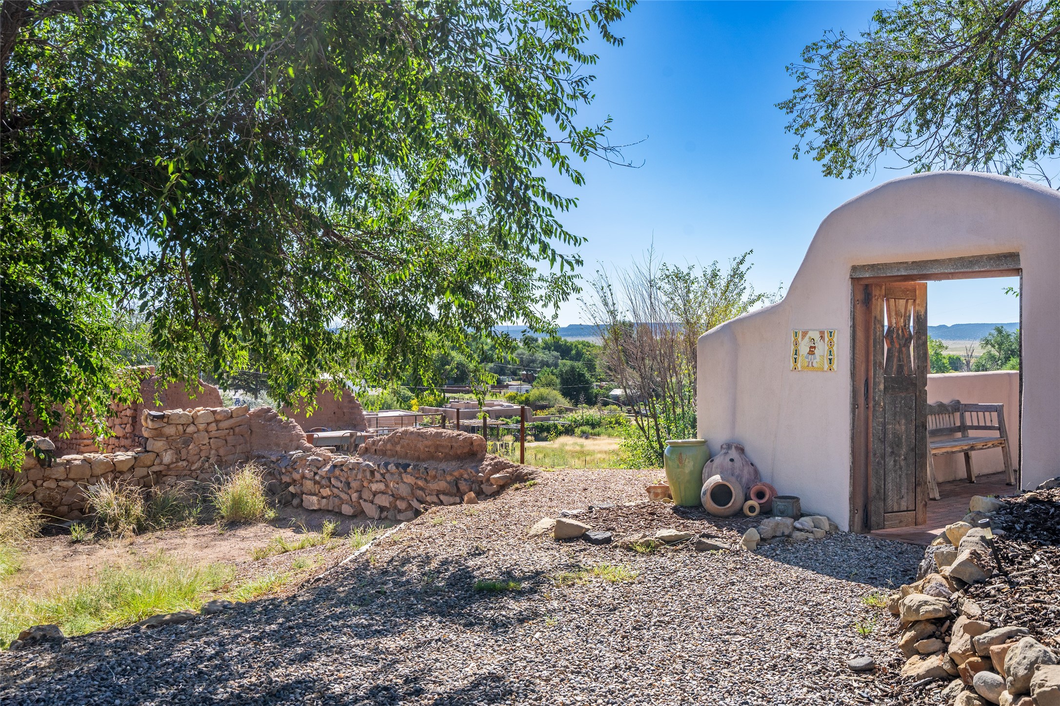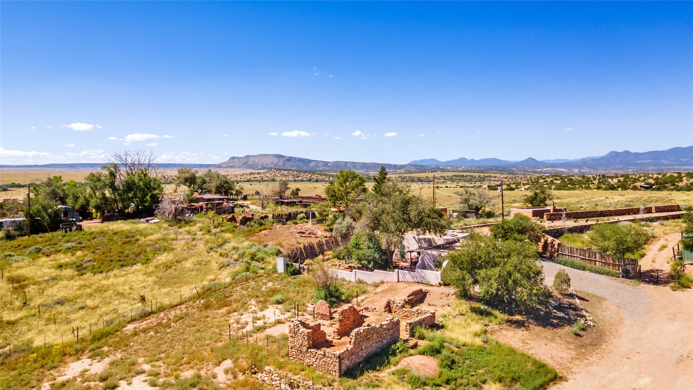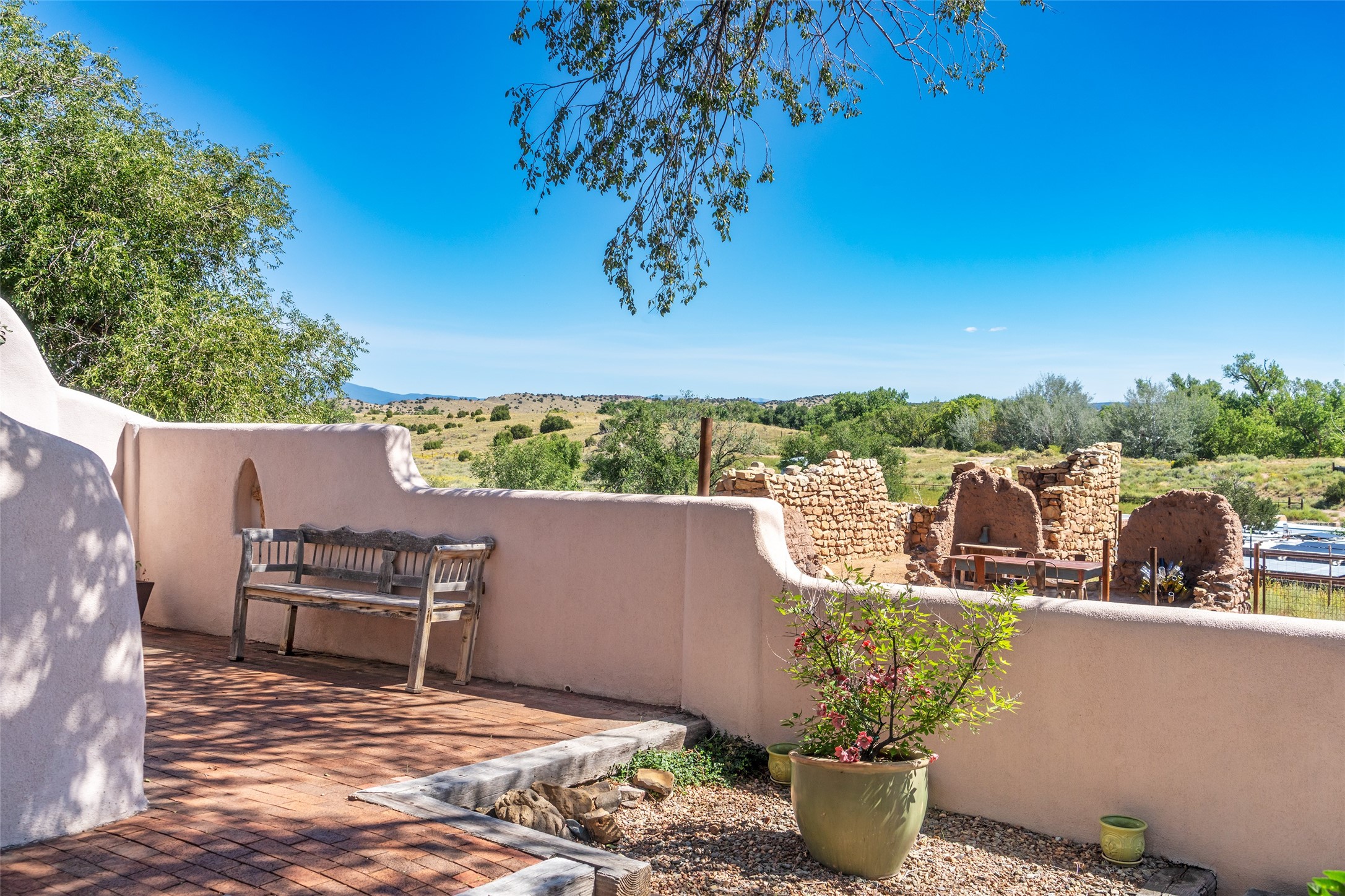 Step into a rare piece of New Mexico history with this authentic adobe home, originally built in the 1800s and beautifully renovated in 2016. Blending timeless Southwestern character with modern comforts, this 2-bedroom, 2.5-bath residence offers a truly one-of-a-kind living experience.Classic architectural details abound--hand-hewn vigas, plaster walls, nichos, brick and Saltillo tile floors, and artistically hand-painted doors showcase the craftsmanship of another era. The home's thoughtful renovation preserved these historic elements while seamlessly integrating updates for today's lifestyle.The gourmet kitchen is a centerpiece, featuring a farmhouse sink, honed marble countertops, Wolf range/oven, Fisher & Paykel refrigerator, KitchenAid dishwasher, and custom cabinetry.Outside, a charming courtyard offers stunning views over the historic village of Galisteo, creating a serene and inspiring retreat. Significant historic ruins on the property add depth and authenticity, connecting you to the story of the land.This home is a rare opportunity to own a piece of Galisteo's rich past while enjoying the comforts of a tasteful, modern renovation.