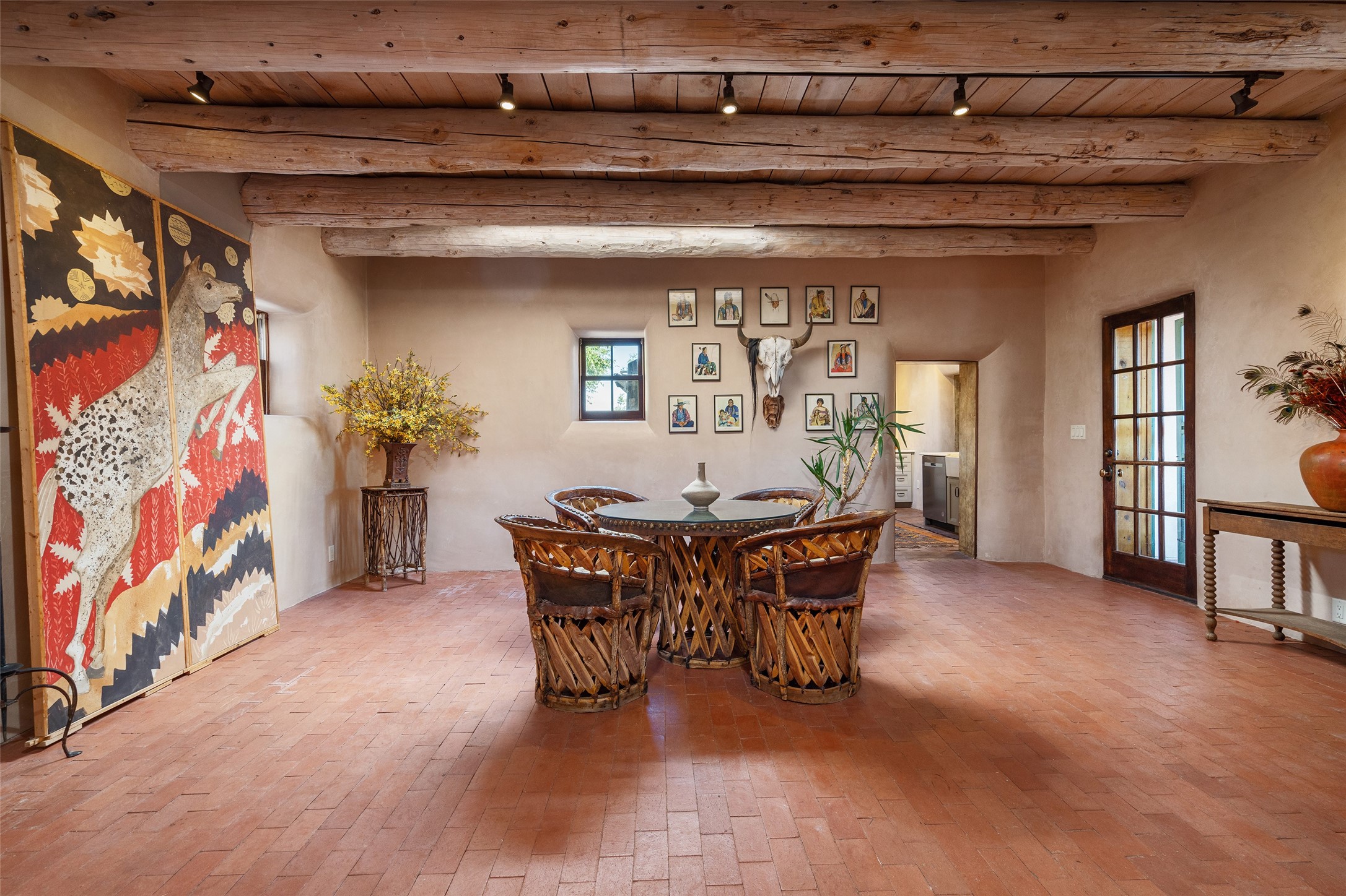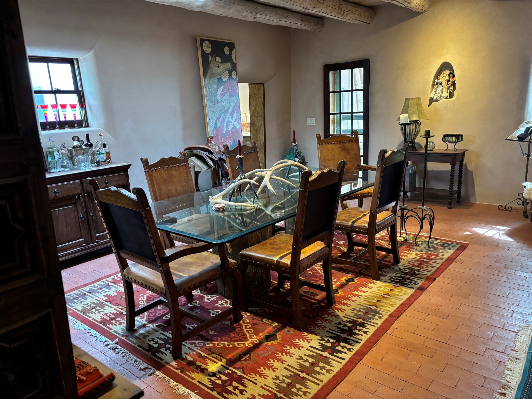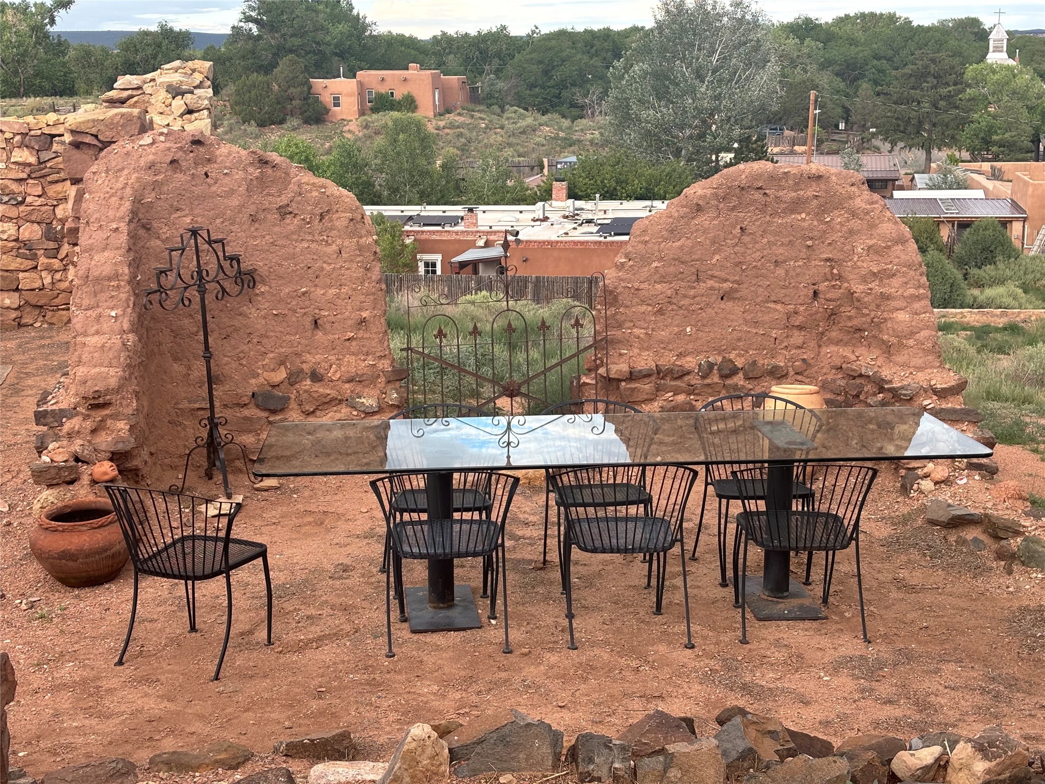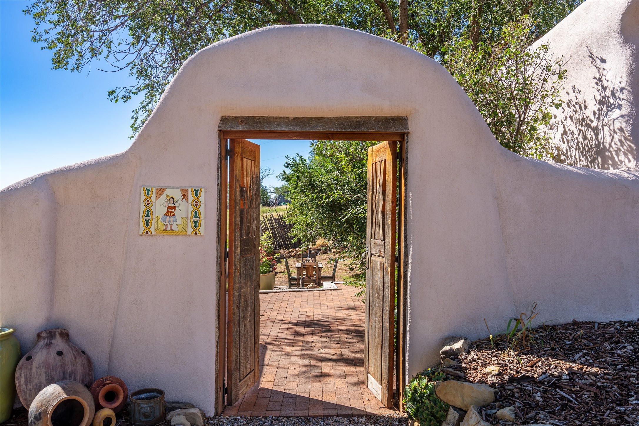 Step into a rare piece of New Mexico history with this authentic adobe home, originally built in the 1800s and beautifully renovated in 2016. Blending timeless Southwestern character with modern comforts, this 2-bedroom, 2.5-bath residence offers a truly one-of-a-kind living experience.Classic architectural details abound--hand-hewn vigas, plaster walls, nichos, brick and Saltillo tile floors, and artistically hand-painted doors showcase the craftsmanship of another era. The home's thoughtful renovation preserved these historic elements while seamlessly integrating updates for today's lifestyle.The gourmet kitchen is a centerpiece, featuring a farmhouse sink, honed marble countertops, Wolf range/oven, Fisher & Paykel refrigerator, KitchenAid dishwasher, and custom cabinetry.Outside, a charming courtyard offers stunning views over the historic village of Galisteo, creating a serene and inspiring retreat. Significant historic ruins on the property add depth and authenticity, connecting you to the story of the land.This home is a rare opportunity to own a piece of Galisteo's rich past while enjoying the comforts of a tasteful, modern renovation.