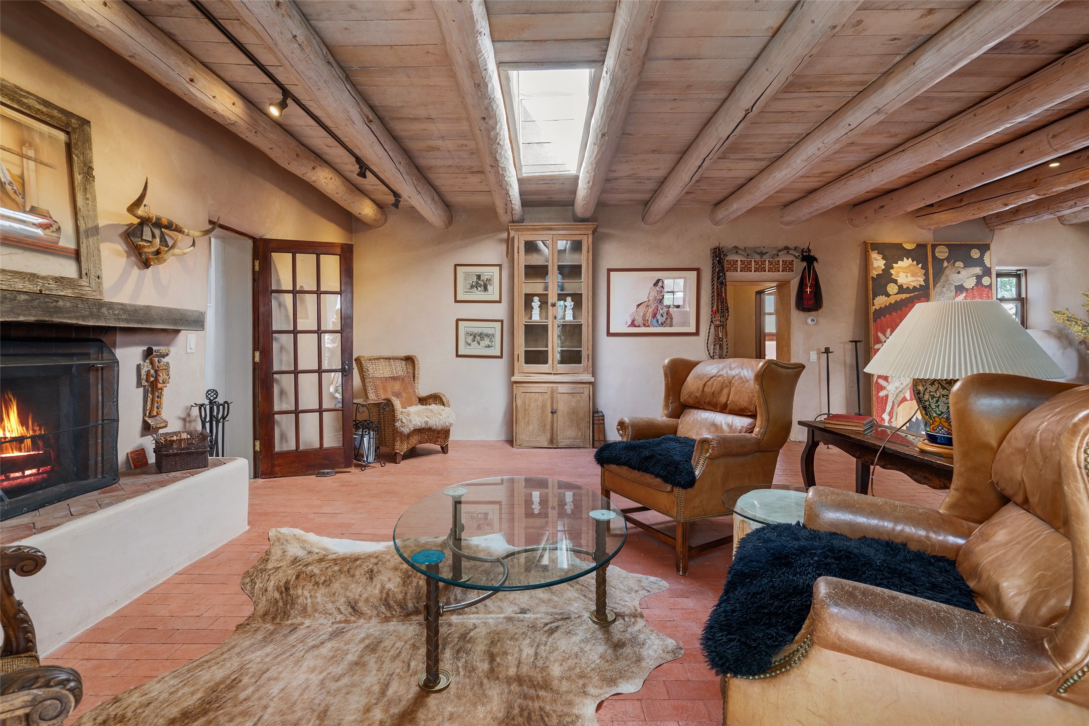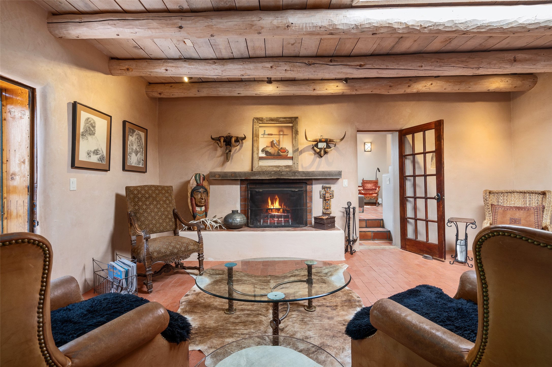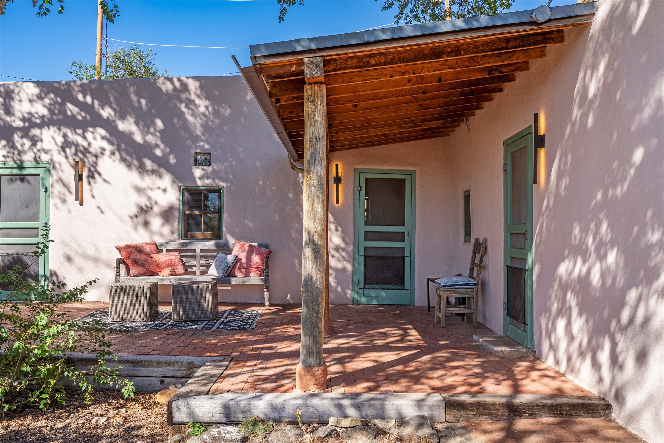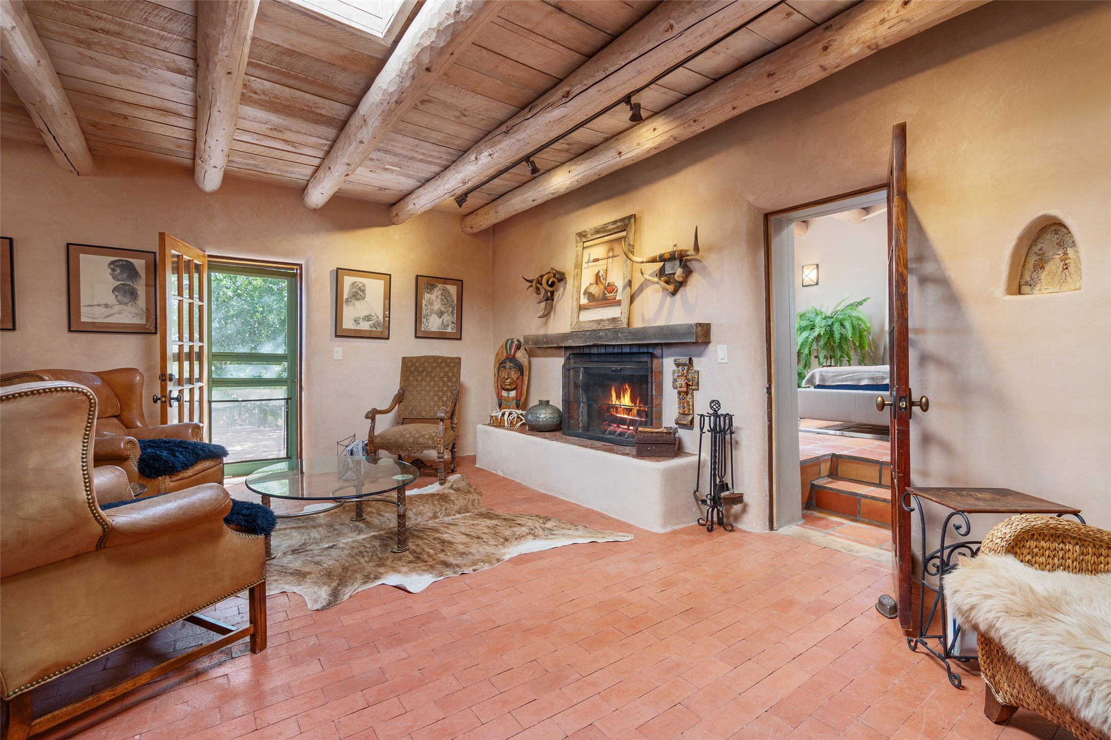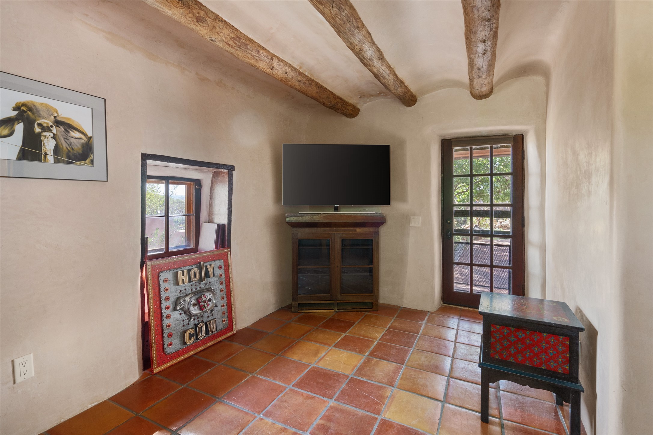 Step into a rare piece of New Mexico history with this authentic adobe home, originally built in the 1800s and beautifully renovated in 2016. Blending timeless Southwestern character with modern comforts, this 2-bedroom, 2.5-bath residence offers a truly one-of-a-kind living experience.Classic architectural details abound--hand-hewn vigas, plaster walls, nichos, brick and Saltillo tile floors, and artistically hand-painted doors showcase the craftsmanship of another era. The home's thoughtful renovation preserved these historic elements while seamlessly integrating updates for today's lifestyle.The gourmet kitchen is a centerpiece, featuring a farmhouse sink, honed marble countertops, Wolf range/oven, Fisher & Paykel refrigerator, KitchenAid dishwasher, and custom cabinetry.Outside, a charming courtyard offers stunning views over the historic village of Galisteo, creating a serene and inspiring retreat. Significant historic ruins on the property add depth and authenticity, connecting you to the story of the land.This home is a rare opportunity to own a piece of Galisteo's rich past while enjoying the comforts of a tasteful, modern renovation.