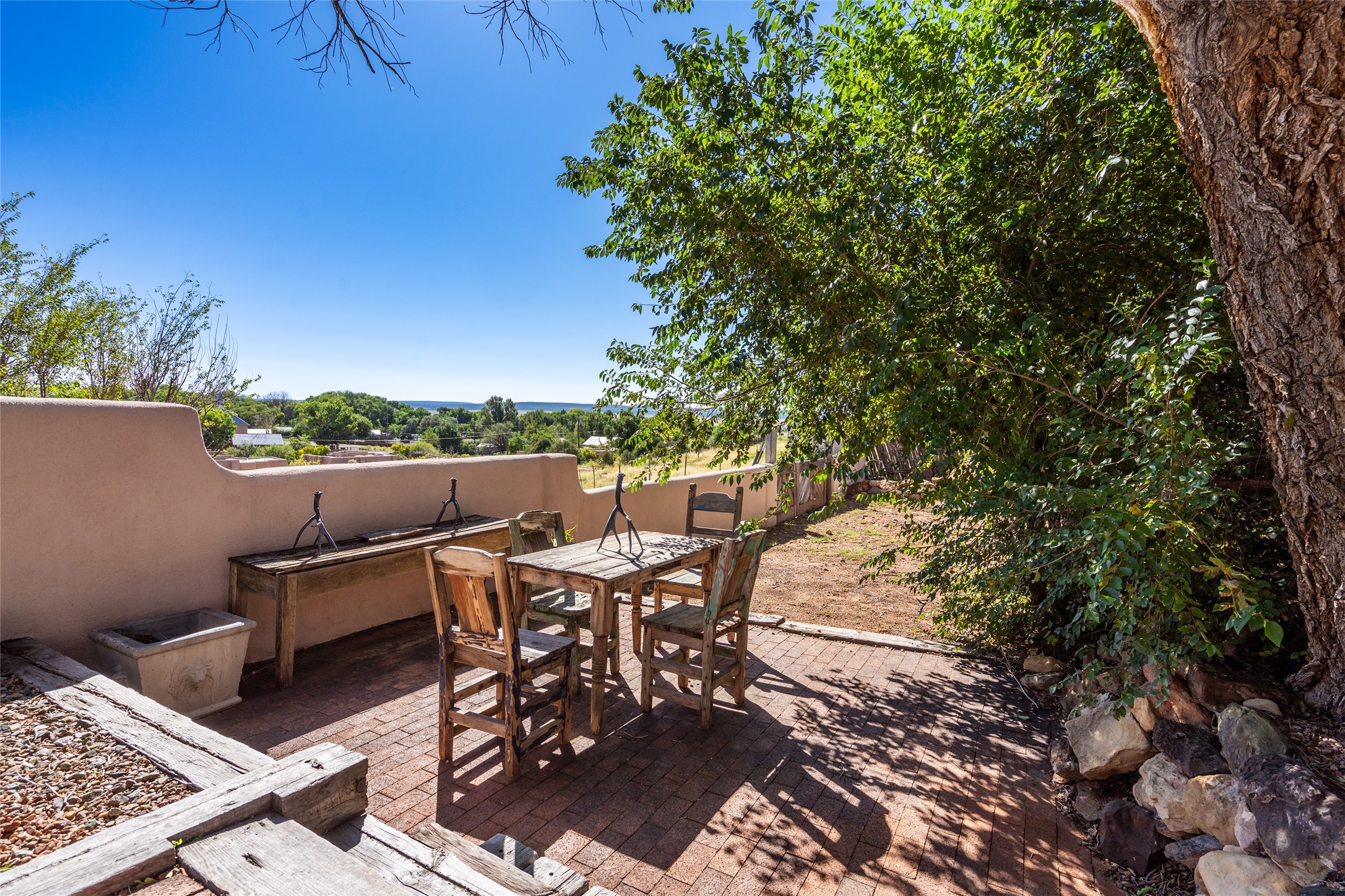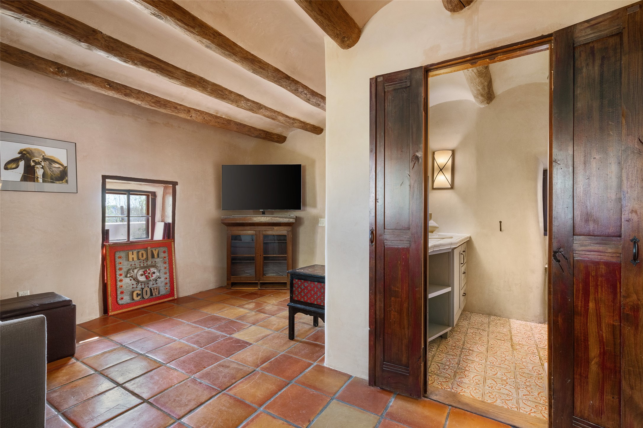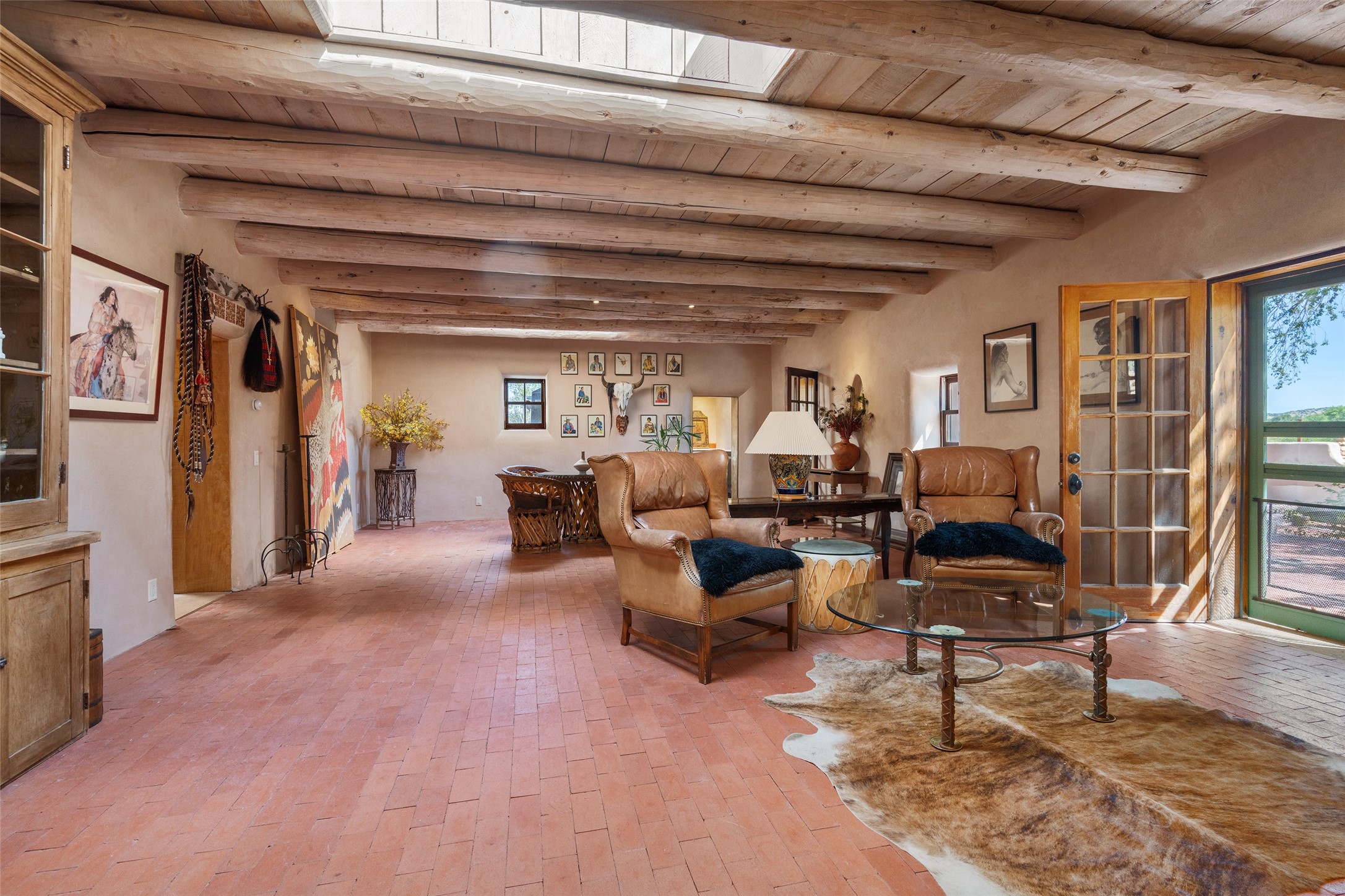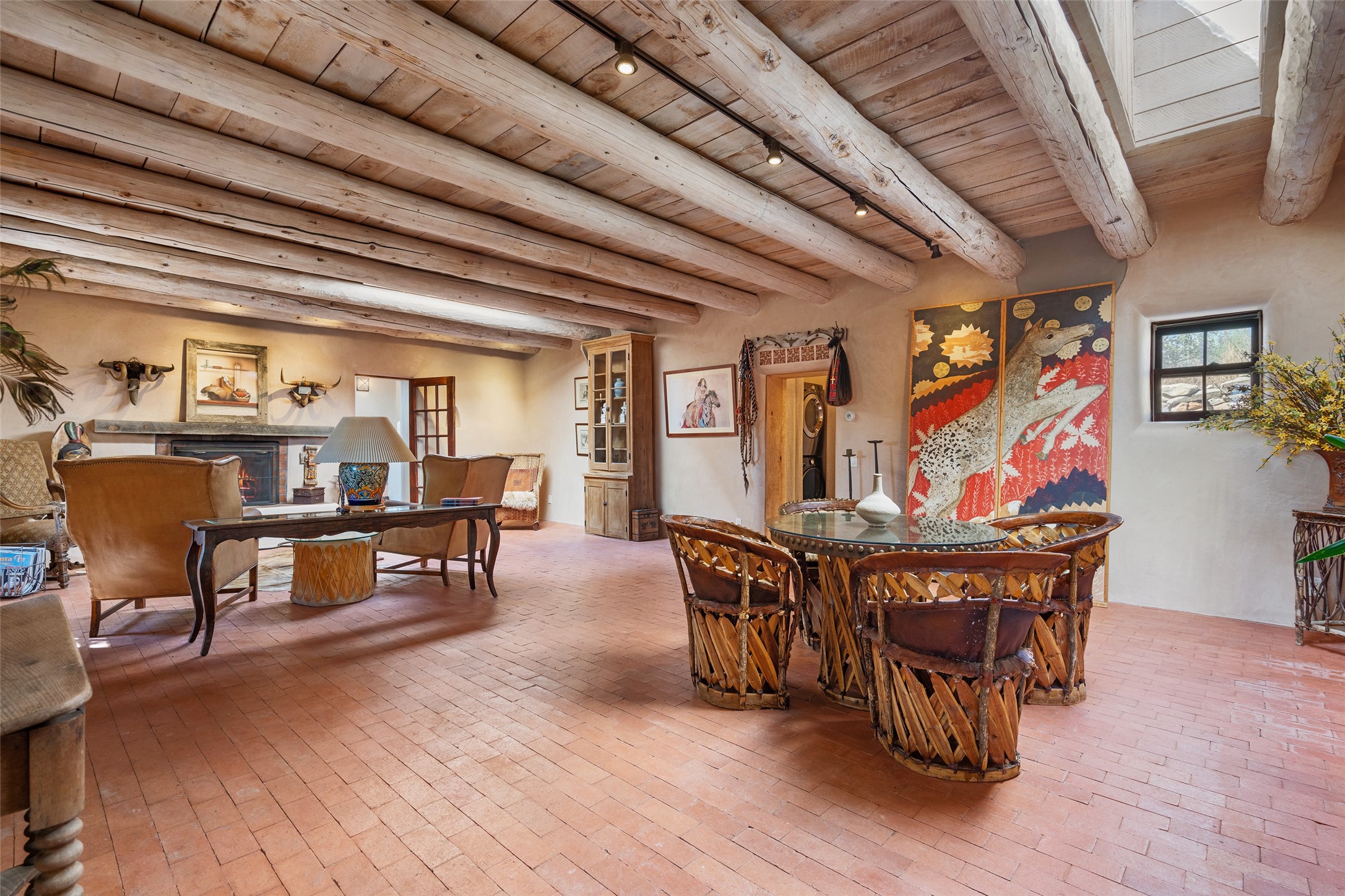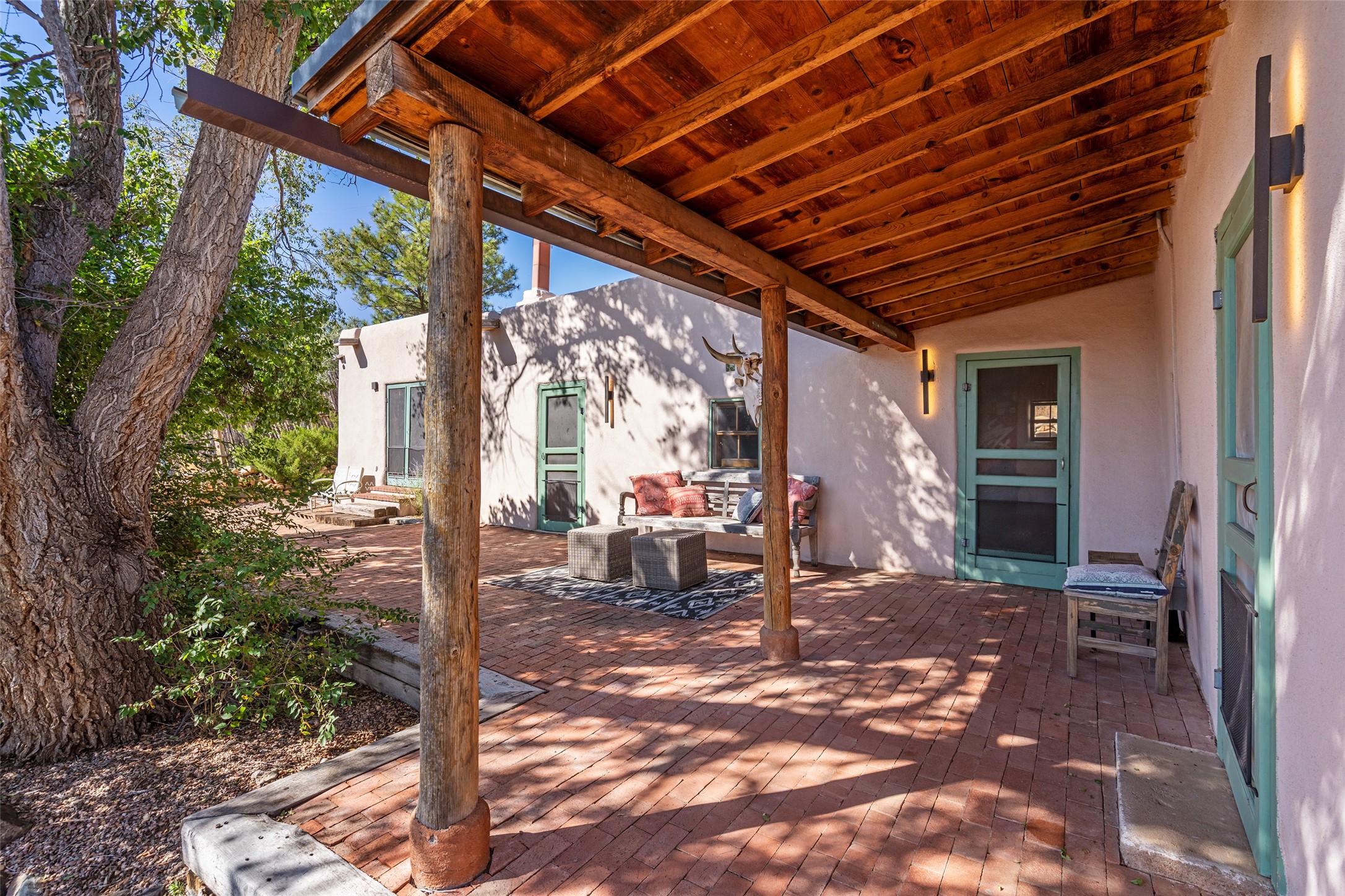 Step into a rare piece of New Mexico history with this authentic adobe home, originally built in the 1800s and beautifully renovated in 2016. Blending timeless Southwestern character with modern comforts, this 2-bedroom, 2.5-bath residence offers a truly one-of-a-kind living experience.Classic architectural details abound--hand-hewn vigas, plaster walls, nichos, brick and Saltillo tile floors, and artistically hand-painted doors showcase the craftsmanship of another era. The home's thoughtful renovation preserved these historic elements while seamlessly integrating updates for today's lifestyle.The gourmet kitchen is a centerpiece, featuring a farmhouse sink, honed marble countertops, Wolf range/oven, Fisher & Paykel refrigerator, KitchenAid dishwasher, and custom cabinetry.Outside, a charming courtyard offers stunning views over the historic village of Galisteo, creating a serene and inspiring retreat. Significant historic ruins on the property add depth and authenticity, connecting you to the story of the land.This home is a rare opportunity to own a piece of Galisteo's rich past while enjoying the comforts of a tasteful, modern renovation.