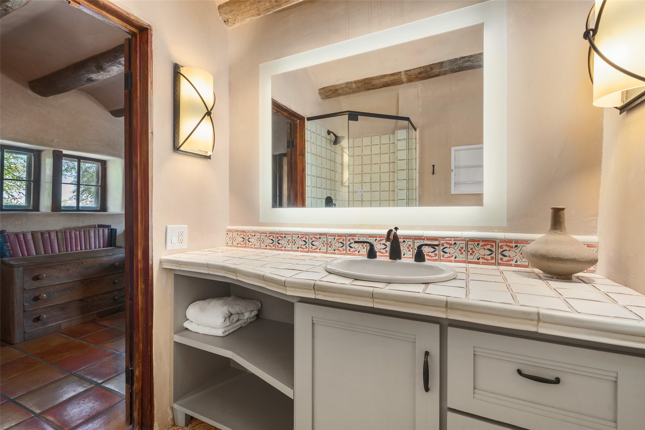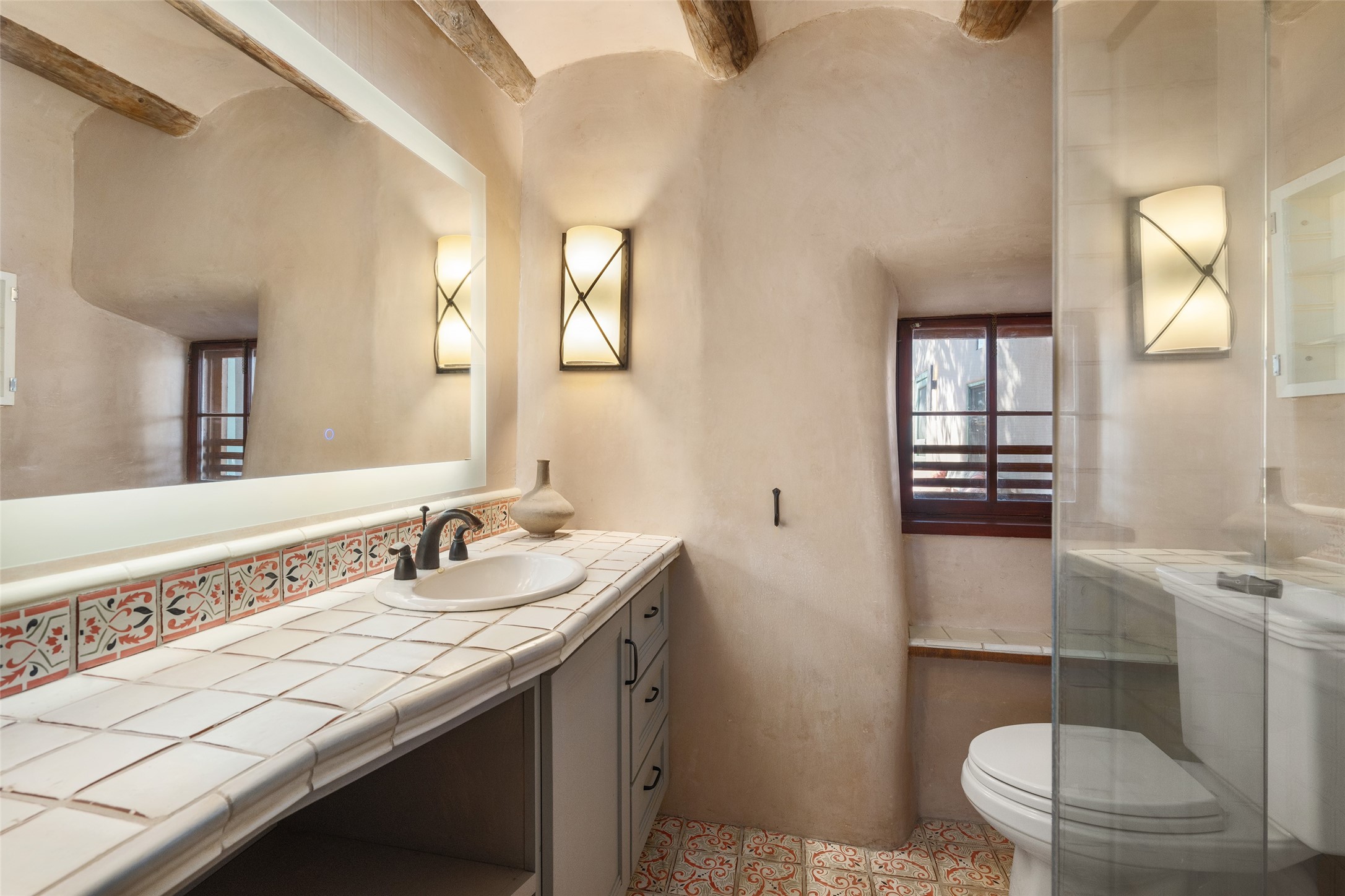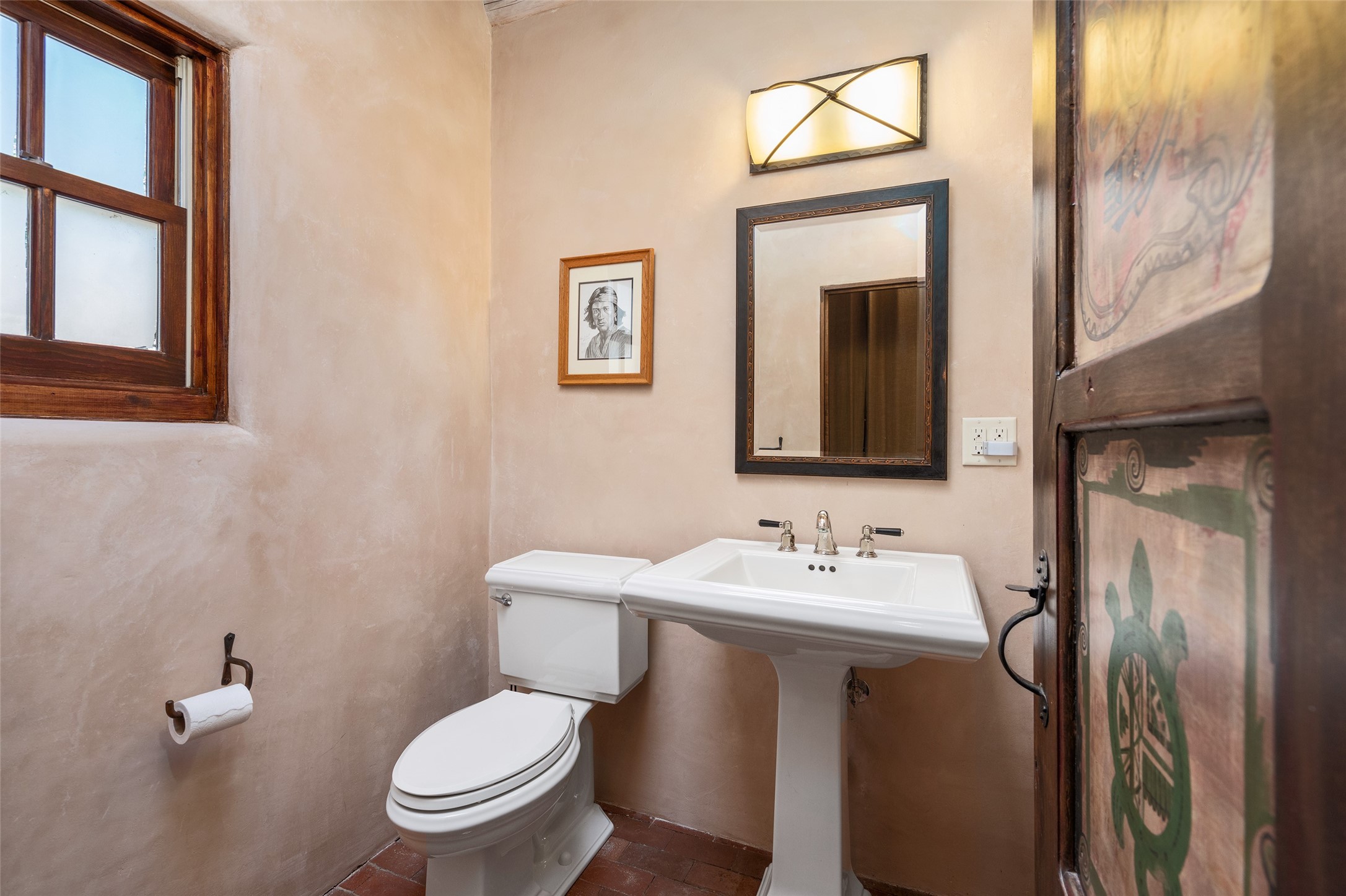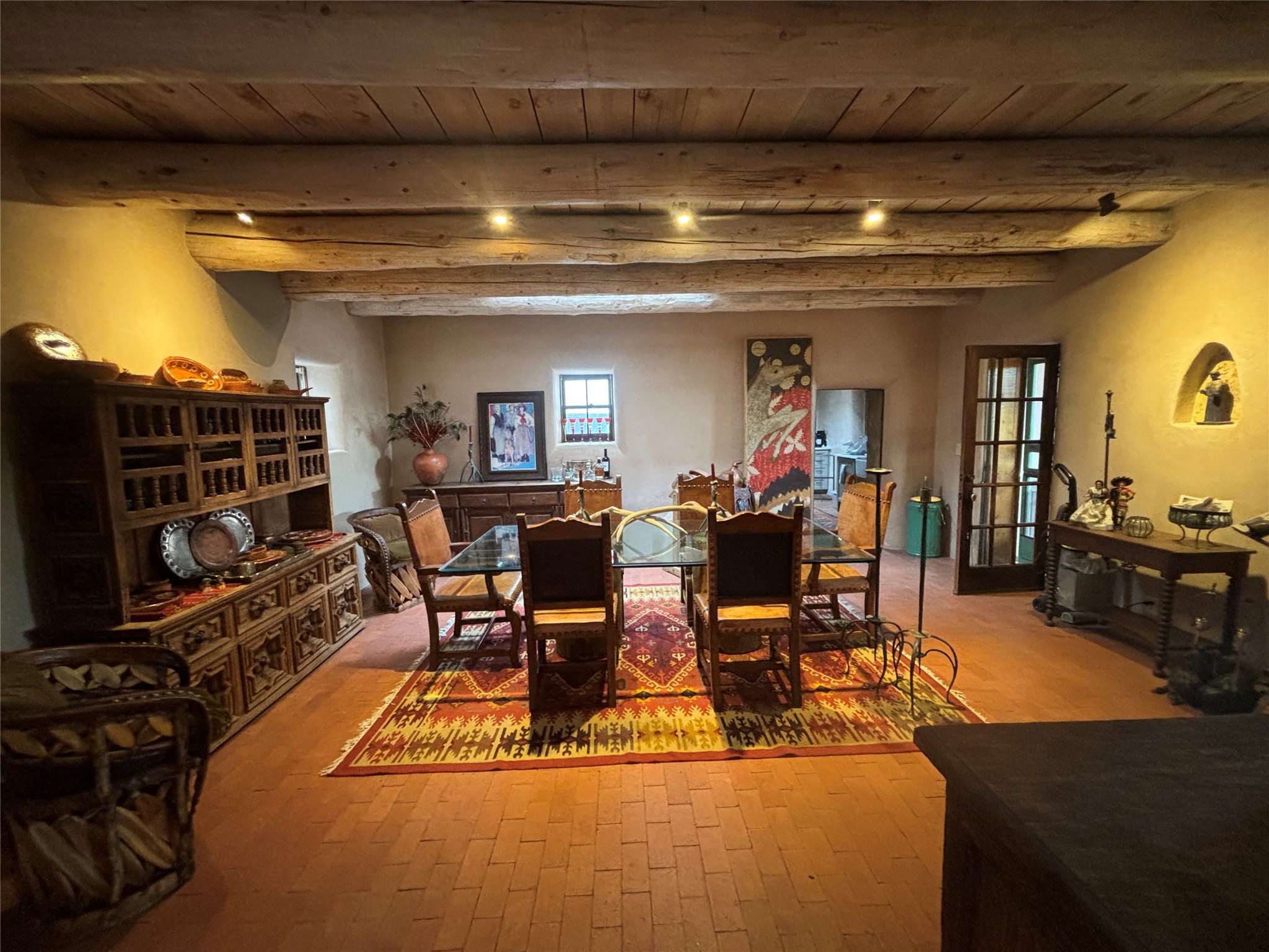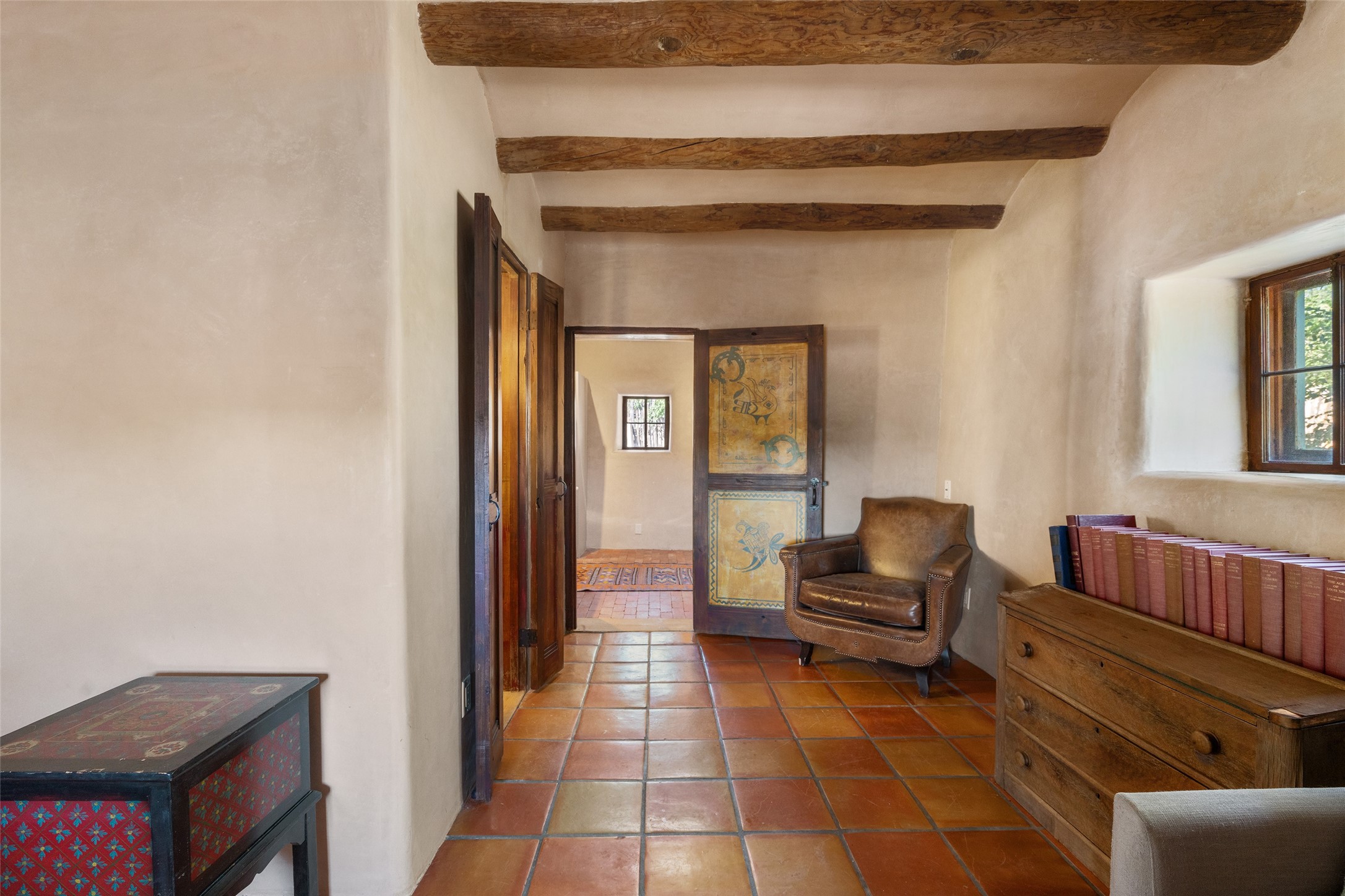 Step into a rare piece of New Mexico history with this authentic adobe home, originally built in the 1800s and beautifully renovated in 2016. Blending timeless Southwestern character with modern comforts, this 2-bedroom, 2.5-bath residence offers a truly one-of-a-kind living experience.Classic architectural details abound--hand-hewn vigas, plaster walls, nichos, brick and Saltillo tile floors, and artistically hand-painted doors showcase the craftsmanship of another era. The home's thoughtful renovation preserved these historic elements while seamlessly integrating updates for today's lifestyle.The gourmet kitchen is a centerpiece, featuring a farmhouse sink, honed marble countertops, Wolf range/oven, Fisher & Paykel refrigerator, KitchenAid dishwasher, and custom cabinetry.Outside, a charming courtyard offers stunning views over the historic village of Galisteo, creating a serene and inspiring retreat. Significant historic ruins on the property add depth and authenticity, connecting you to the story of the land.This home is a rare opportunity to own a piece of Galisteo's rich past while enjoying the comforts of a tasteful, modern renovation.