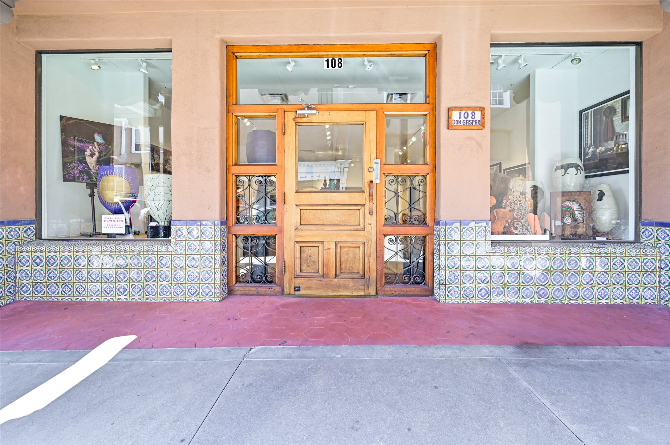 Rare opportunity! A beautifully designed gallery/retail space perfectly positioned just off the Santa Fe Plaza, directly along the path of high visitor traffic. Featuring high ceilings and newly finished hardwood floors with track lighting throughout, private upstairs office, restroom with large work sink, this space offers both sophistication and functionality. The expansive finished basement provides ample storage and includes a private employee restroom. Convenient loading zones are available at both the front and rear of the property. With excellent visibility, generous storage for inventory and supplies, and a light-filled showroom. Don't miss the opportunity to establish your gallery or retail presence in one of Santa Fe's most desirable and highly trafficked locations.