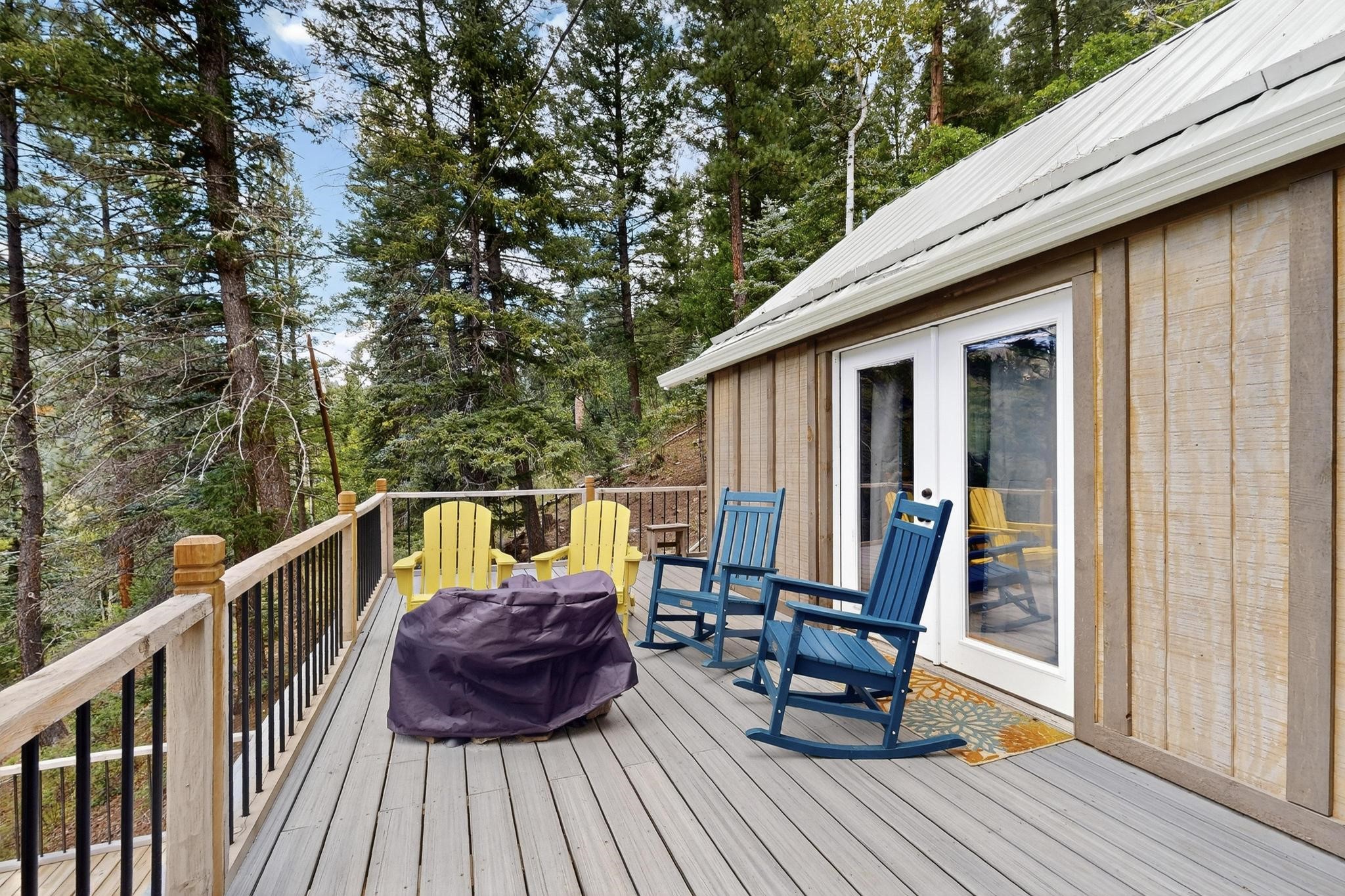 Nestled in the heart of the Santa Fe National Forest, Vida Bonita Pecos offers the perfect blend of comfort and remote wilderness. Located just steps away from the world-famous Pecos River, tranquil Cowles ponds and scenic trails. This fully renovated hospitality property offers 4 deeded parcels being sold as one Estate consisting of 4 cabins: The Ponderosa (Main cabin) 3 stories, 6 bedrooms, 4 bathrooms. Laundry on main and lower level. The Collins Cabin (original home) 3 story, 2 bed 2 baths, full walk out basement with laundry could be additional living space with own entry. The Charming Tiny Cabin conversion sleeps 2, also with a new deck. The Crestview 2 story, 3 bedrooms, 3 baths. 2 additional loft sleeping areas, laundry and private fishing pond. Twin Pines (duplex) 1 bed 1 bath each unit w/ kitchenette. Green house and storage. Vintage "glamping Camper" Sleeps 3, new decking and water and electric. Vida Bonita Pecos is the perfect city escape that blends rustic charm with modern convenience. All beautifully furnished and guest ready. Two high-yield wells, four septic systems, new decks, upgraded kitchens and baths, landscaped grounds, and private trails. Currently marketed on Airbnb/VRBO with repeat guests and established local university and athletic partnerships. Vida Bonita Pecos offers immediate income and growth potential as a boutique resort, family compound, or executive retreat center. Rare turnkey opportunity to own a thriving mountain getaway with proven revenue and limitless possibilities.