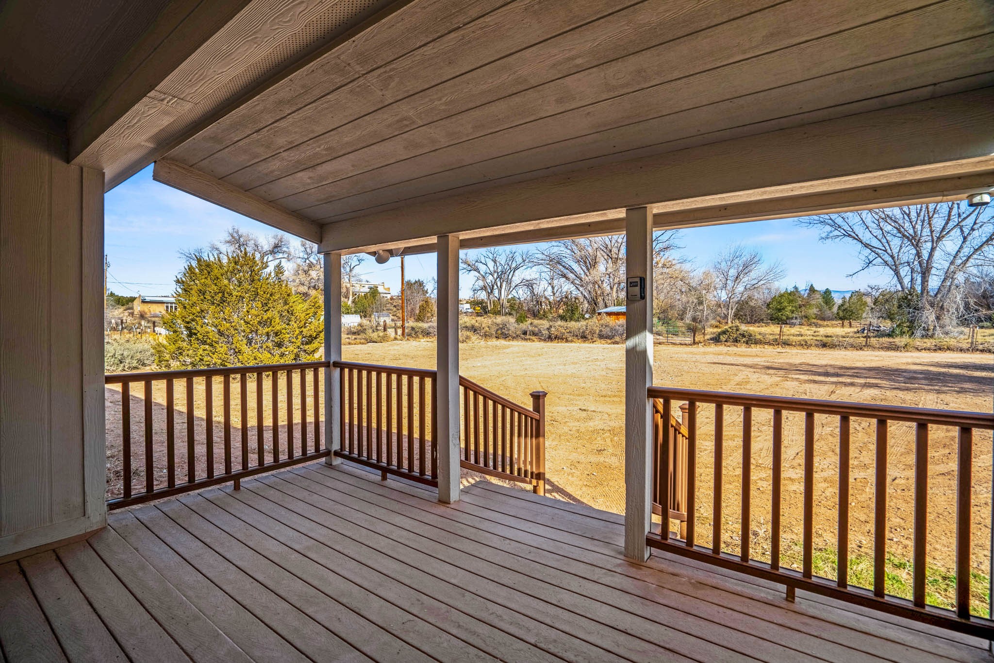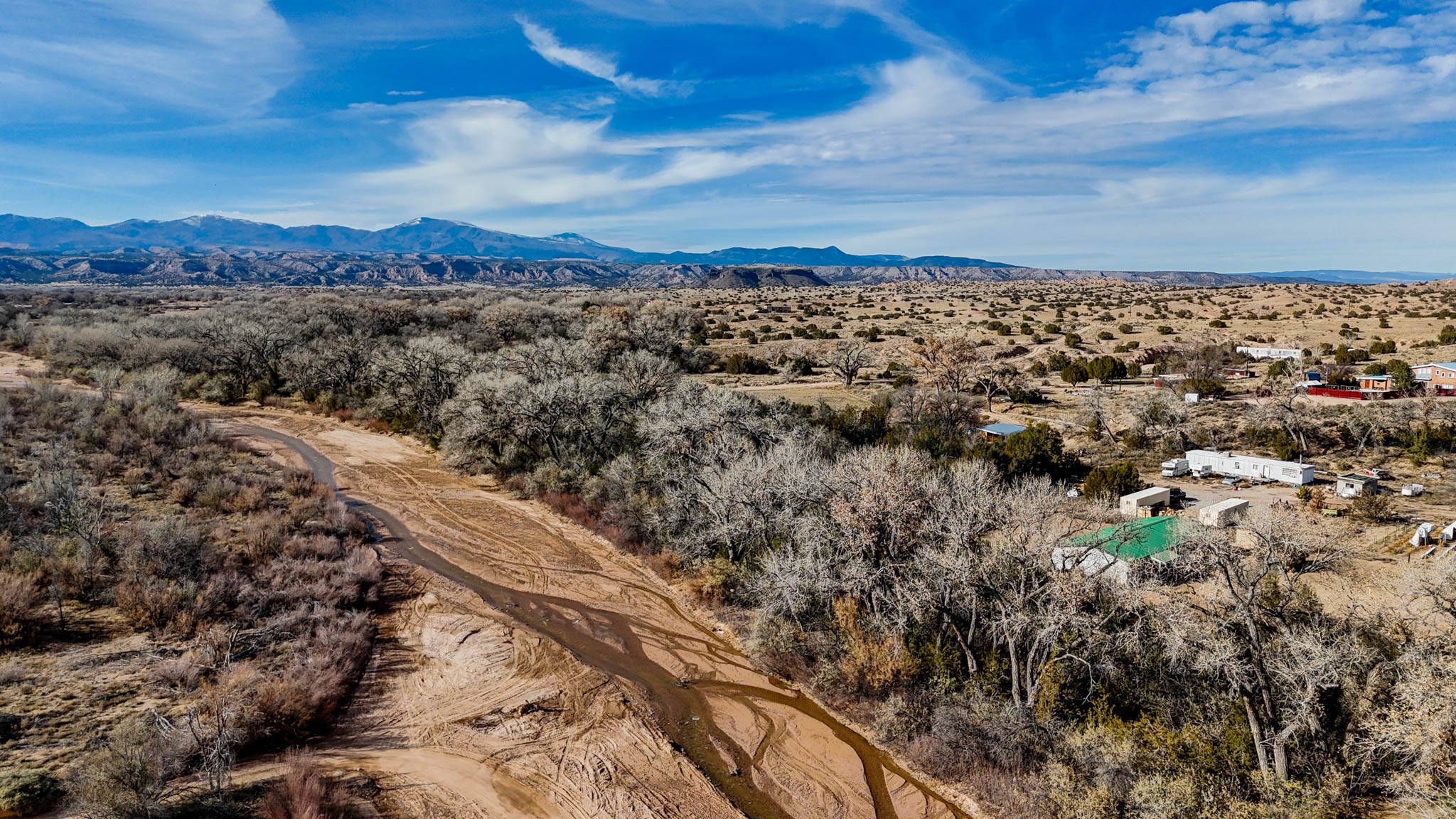 Beautiful modular home among lush cottonwoods offers a serene escape with ample privacy. Plenty of space for your dream projects in both the back and front yards, and ample parking for vehicles and recreational. 10 x10 storage shed. Ideally situated near the river and Jacona Land Grant. Well and irrigation rights, plus a reverse osmosis water system, you have all the essentials for country living- open-concept living space filled with natural light. Enjoy the tranquility of country life without sacrificing convenience with easy access to Los Alamos, Santa Fe, and Espanola. Incredible opportunity to embrace a peaceful lifestyle in a natural setting!