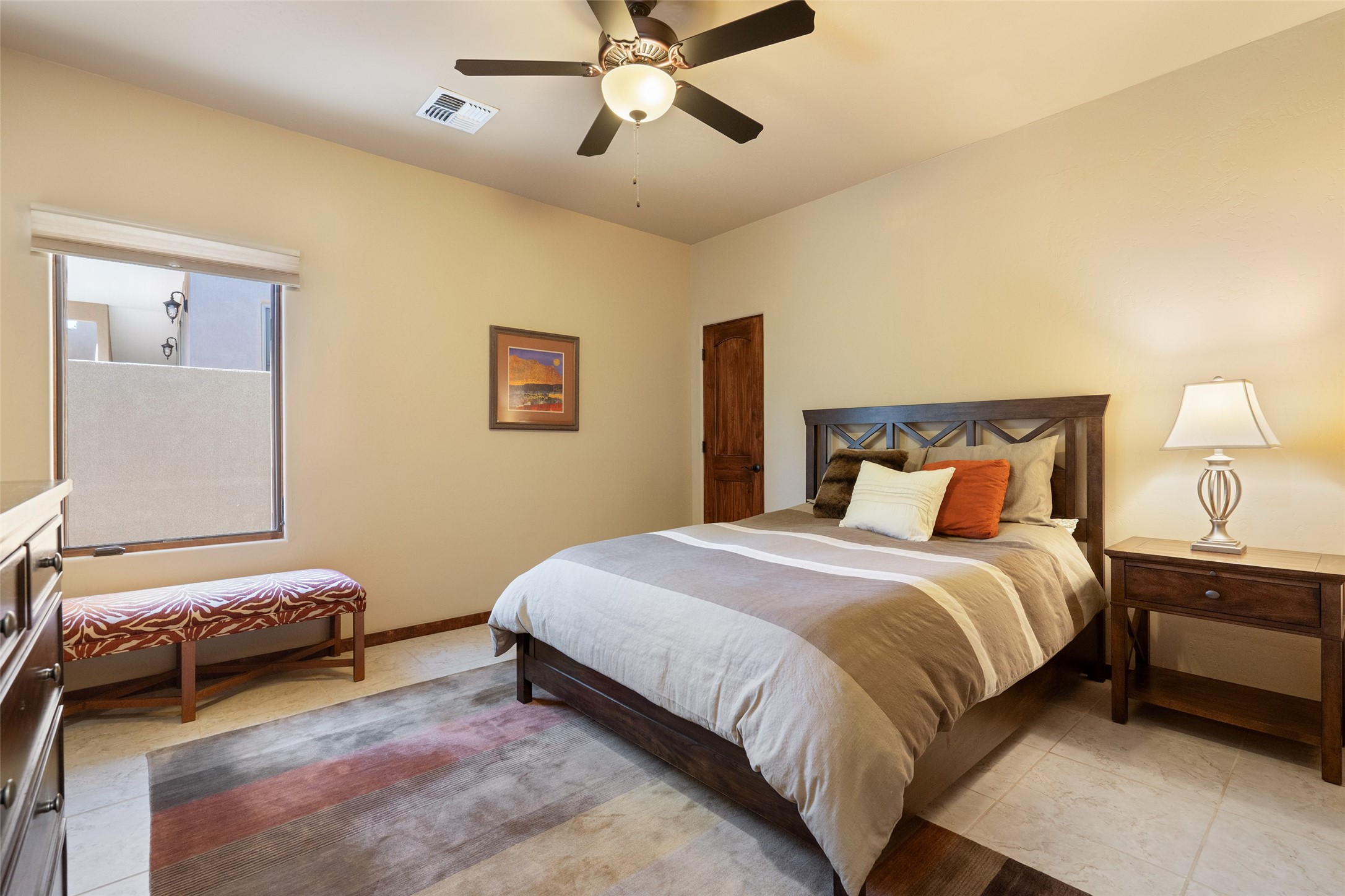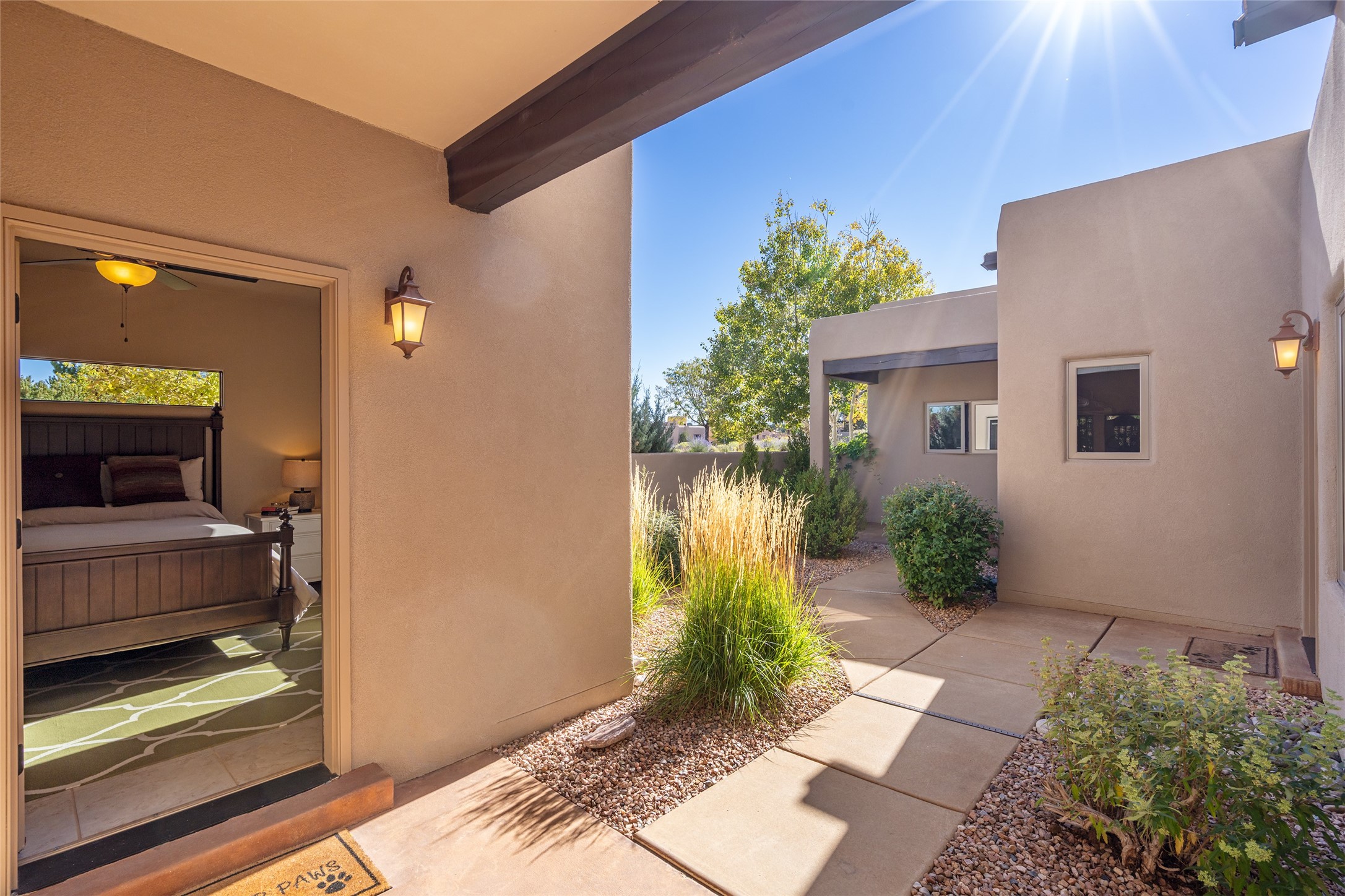 EASY ELEGANCE IN LAS CAMPANAS. Built in 2014 by Rachel Matthews, this 4-bedroom, 4-bath residence with detached guest casita feels practically new; a rare find in the Los Santeros Villas, offering both the ease of lock-and-leave lifestyle and the comfort of a primary residence. The main home spans approximately 2,106 sqft, complemented by a 274 sqft casita, each space designed with privacy, flexibility, and everyday living in mind. The primary suite and one guest room are located on the main level, while a versatile upstairs bedroom or office opens to an observation deck - perfect for morning coffee with Sangre de Cristo Mountain views or stargazing under Las Campanas' protected night skies. The detached casita, complete with its own bedroom and bath, provides ideal accommodations for visitors or a private studio retreat. Warm interiors feature two gas Kiva fireplaces, abundant natural light, and central heating and cooling for year-round comfort. A gated courtyard with low-maintenance landscaping creates a welcoming entry, while a two-car garage and HOA security patrols add peace of mind. This sparkling single-owner home has been carefully maintained and offers timeless Santa Fe style with the flexibility to serve as either a secure getaway or a full-time residence in one of Santa Fe's most desirable communities.