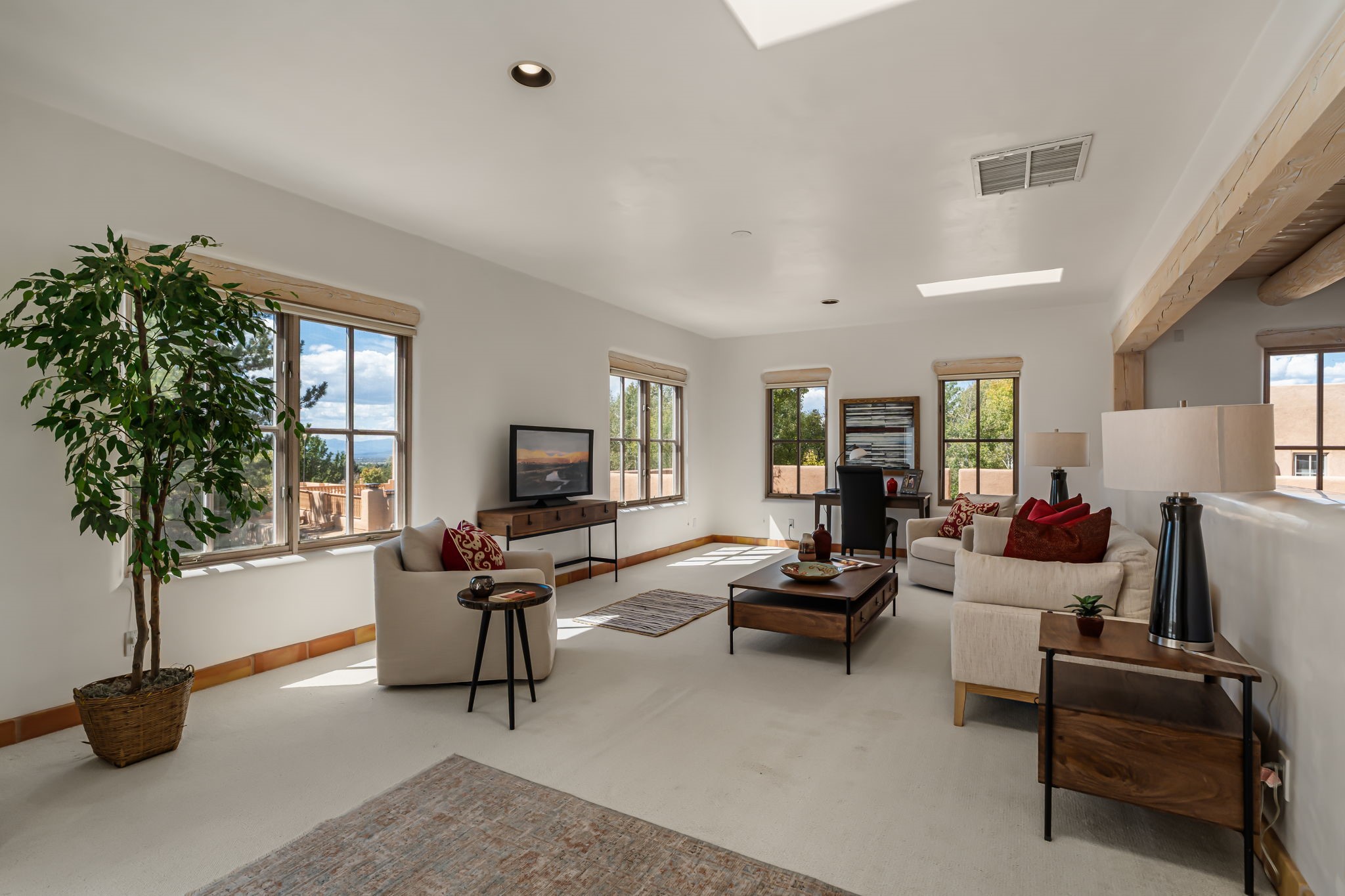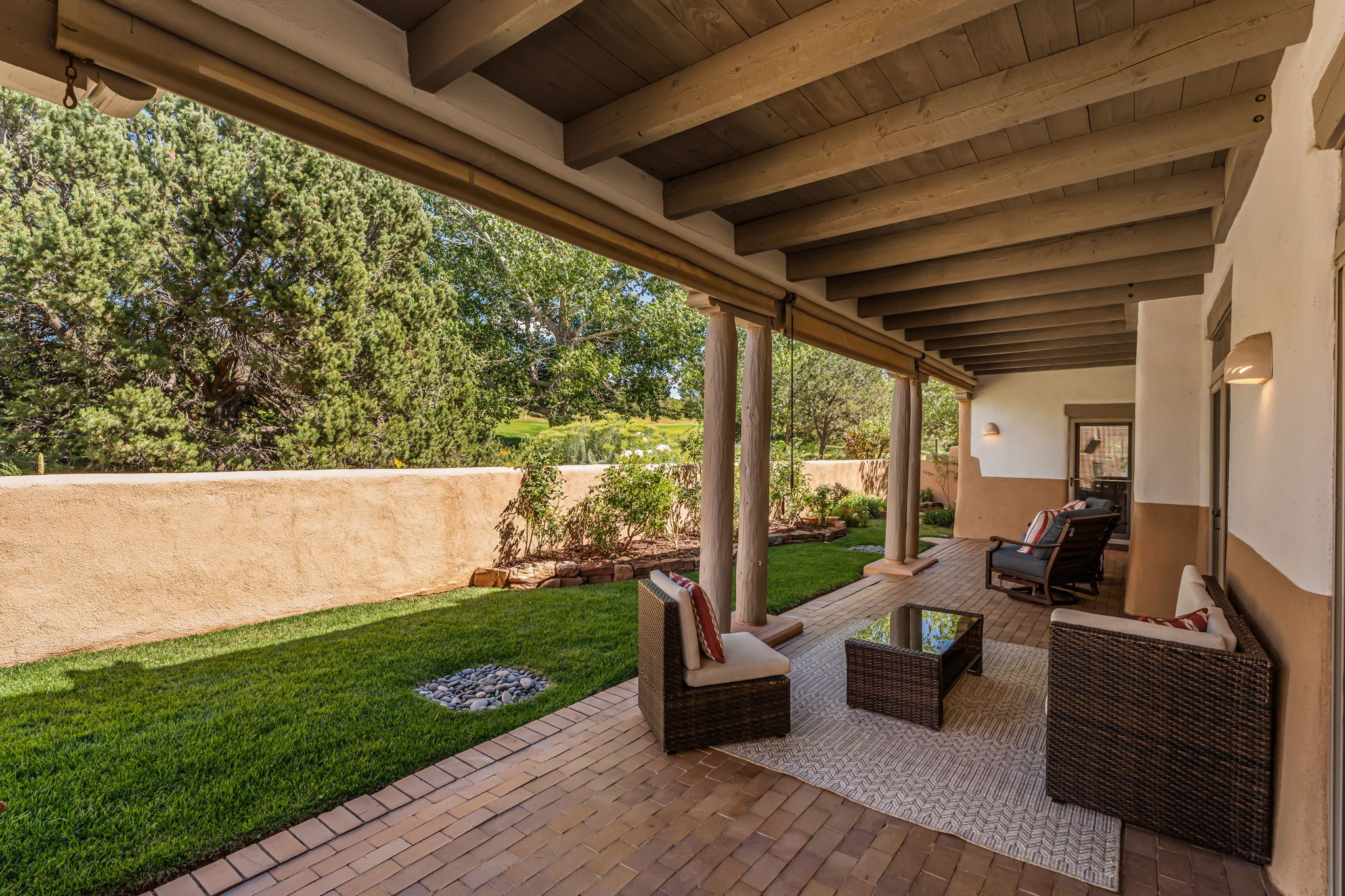 One of the larger and more beautiful freestanding homes available in Quail Run, unit 632 is bathed in natural light from the double-height ceilings facing east toward the Sangre de Cristo Mountains. This particular unit has 3 very generous bedrooms, each with its own bathroom, in addition to a powder room available to guests.The living room accommodates a grand piano or multiple seating areas, and is complemented by an adjacent library with custom-built bookshelves.The kitchen features an updated appliance wall with high-end built-ins, including a Sub-Zero refrigerator with bottom drawer freezer. Custom shelving maximizes storage in the walk-in pantry. The generous master bedroom with its own door out to the east portal, has a soaking tub and two walk-in closets in its en-suite bathroom.The second downstairs bedroom includes a retrofitted accessible bathtub - ideal for guests or aging in place.Upstairs, a spacious loft area overlooks the living room and leads to a private bedroom, full bath, and a balcony perfect for sunset viewing.The main east portal has a bank of established rose bushes producing an abundance of blooms that can be cut for bouquets. With access to the kitchen area, French doors to the living room, and a sliding door into the master bedroom, the main portal is large enough for multiple sitting or eating areas.The west patio is a custom designed Zen garden with enough space to sit or eat under a traditional southwest portal. A beautiful house with all the amenities that Quail Run has to offer: a clubhouse with extensive exercise rooms, equipment, and classes, a swimming pool for laps and a warm therapy pool, two hot tubs, entertainment, restaurant, activities, golf, tennis and pickle ball courts, maintenance crew on call, housekeeping services available, all exterior maintenance taken care of.Come see this particular unit - everyone who does loves it for its space, light, and orientation within the Quail Run community.