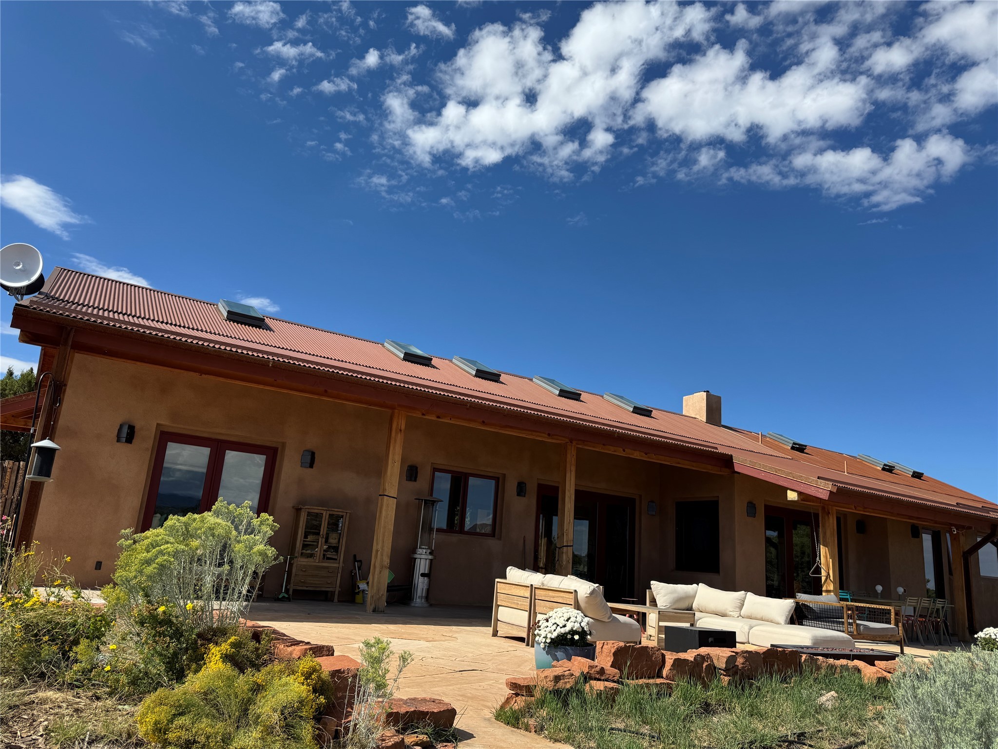 GET READY TO FALL IN LOVE WITH THIS DREAMY MODERN RANCH ON 25 ACRES:21 Cattle Drive is the kind of place that feels like a unicorn - rare, enchanting, and totally magical. This home has it all: space, style, and some seriously stunning views. It's just a short drive from downtown Santa Fe, but feels like your own private sanctuary.BIG, BRIGHT, OPEN: With over 3,000 sq. ft., this home gives you plenty of room to spread out. You've got 2 spacious ensuite bedrooms and 1 flex room currently being used as an additional bedroom. Perfect for hosting family and friends.DREAMY LIVING SPACES: The open living area has it's own special vibe, with natural light pouring in, gorgeous, modern, polished walls, and wood beams that give it that true Santa Fe charm. Plus, the kiva fireplace is perfect for cozy nights in.KITCHEN GOALS: If you love to cook or entertain, this Chef's Kitchen will make you feel like a pro. High-end stainless steel appliances, tons of counter space, and epic mountain views - it's all you need.OUTDOOR OASIS: Step outside, and you're in an enchanting portal, with stunning mountain views and beautiful landscaping that feels like a little piece of heaven.ENERGY EFFICIENT with GEO THERMAL COMFORT: This home is not only eco-friendly but offers year-round comfort with a Geo-Thermal heating and cooling system. The system is super efficient, ensuring your home stays perfectly cozy in the winter and cool in the summer, all while keeping energy costs low. (see PDF in MLS documents for more info)EQUESTRIAN DREAM: For horse lovers, this property includes a 3-stall horse barn complete with a wash bay and hay barn with storage capacity of up to 350 bales. This property is a perfect fit for anyone looking to keep their equine companions at home. The barn is well-maintained and ready to house your horses in comfort, to live their best lives in this beautiful setting.
