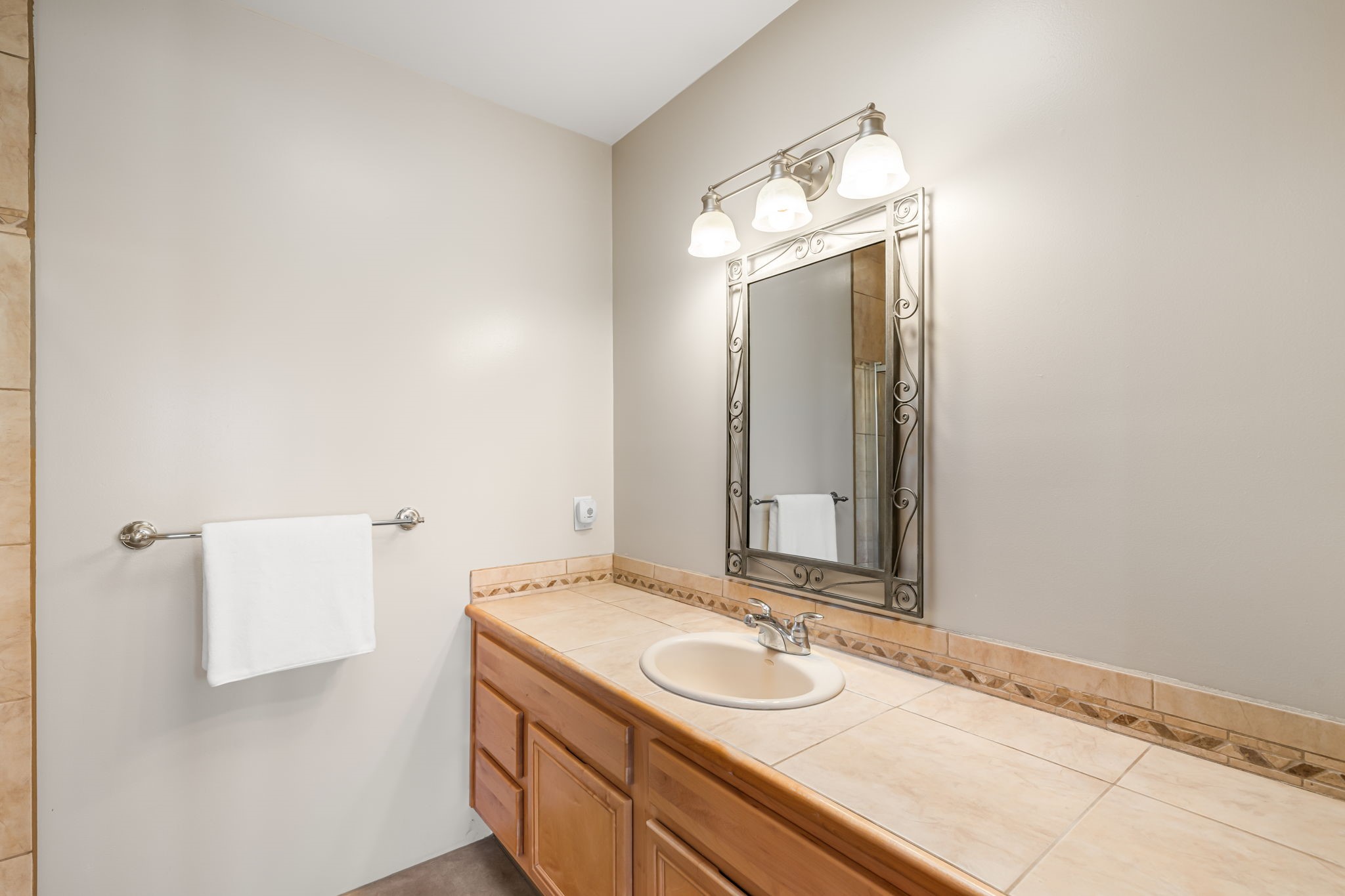 RARE OFFERING IN SPIRIT WIND RANCH! This single-level, passive-solar beauty offers long-range mountain views and privacy. Sited on 5 acres overlooking the Galisteo Basin, Sandia and Ortiz mountains. Radiant heat tubing is WIRSBO. Wonderful kitchen has Taj Mahal counters, bar with seating, two pantries, high-end stainless steel appliances and seating area. Living area has beautiful viga ceilings and wood-burning kiva fireplace. Primary bedroom has a gas fireplace and doors to rear portal. Bath has double sinks, jetted tub, separate shower and walk-in closet. Spacious office/studio space with en-suite 3/4 bath and separate entrance. Property has been pre-inspected and all repairs have been made. Inspection report available on request. Walled front courtyard is on drip with freshly painted gate. Proper laundry with sink and storage. Insulated blinds are all on a remote. Oversized and finished 2-car garage. NO KITEC. NO STEPS. Whole house water filtration - Aguasana. HOA has contract with Farrellgas for reduced rates. Septic has been inspected and lot corners are flagged.