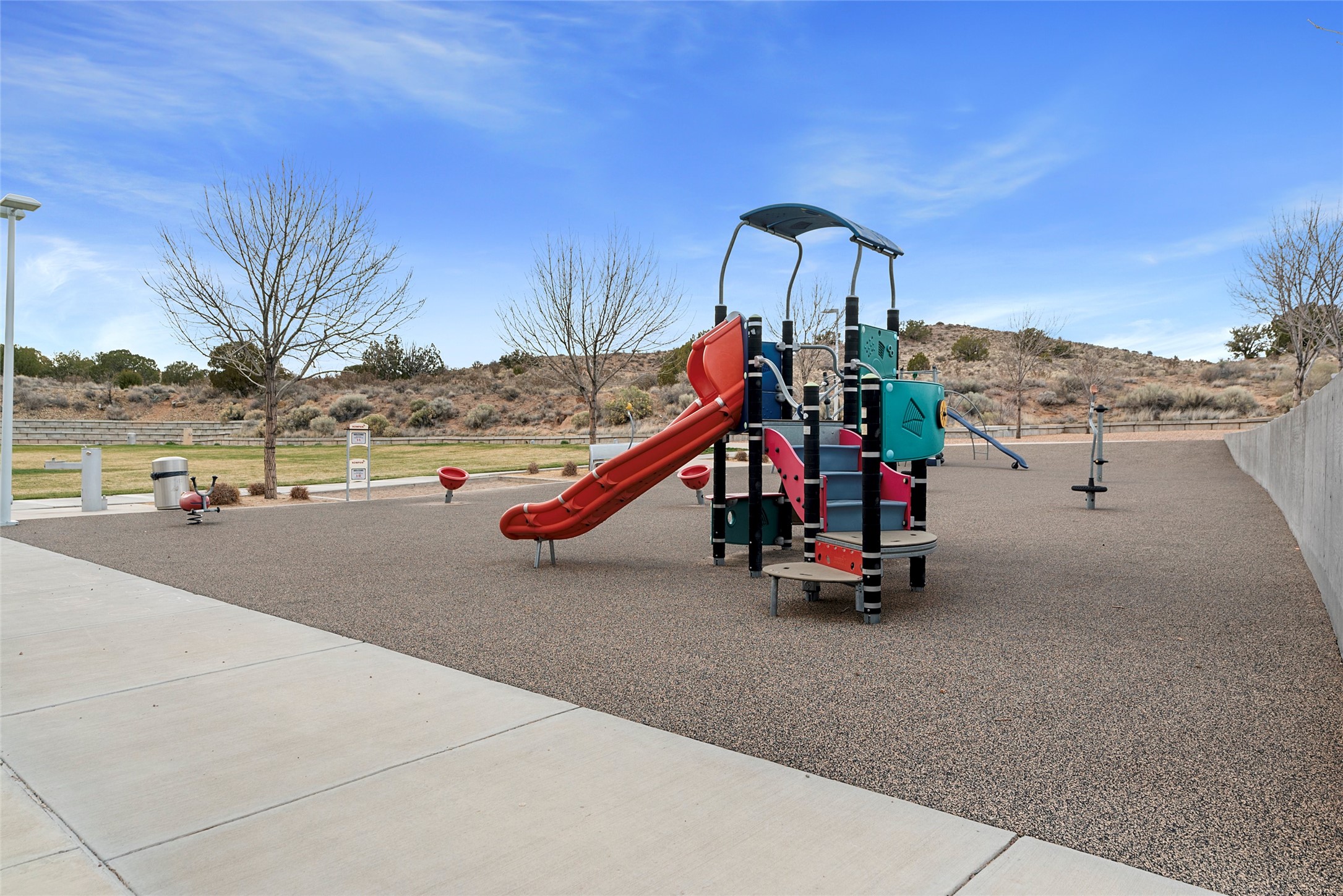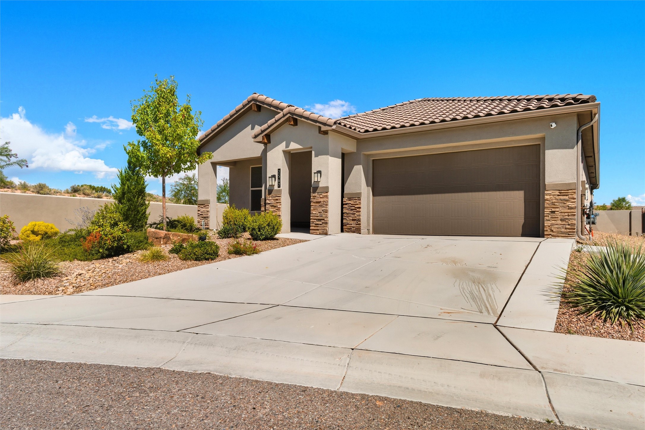Discover luxury and comfort in this stunning single-story Hakes Brothers home tucked away at the end of a cul-de-sac. Just 3 minutes to Unser and under 20 minutes to I-25, this 4-bedroom, 2-bathroom home offers both convenience and elegance. The community features a park, pool, and outdoor water feature, with the fire department only 2 minutes away. The exterior showcases stacked stone accents and a custom metal entry gate. Inside, soaring 7-foot doors and an open floor plan set the tone. The gourmet kitchen includes a walk-in pantry, gas cook top, large island, and flows seamlessly into the living area, while the split primary suite ensures privacy. Step outside to your backyard retreat on a nearly -acre lot with no rear neighbors. Enjoy a large covered patio designed for entertaining with a built-in griddle, 5' gas fireplace, oversized 80'' fan, and a fully automated commercial-grade screen system that blocks sun and wind for year-round comfort and privacy. Additional features include a 220-volt EV outlet in the garage, a fully paid-off solar system, and over $160,000 in custom upgrades that make this home stand out. At only 3 years old, this home truly has it all! Schedule your walk through today!!!