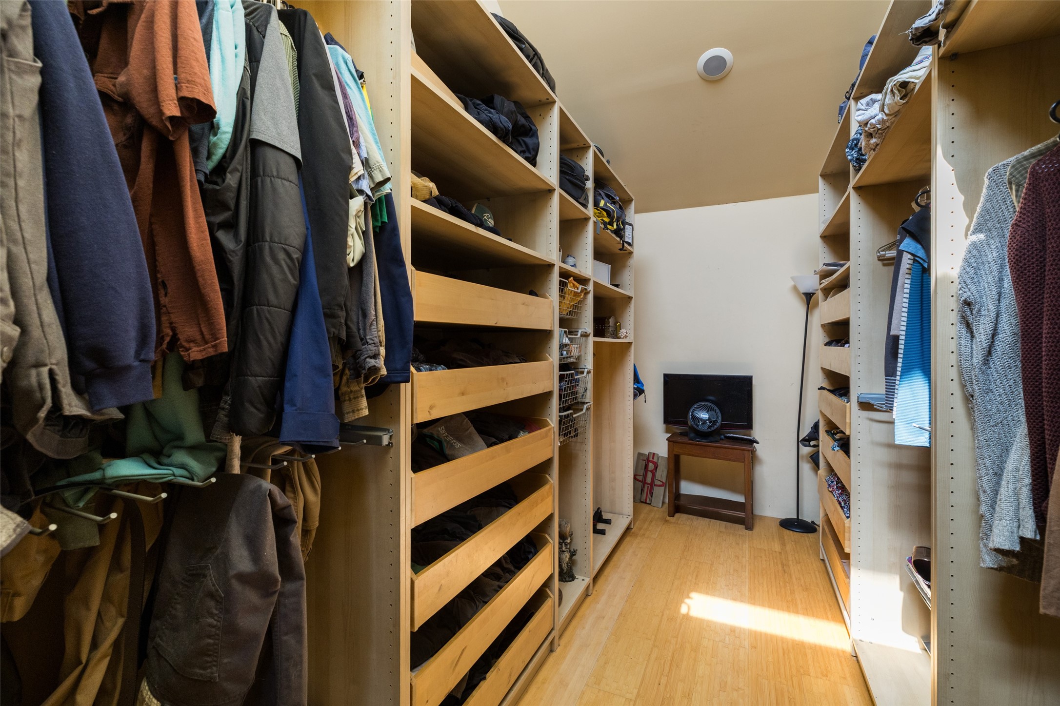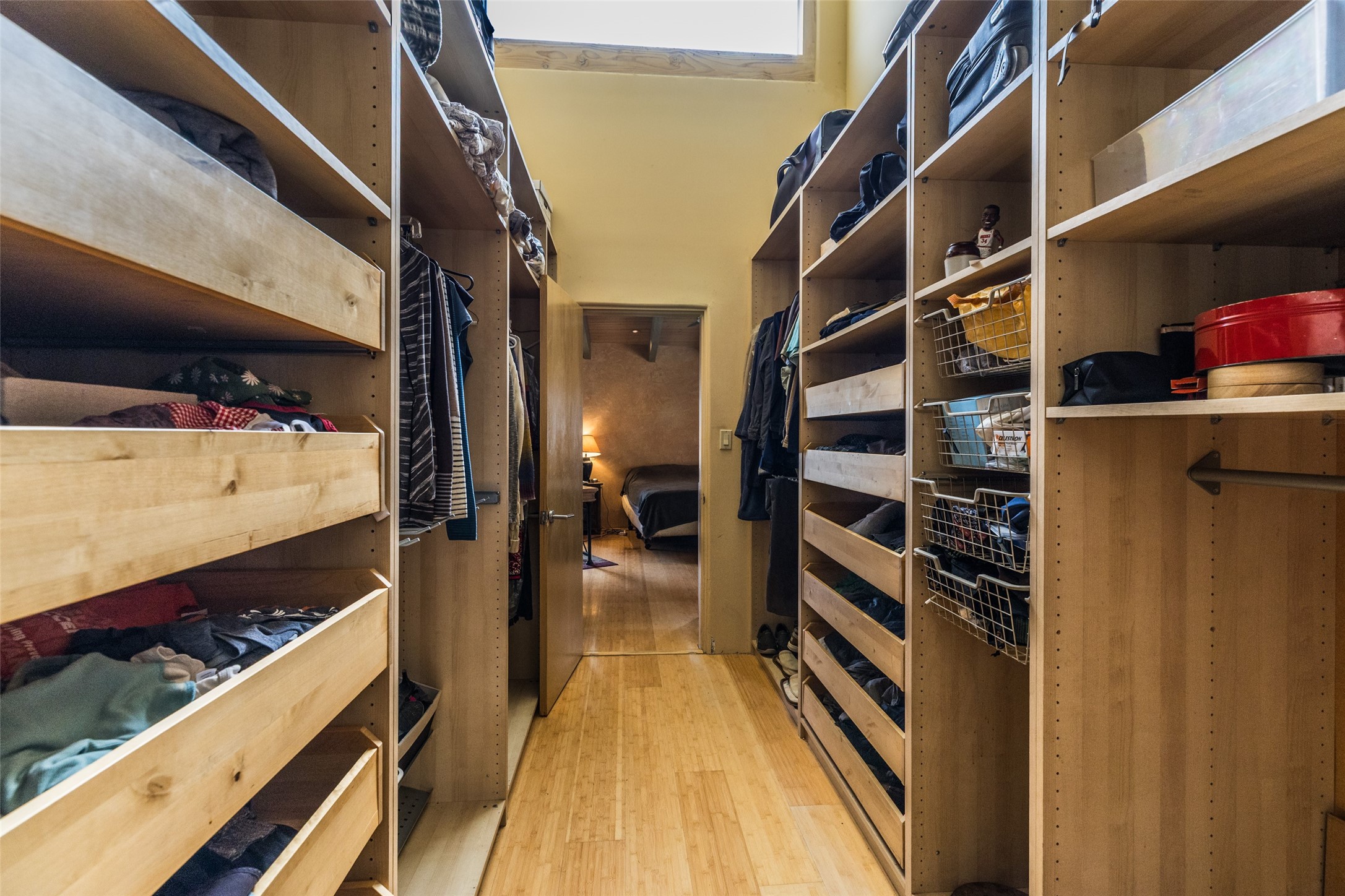 Located within the Nambe/Pojoaque greenbelt, this unique property sits on over an acre of land w/ WATER RIGHTS & a valve for flood irrigation. Enjoy mature cottonwoods, Osage orange, apple, apricot, & pear trees in a lush, meadow-like setting. The Trombe wall in the living area & bedroom utilizes passive solar principles! Other features include radiant floor heat, mini splits, a durable metal roof, bamboo & slate tile flooring, granite countertops, & wood-beamed ceilings. The open kitchen flows seamlessly into the great room, while the primary suite includes a huge walk-in closet & private patio. Use the 840 sq ft (80 ft X 21ft) heated garage space to park up to four cars or to create a unique studio or flex area. Don't miss this opportunity!