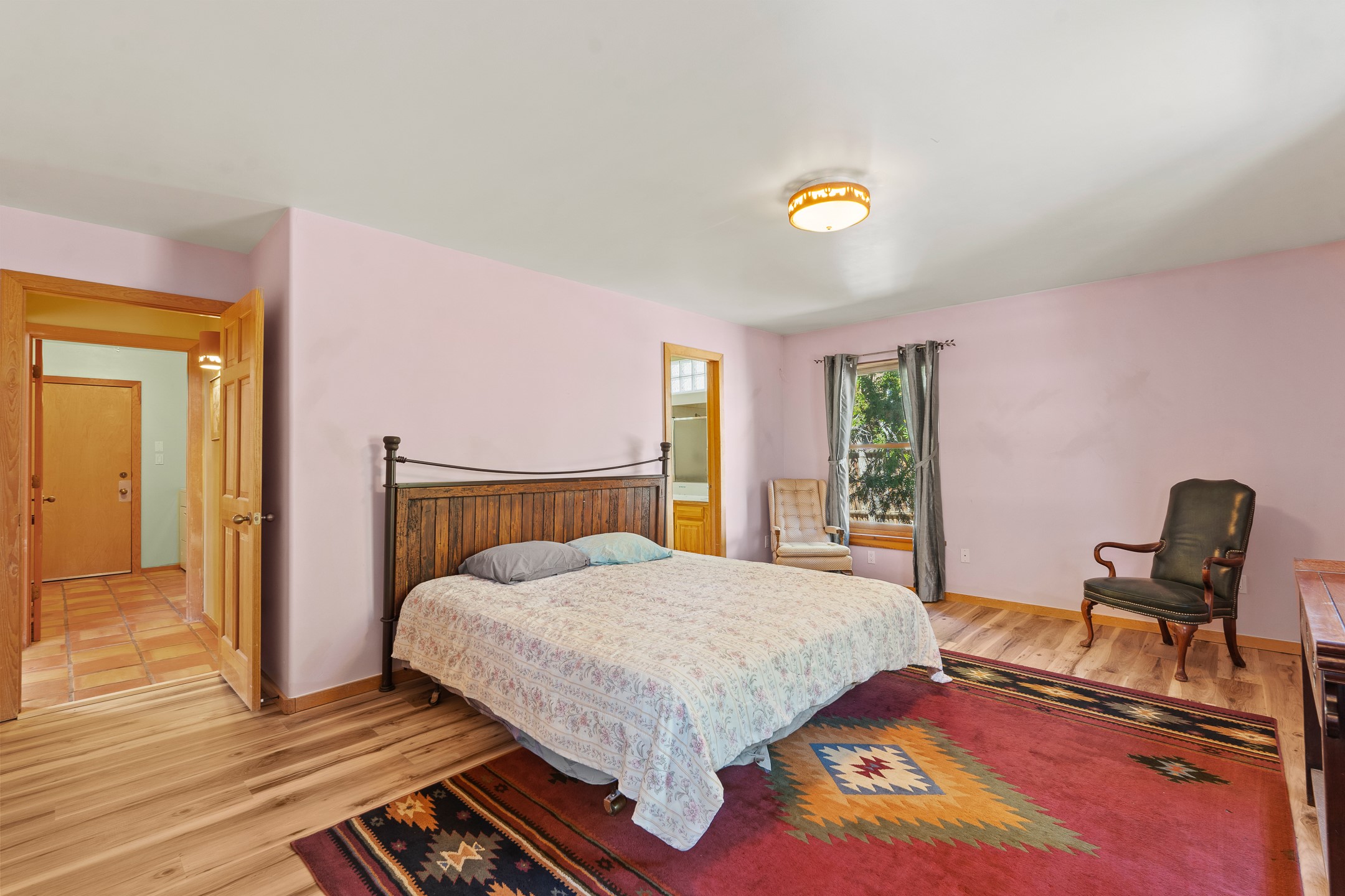 Charming Santa Fe-Style Retreat in a Prime Central Location. This beautifully maintained single-story home blends timeless Southwestern charm with modern comfort. Nestled in a peaceful, centrally located neighborhood, it offers the perfect balance of city convenience and tranquil living. Step inside to discover a light-filled interior featuring beamed living area with a walk out, traditional kiva fireplace, and Saltillo tile floors. The kitchen is both stylish and functional, boasting quartzite countertops, newer appliances, ample cabinet space. The spacious primary suite includes a walk out plus a generous walk-in closet, while two additional bedrooms offer versatility for guests, office space, or hobbies. Finished direct access two car garage. Outside, you'll find a beautiful, mature, landscaped yard that's fully private and perfect for relaxing or entertaining. The walled portal provides a serene outdoor living area in an ideal setting for enjoying Santa Fe's beautiful weather. Close to shopping, schools, medical facilities, and restaurants, this pristine property offers an exceptional opportunity to enjoy the best of Santa Fe living.